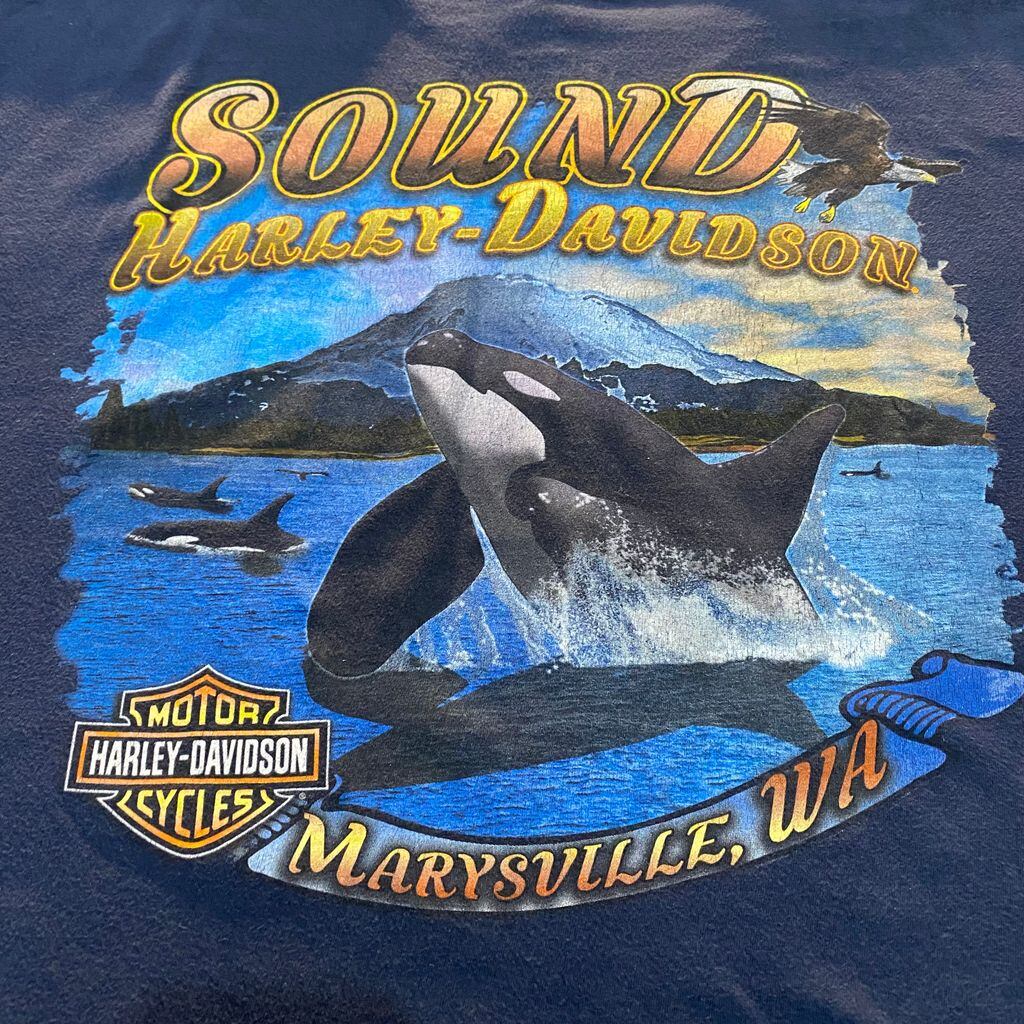 HARLEY DAVIDSON ハーレーダビッドソン プリント Tシャツ パックプリント シャチ アニマル 紺 サイズXL No.S085