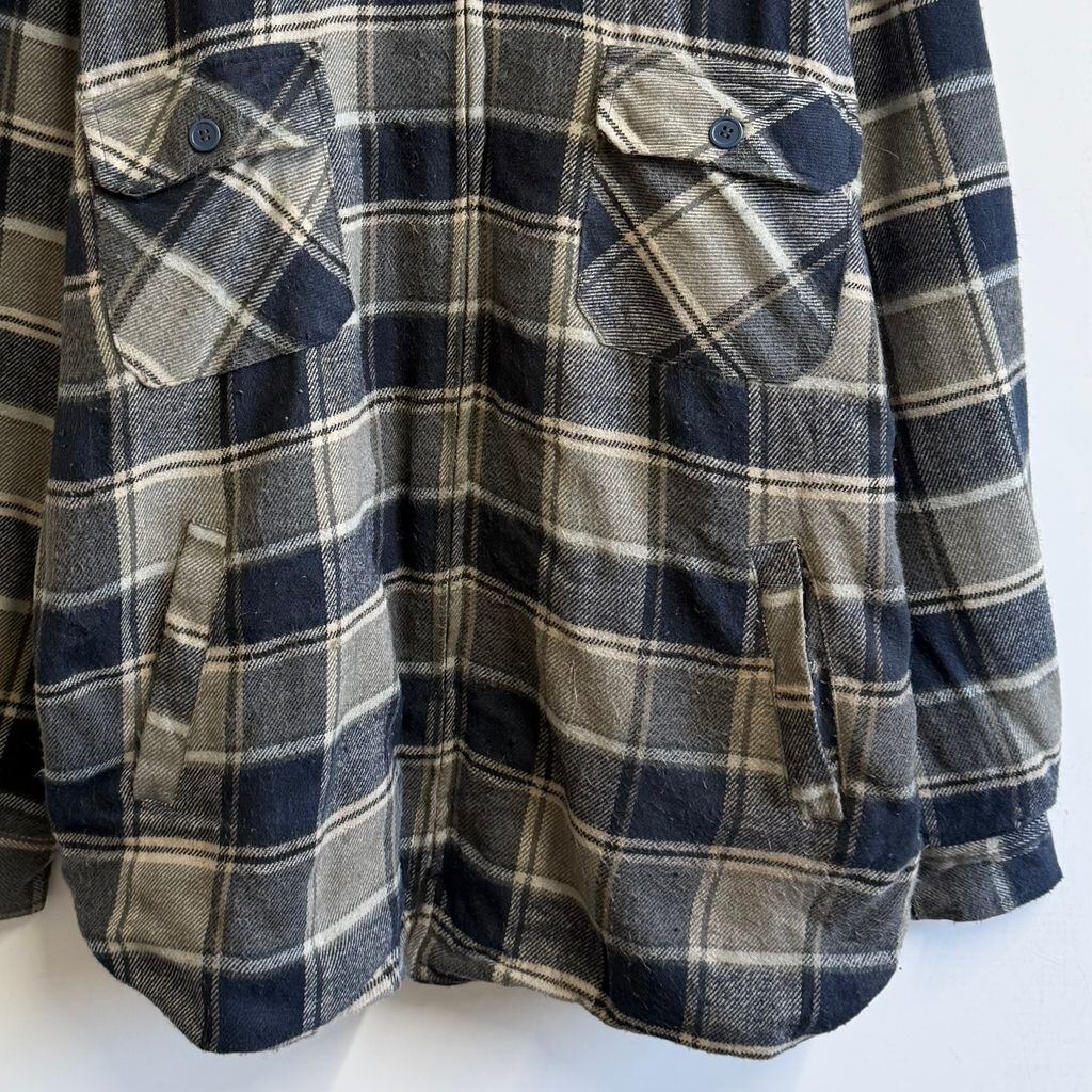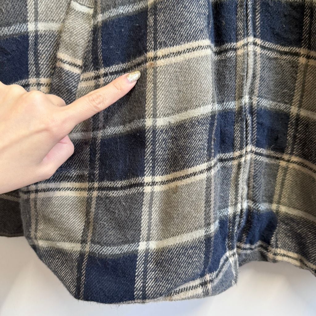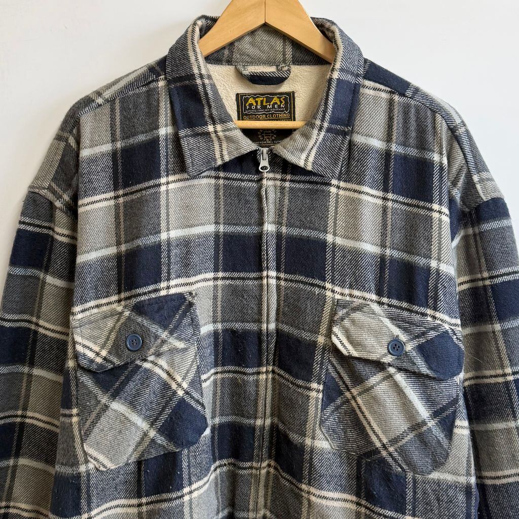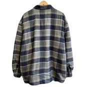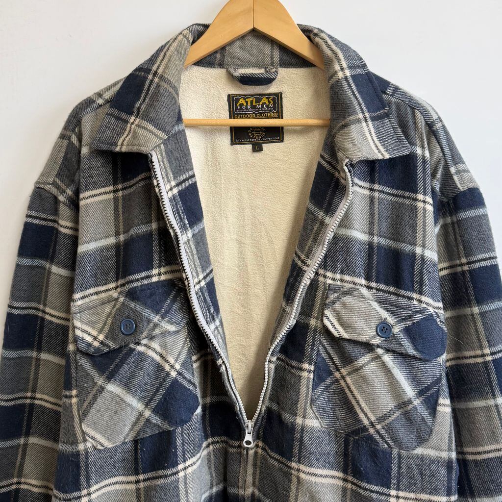 ATLAS シャツジャケット 裏起毛 チェック柄 フルジップ ポケット付き ネイビー×グレー×多色 Lサイズ No.M098