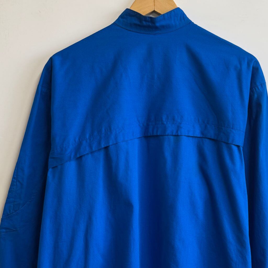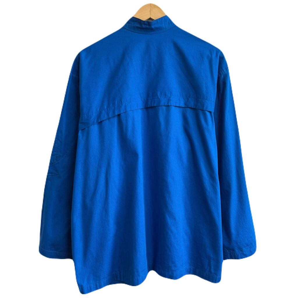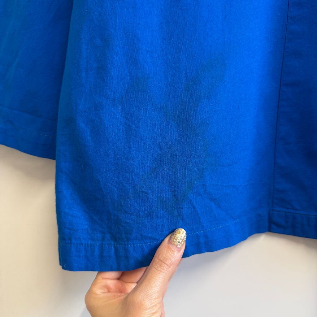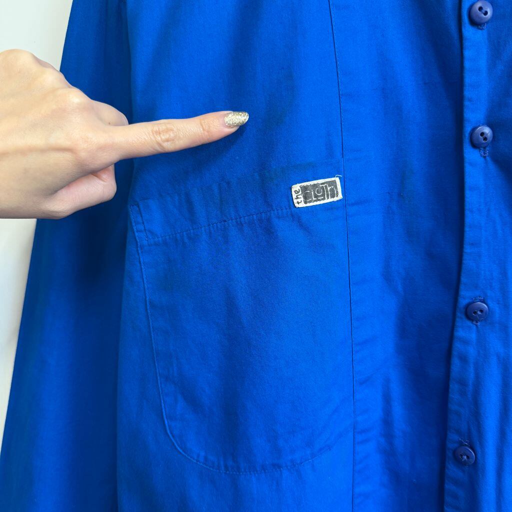 THE CLOTH バンドカラー アート 刺繍 アップリケ パッチワーク 切り替えデザイン コットンシャツ 長袖シャツ 青×多色 ONE SIZE No.M100