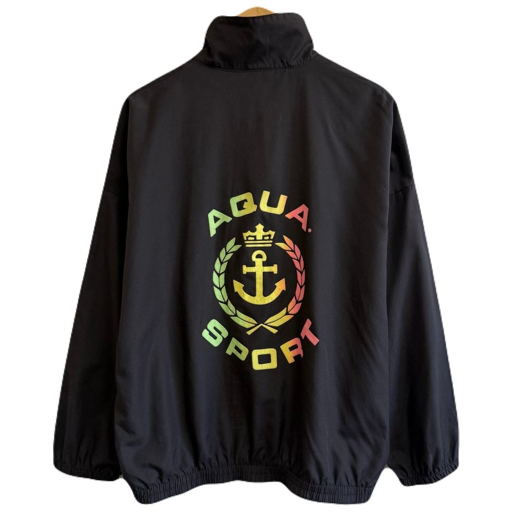 カナダ製 アノラックジャケット プルオーバージャケット バックプリント AQUA SPORT ハーフジップ 黒 No.M101