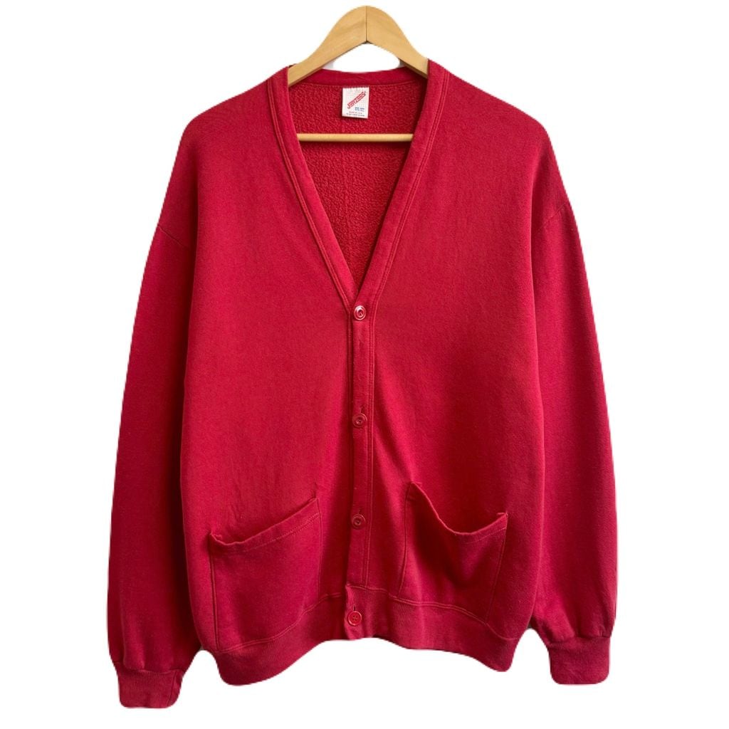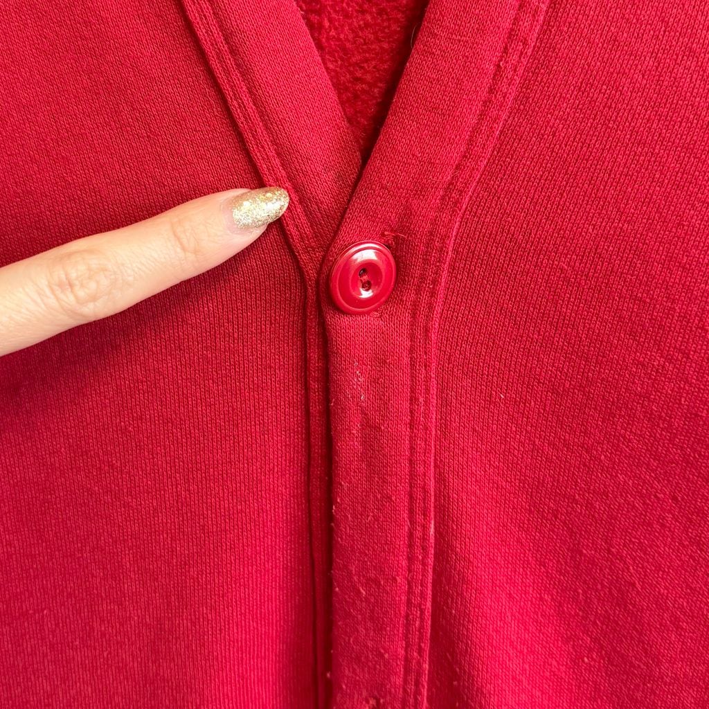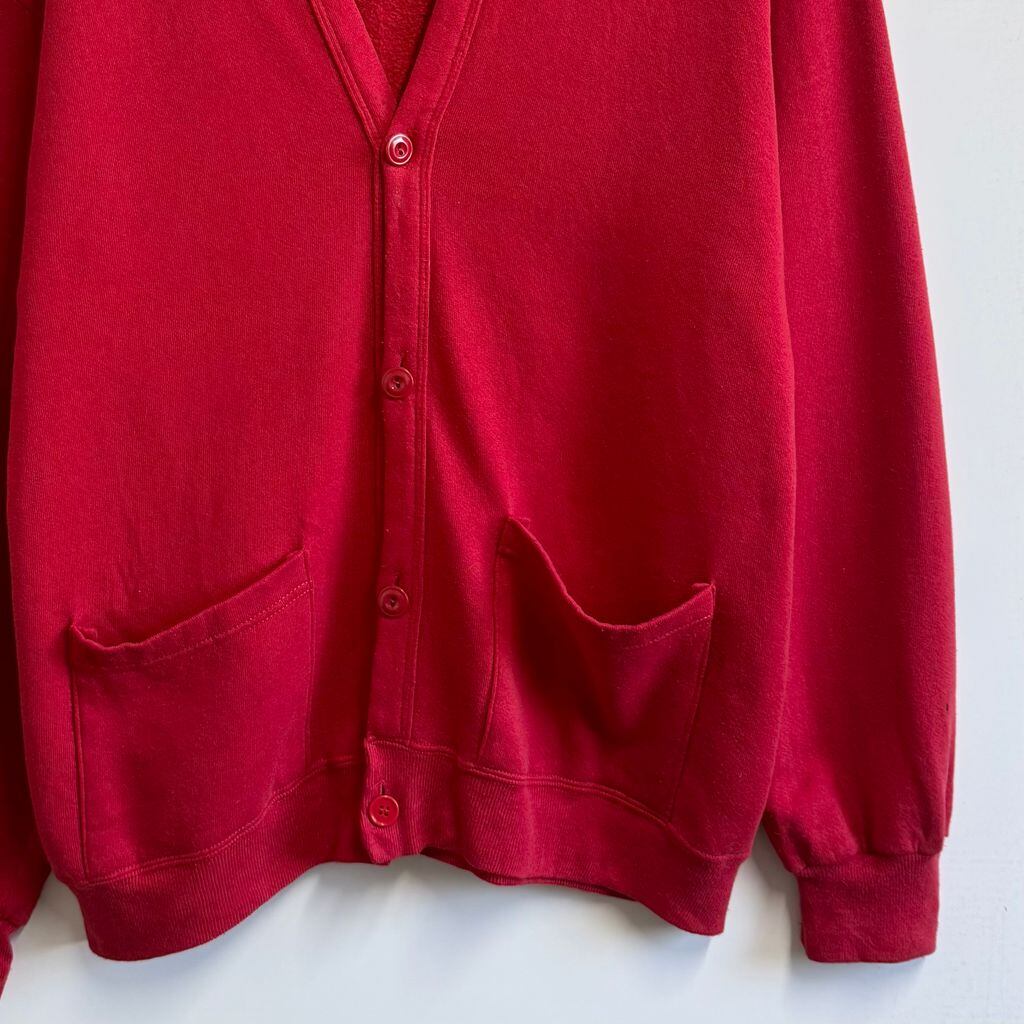 80's〜 vintage ビンテージ USA製 JERZEES ジャージーズ スウェットカーディガン 裏起毛 Vネック フロントボタン 赤 レッド ONE SIZE No.M102