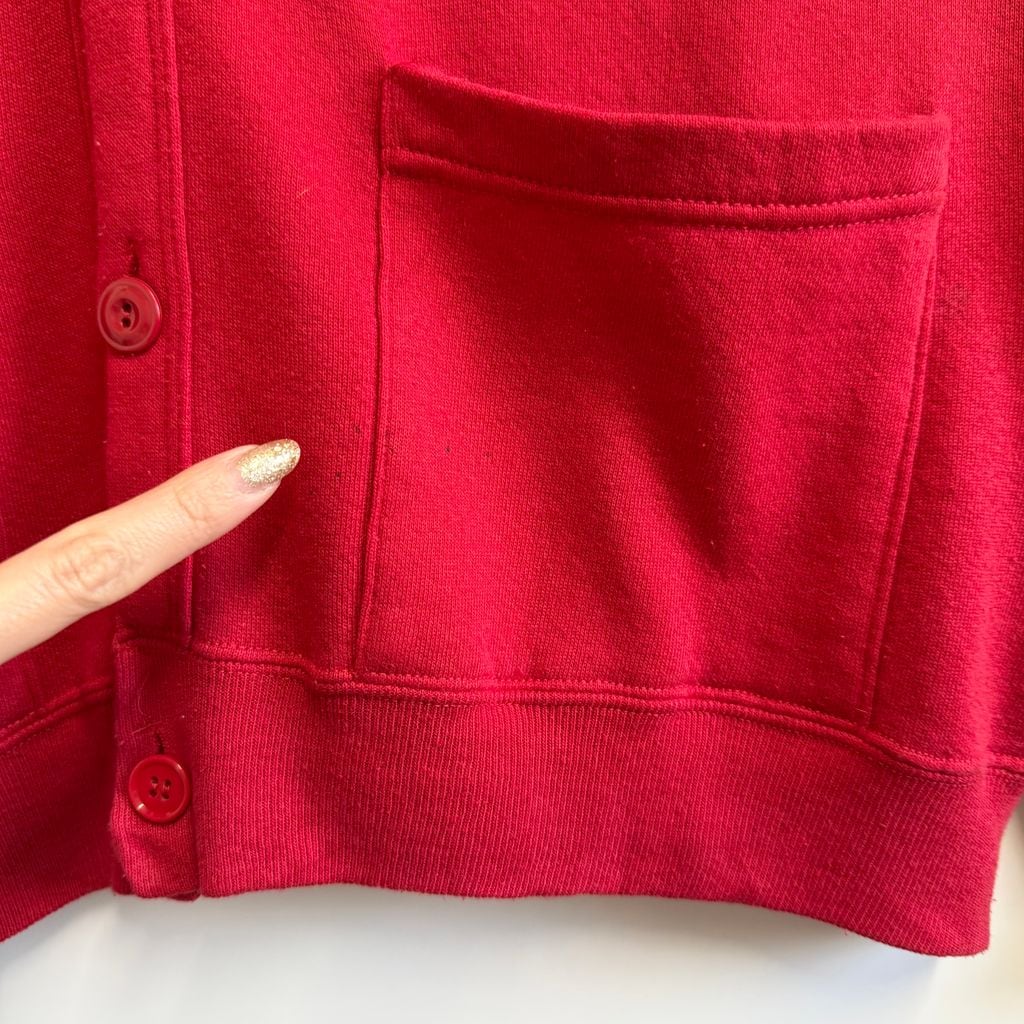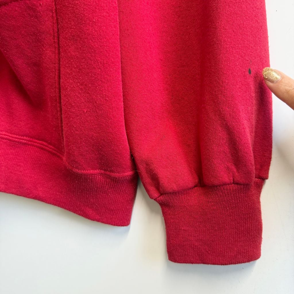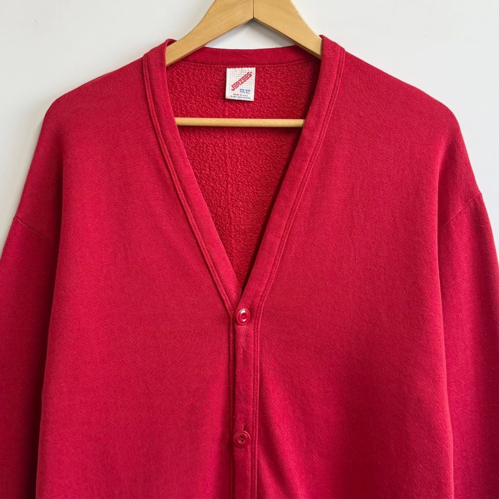 80's〜 vintage ビンテージ USA製 JERZEES ジャージーズ スウェットカーディガン 裏起毛 Vネック フロントボタン 赤 レッド ONE SIZE No.M102