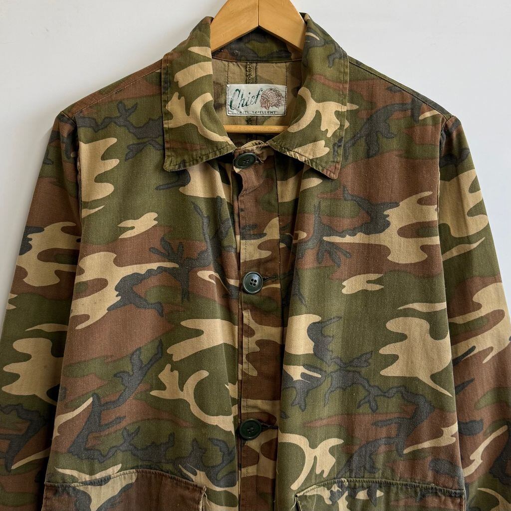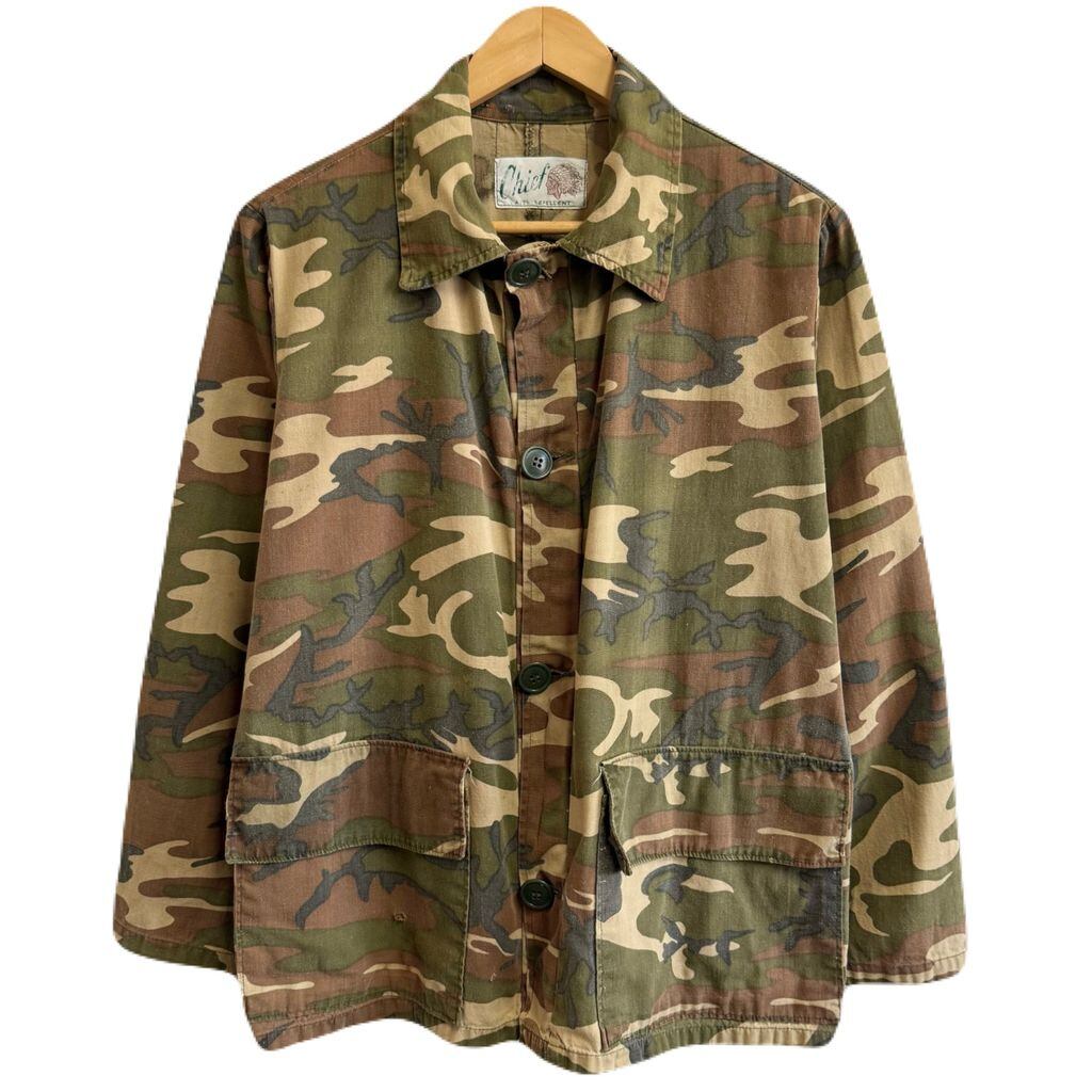 〜70's vintage ビンテージ Chief カモフラ ハンティング ジャケット ウッドランドカモ ミリタリージャケット フロントボタン 多色 No.M104