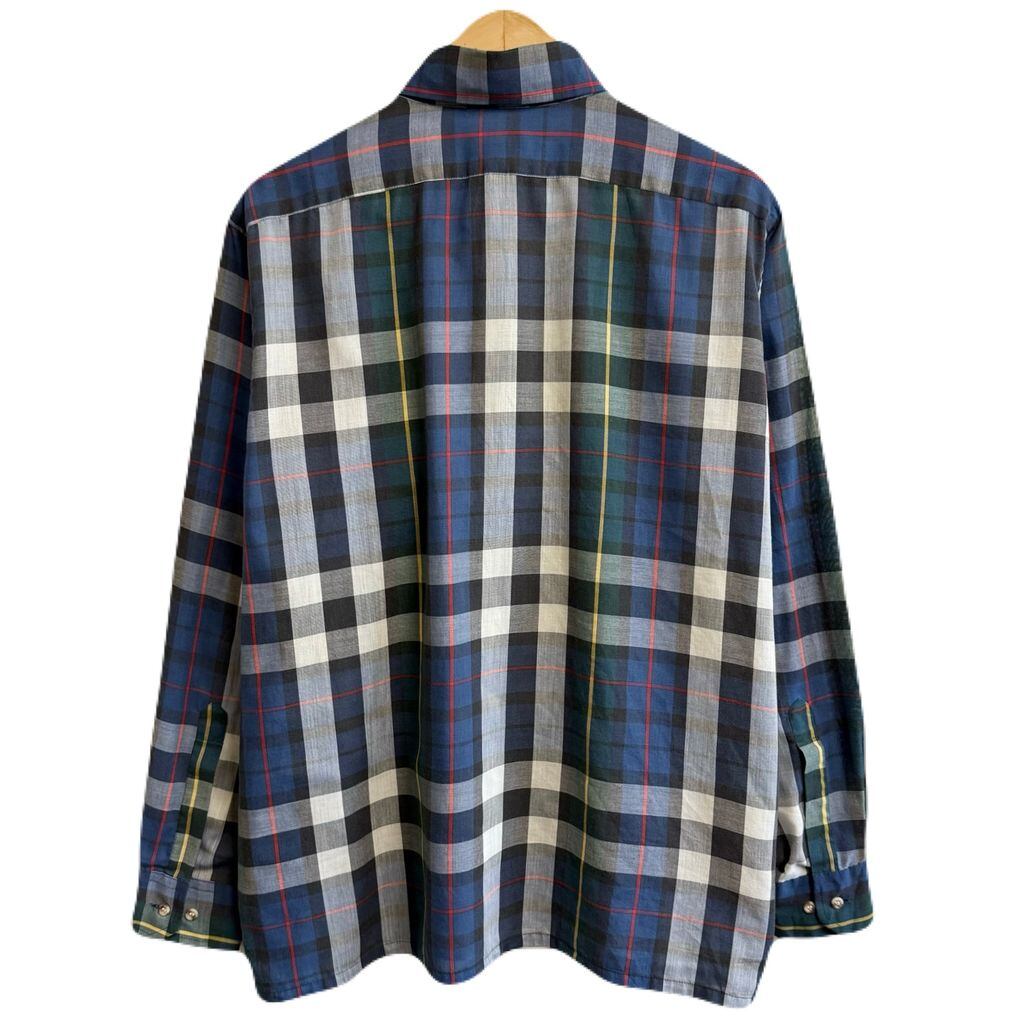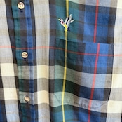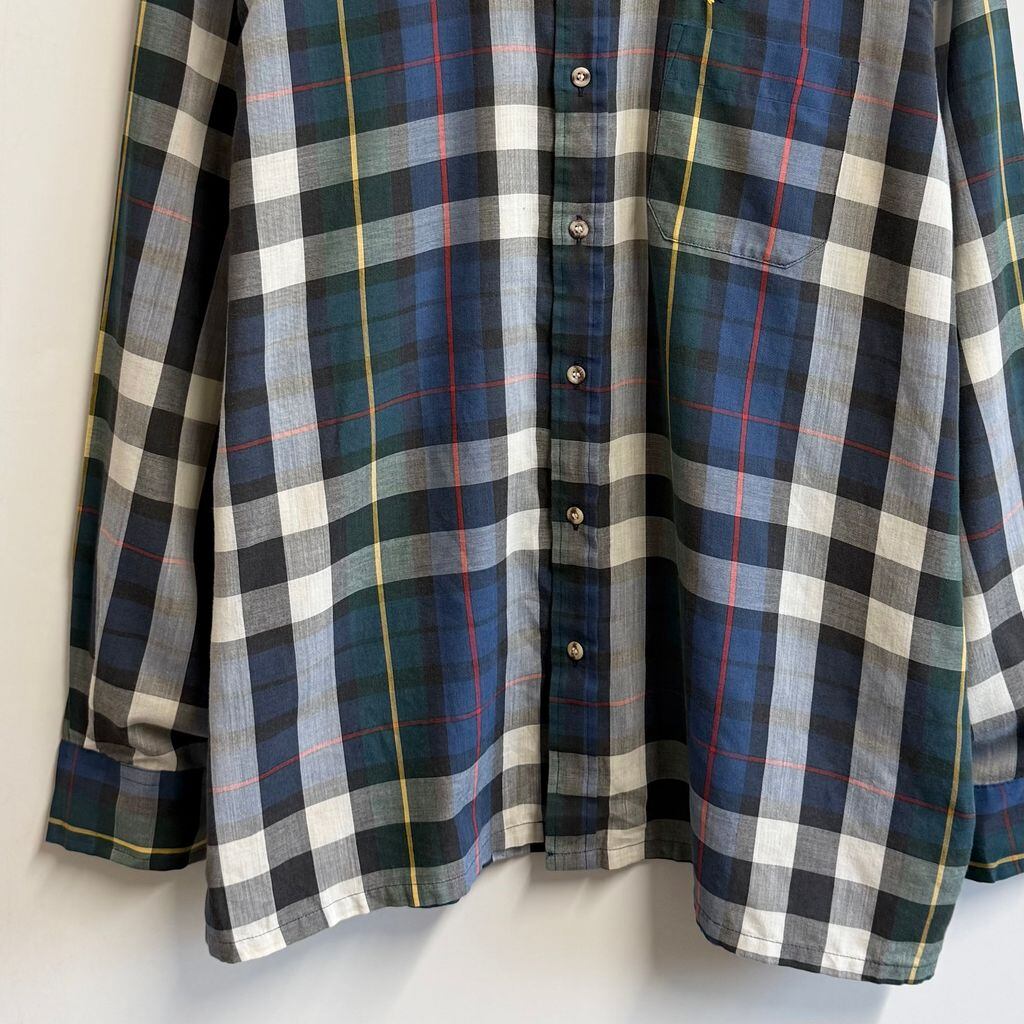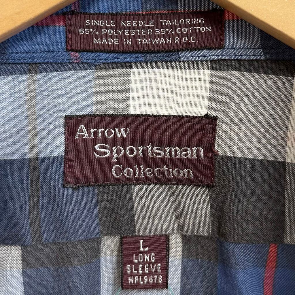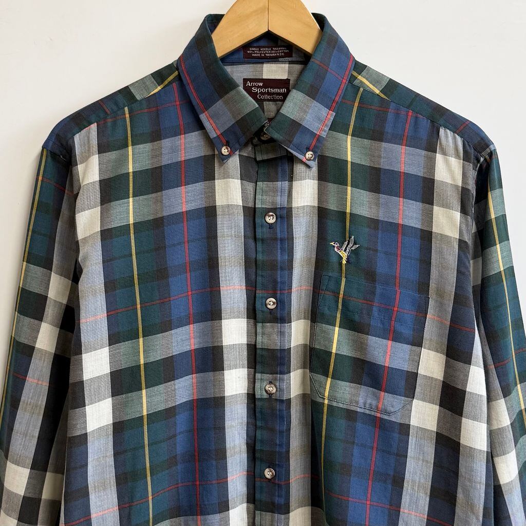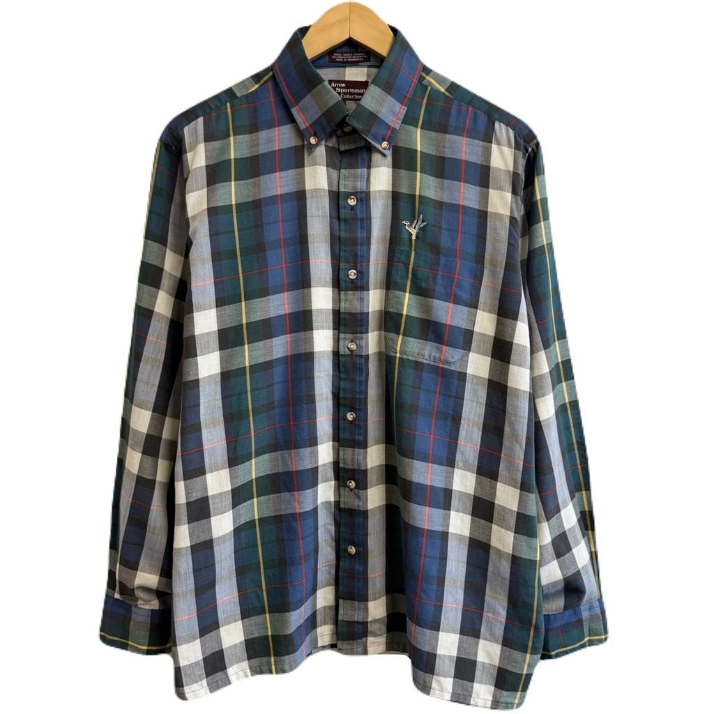 Arrow アロー ボタンダウンシャツ チェック柄 ポケット付き 長袖シャツ ワンポイントロゴ 刺繍 青×白×緑×多色 Lサイズ No.M112