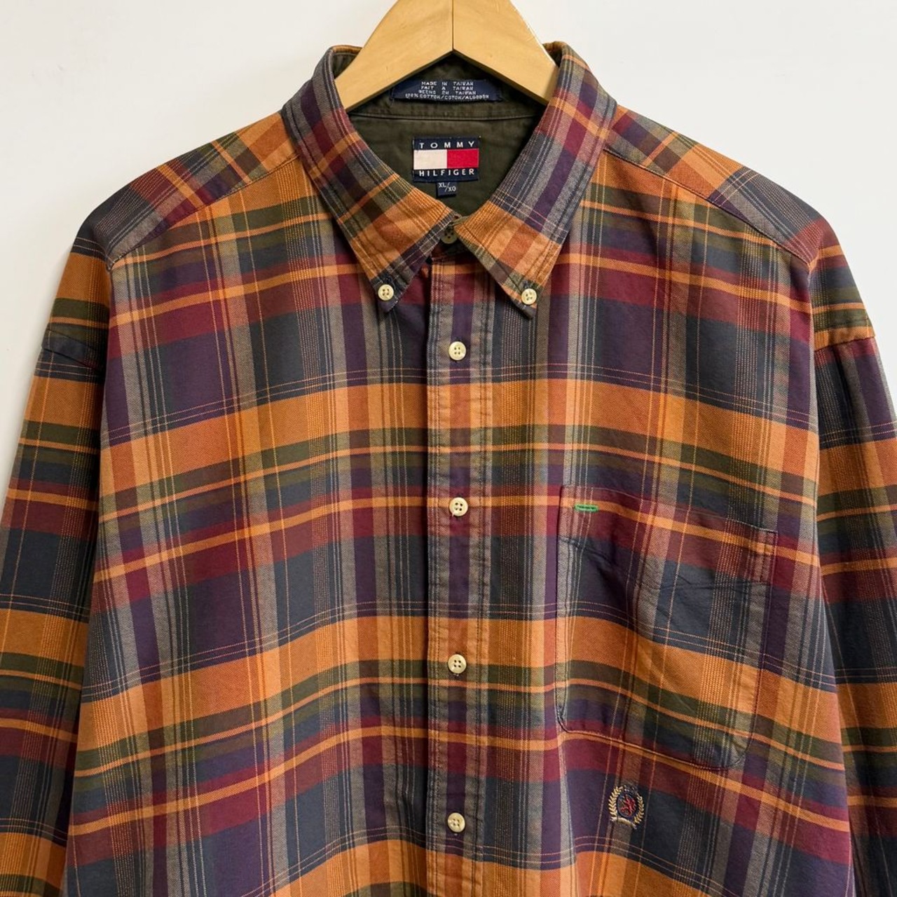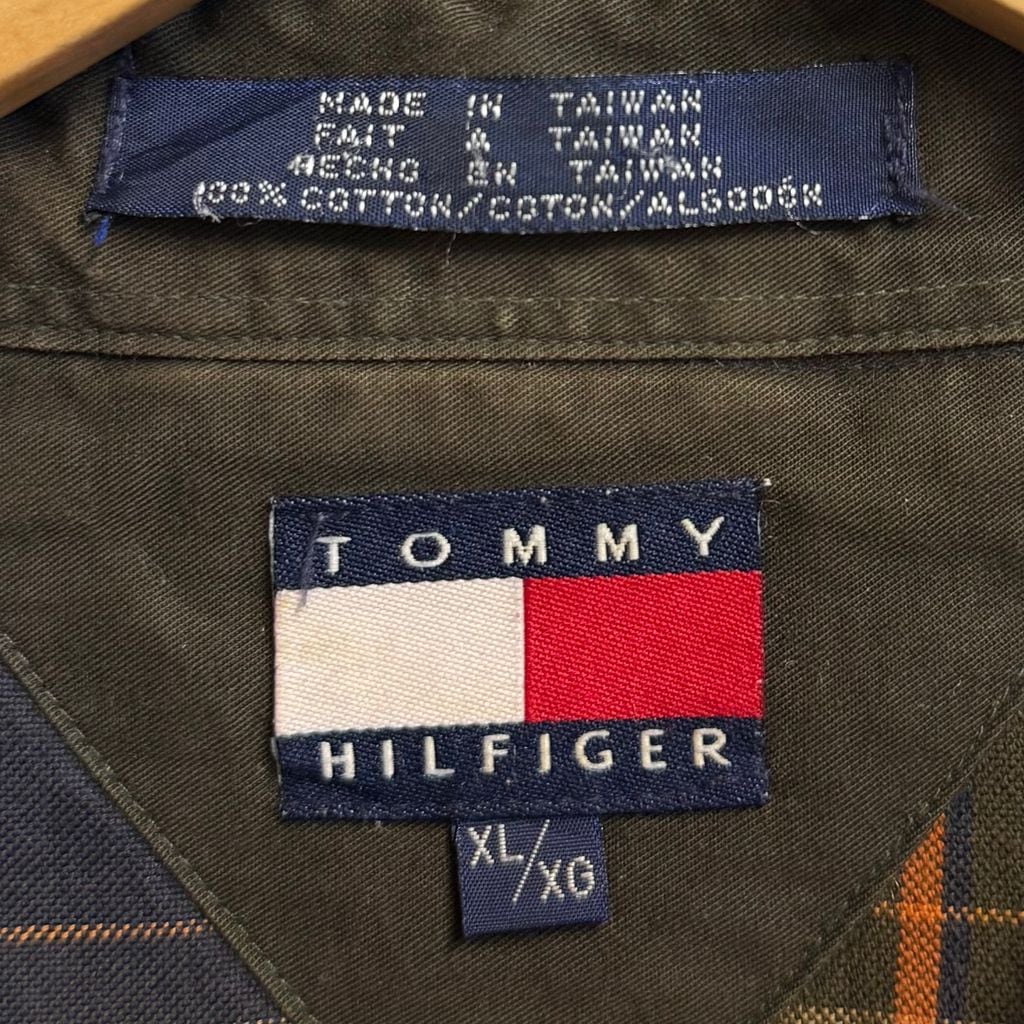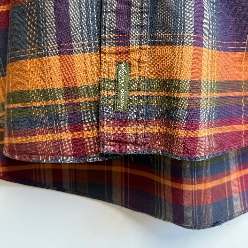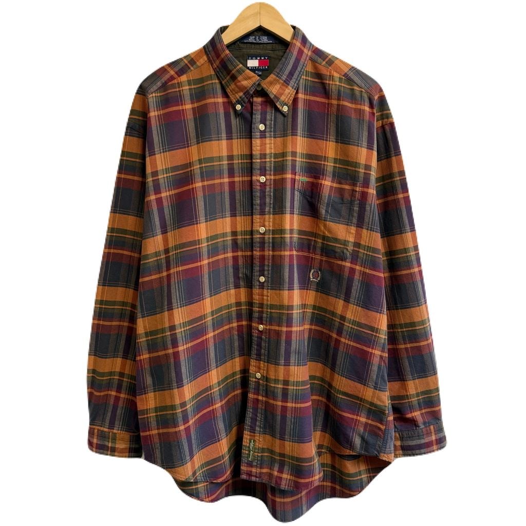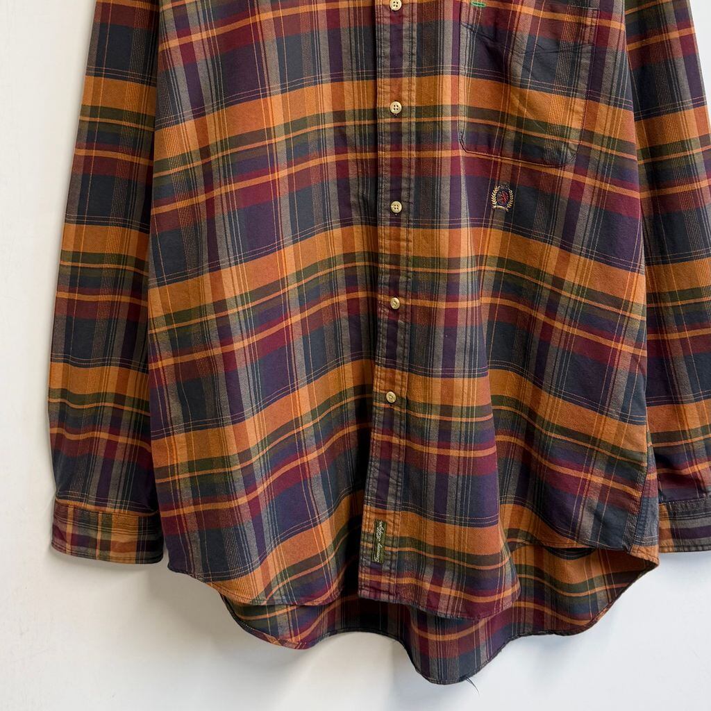 TOMMY HILFIGER トミーヒルフィガー ボタンダウンシャツ コットンシャツ チェック柄 ポケット付き 長袖シャツ ワンポイントロゴ 刺繍 多色 XLサイズ No.M115