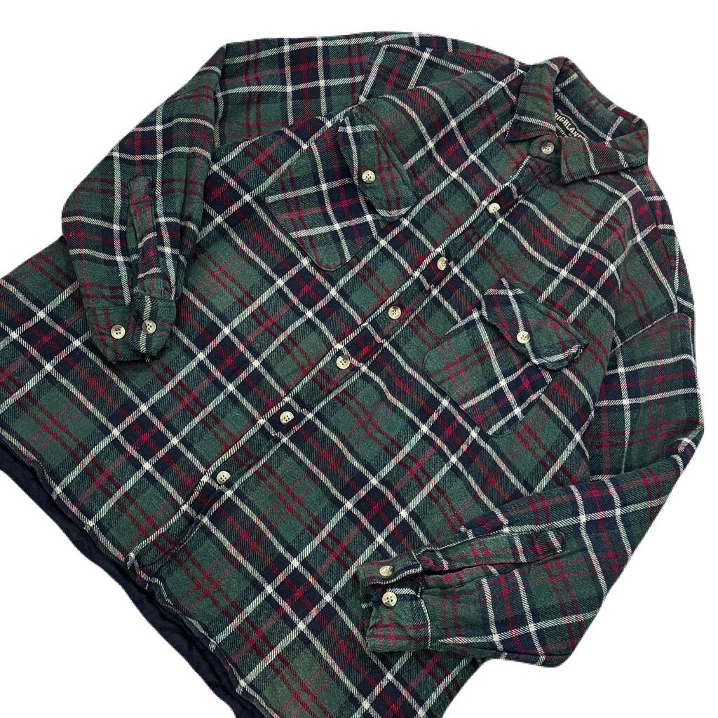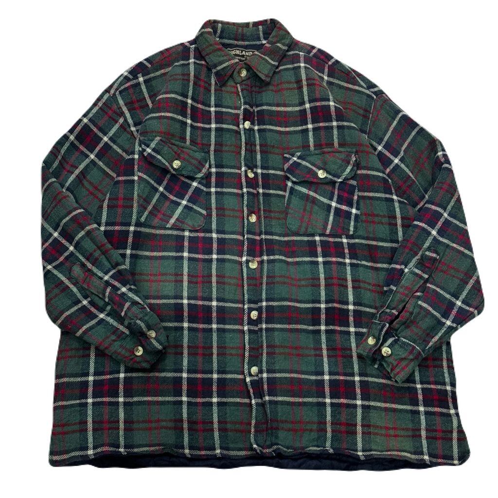 HIGHLAND チェック柄 フランネルシャツ 裏地キルティング ポケット付き 緑×赤×紺 Lサイズ No.EA90