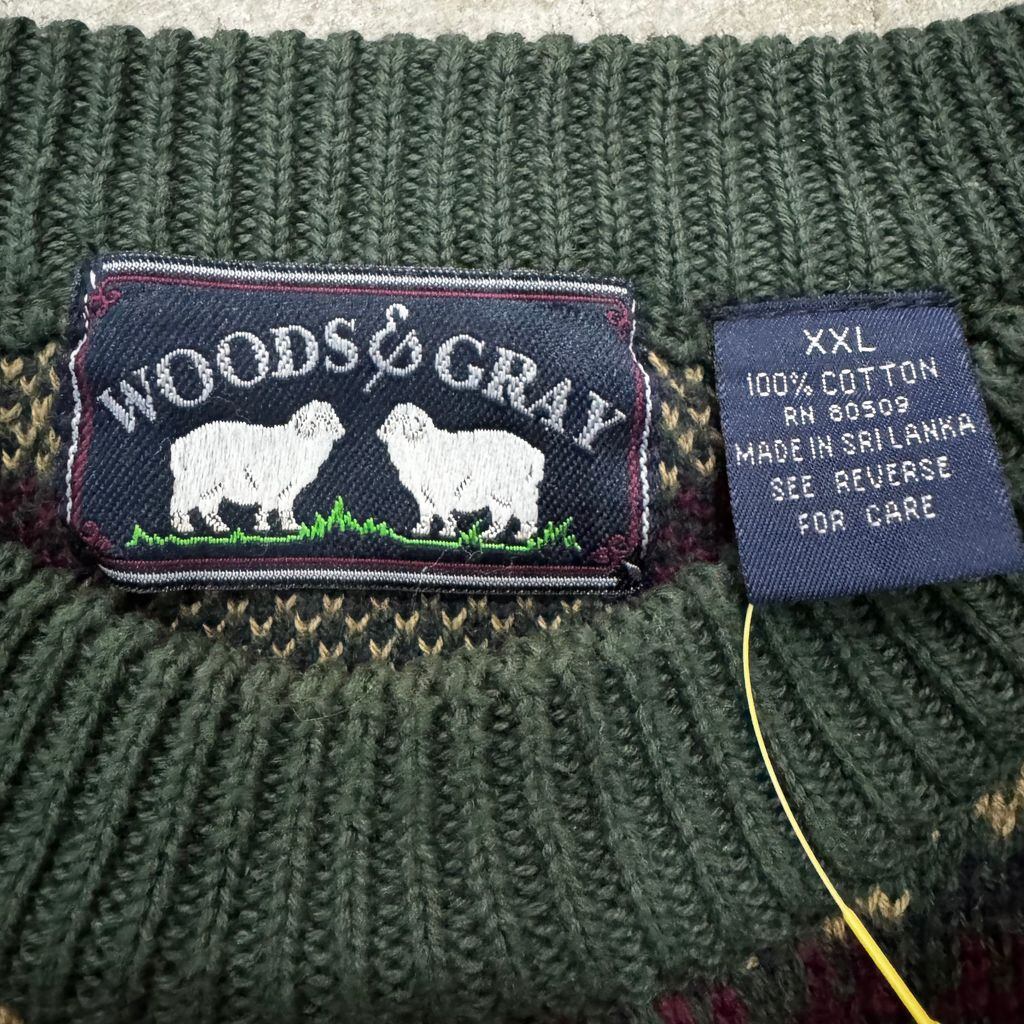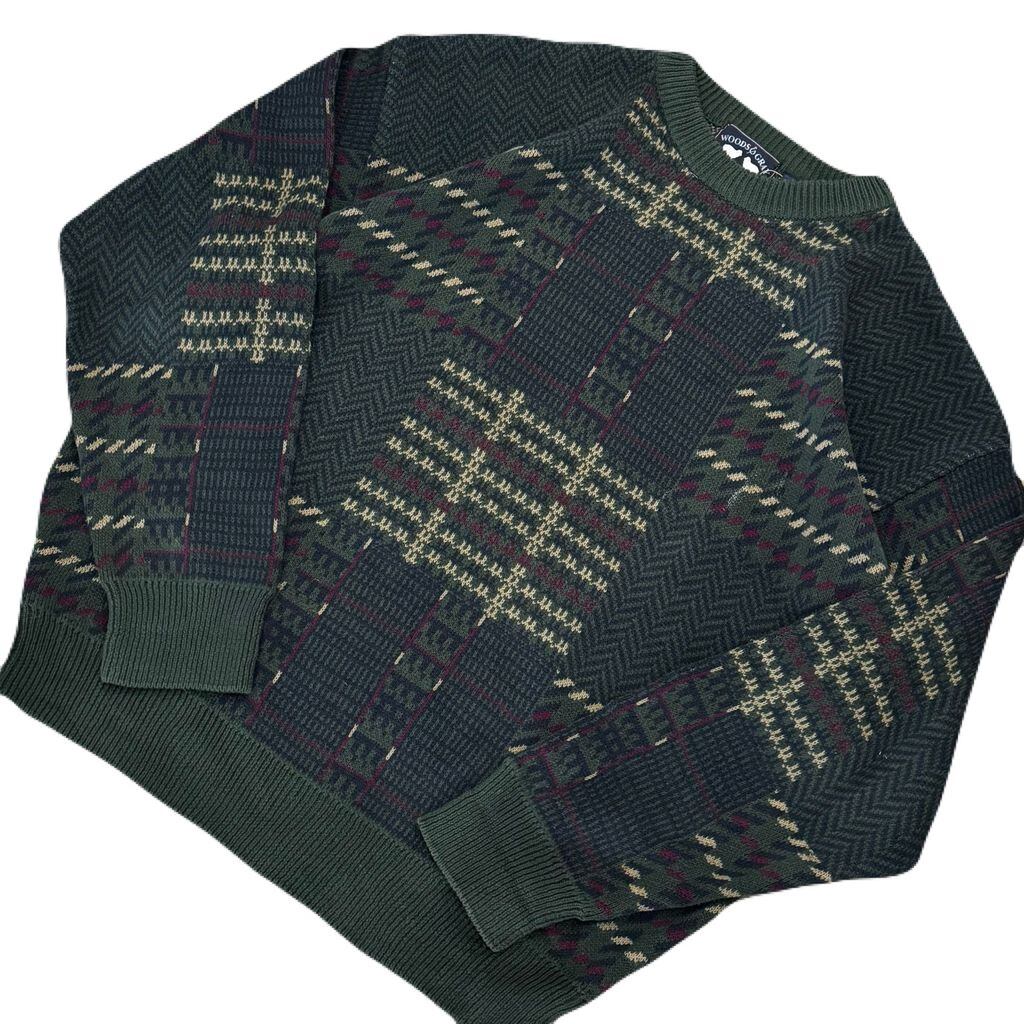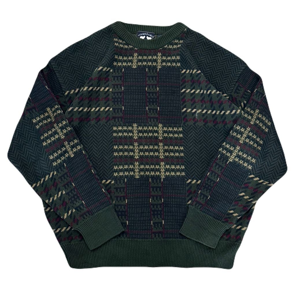 WOODS & GRAY チェック柄 コットンニット クルーネック セーター 緑×紺×赤 XXLサイズ No.EA91