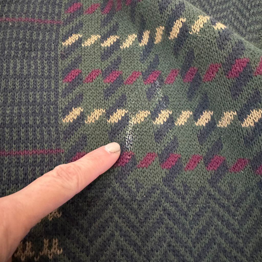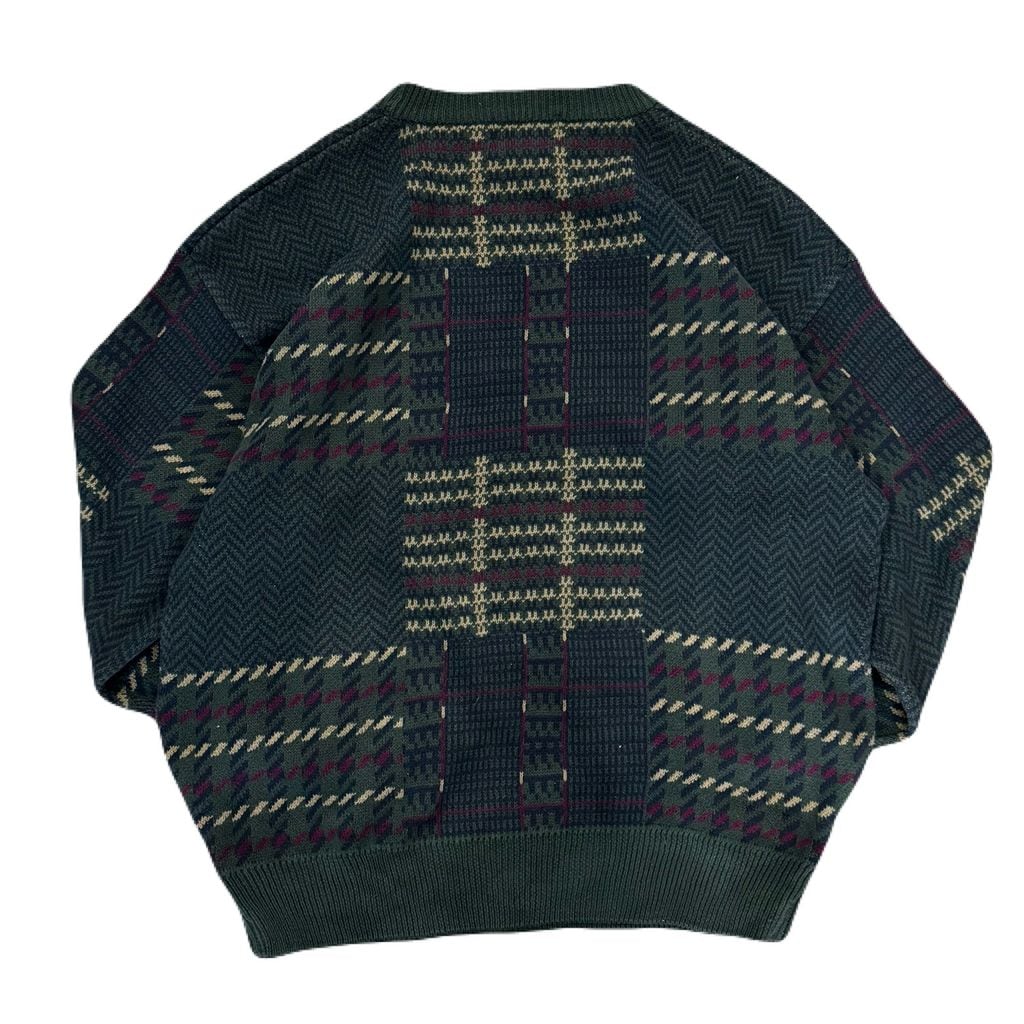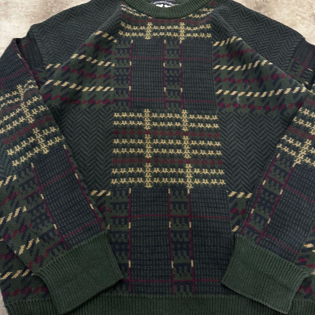 WOODS & GRAY チェック柄 コットンニット クルーネック セーター 緑×紺×赤 XXLサイズ No.EA91