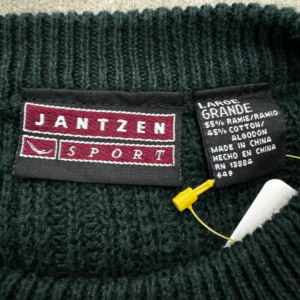 Jantzen ジャンセン ニット セーター 芋麻混 シンプル 無地 緑 Lサイズ No.EA93