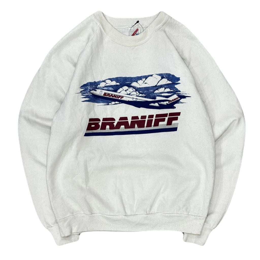 USA製 80s JERZEES BRANIFF ジャージーズ ブラニフ 飛行機 白 Mサイズ No.EA102