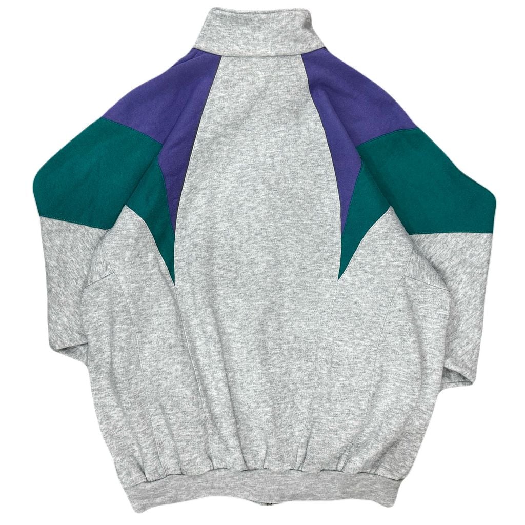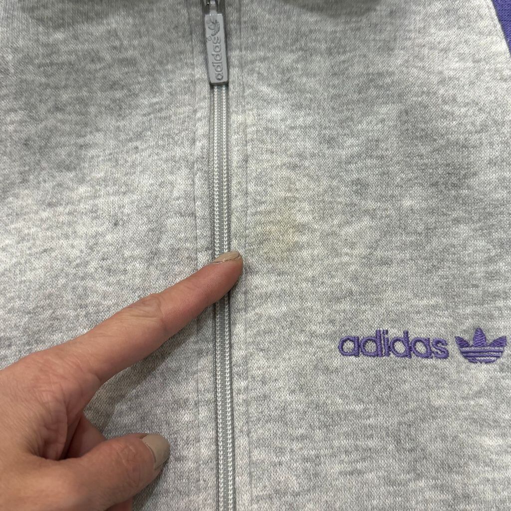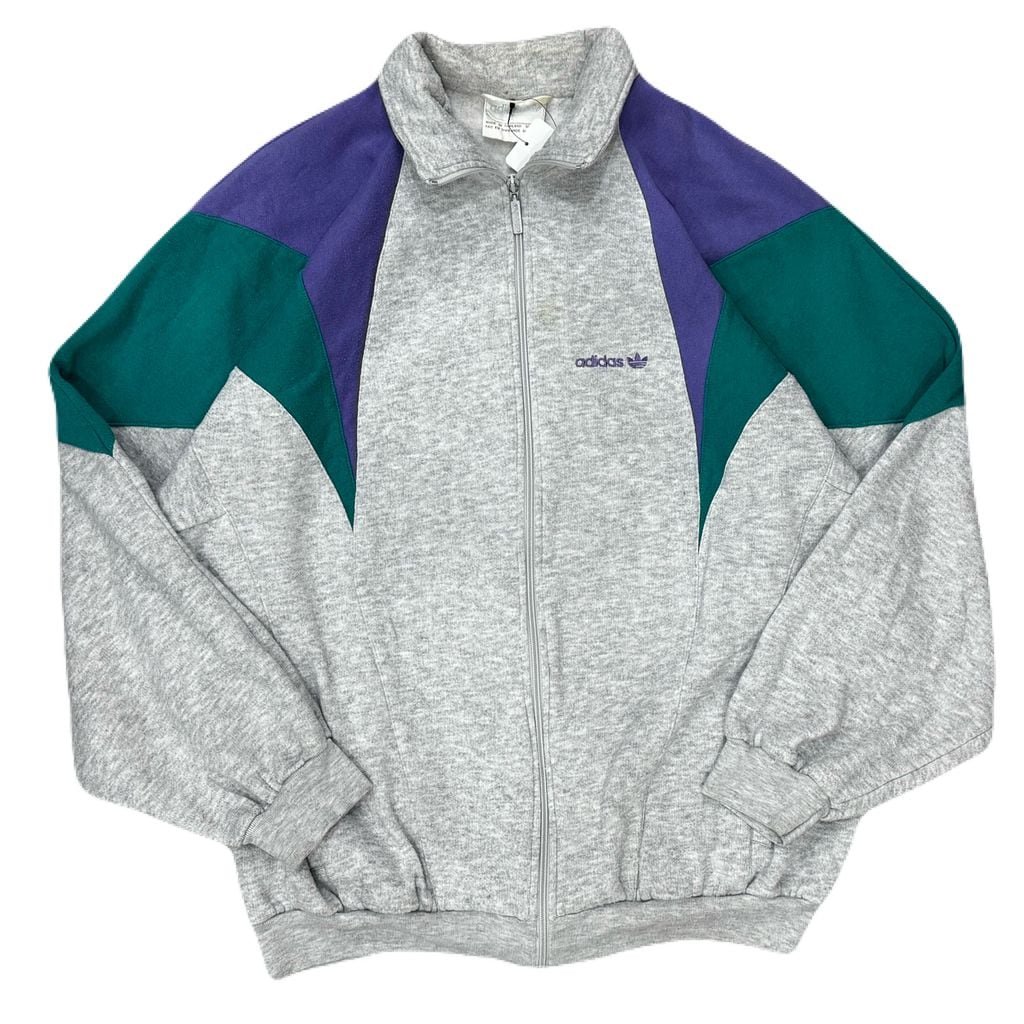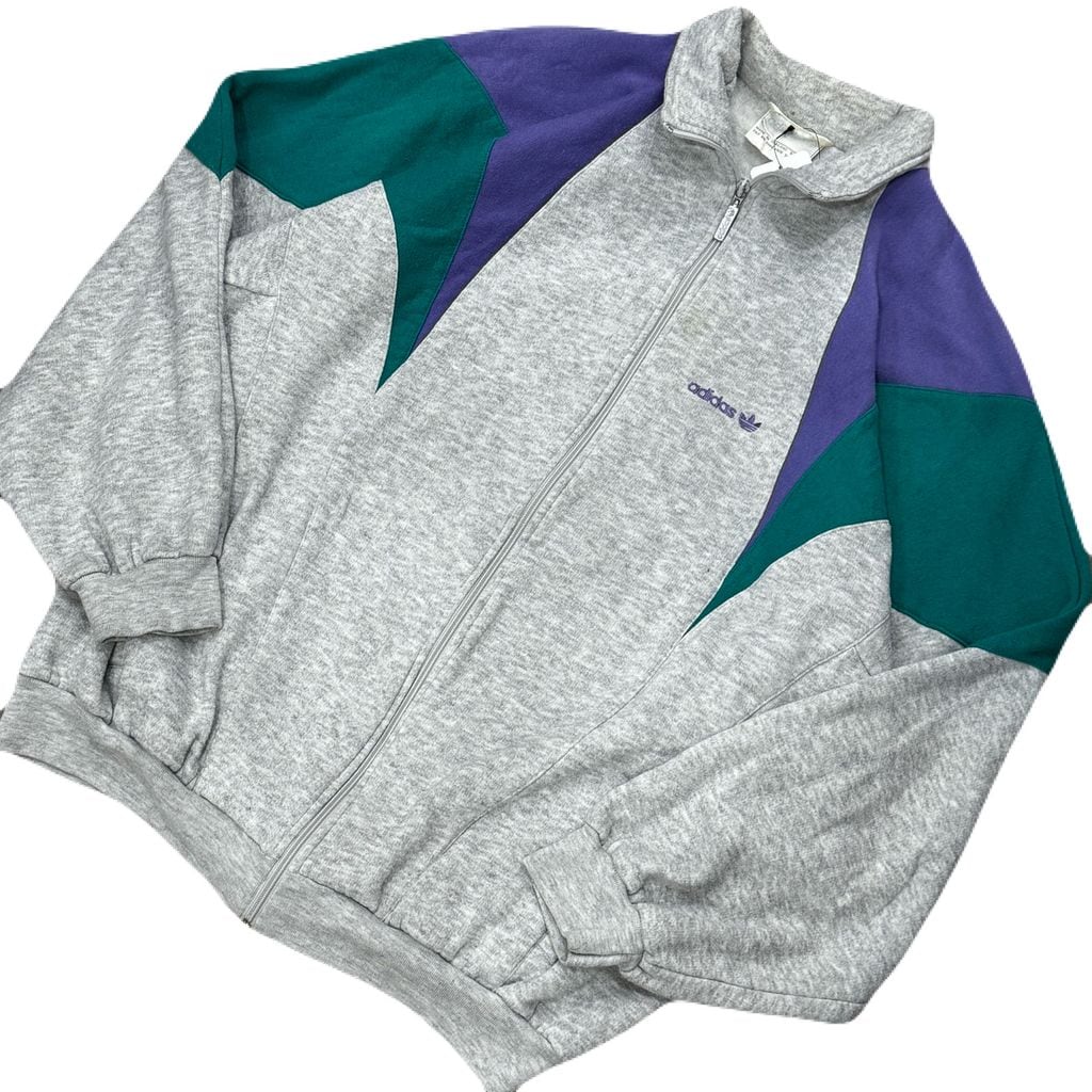 90s~ adidas アディダス マルチカラー スウェット トラックジャケット ポケット付き グレー×パープル×グリーン XLサイズ No.EA103