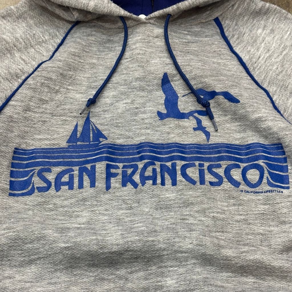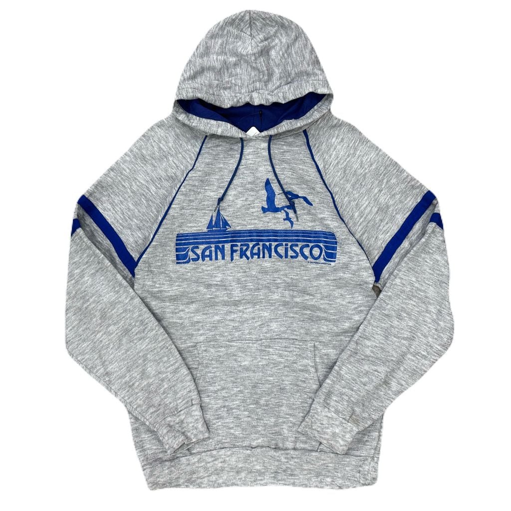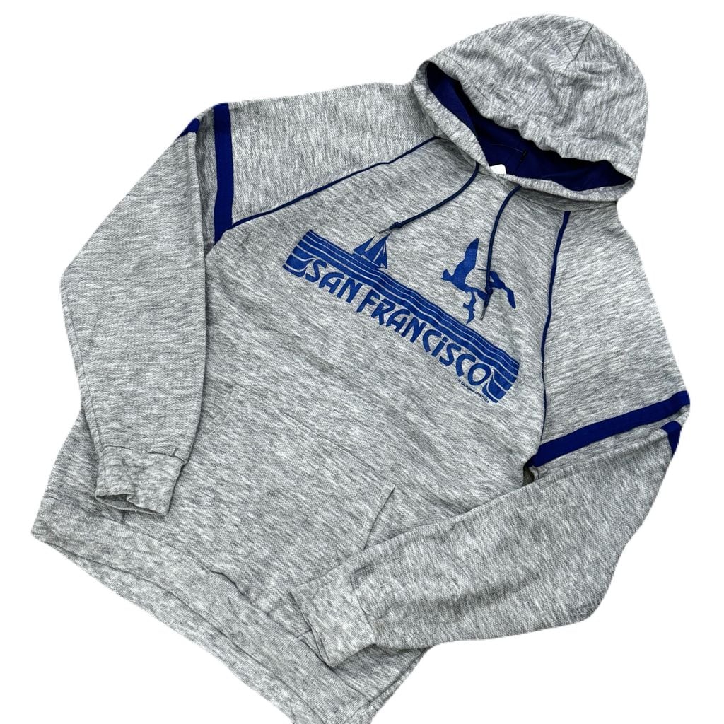 80s~ THE PANDA SHIRT SANFRANCISCO サンフランシスコ ロゴ パーカー フーディー グレー×ブルー Mサイズ No.EA104