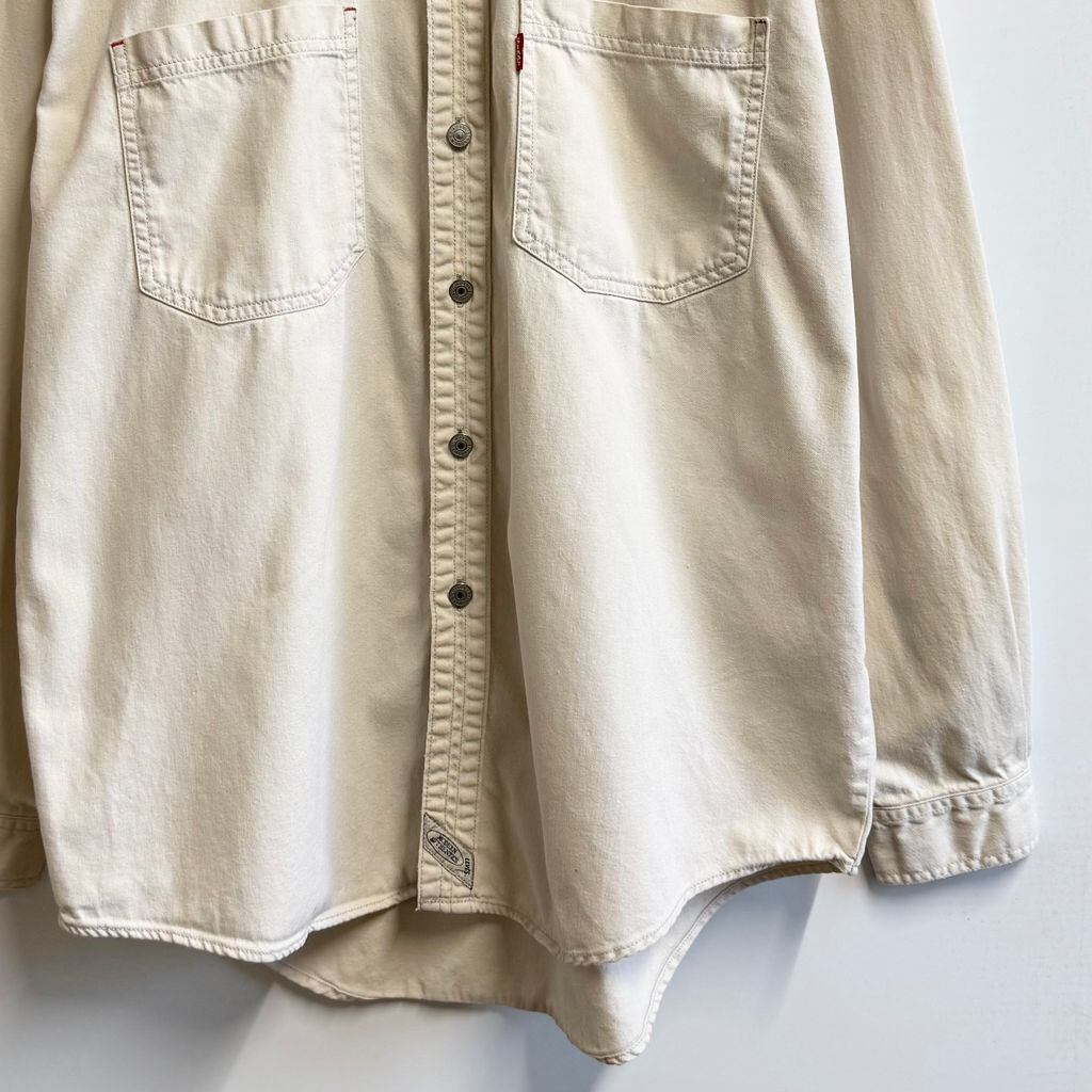 Levi's リーバイス コットンシャツ 無地 ポケット付き 長袖シャツ ホワイトデニムシャツ風 オフホワイト Lサイズ No.M135