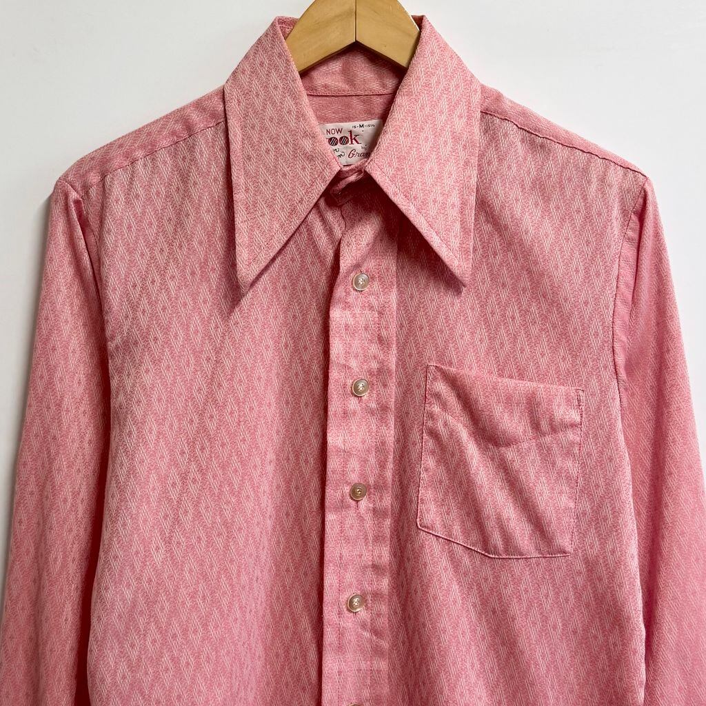 NOW LOOK by Grants 総柄 柄シャツ ダイヤ柄 長袖シャツ ピンク系 Mサイズ No.M137