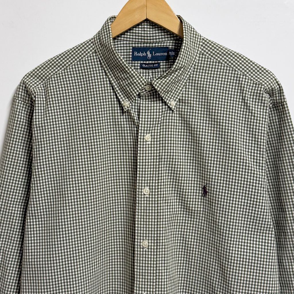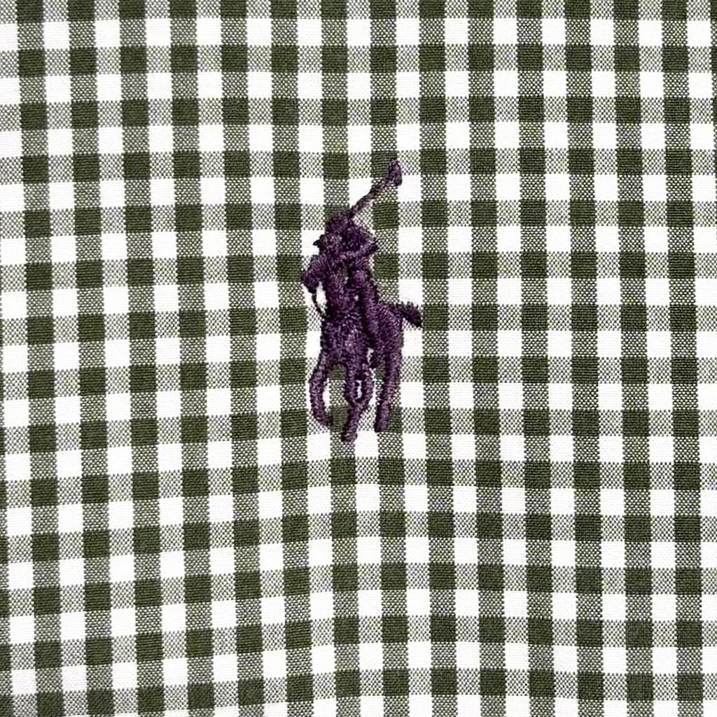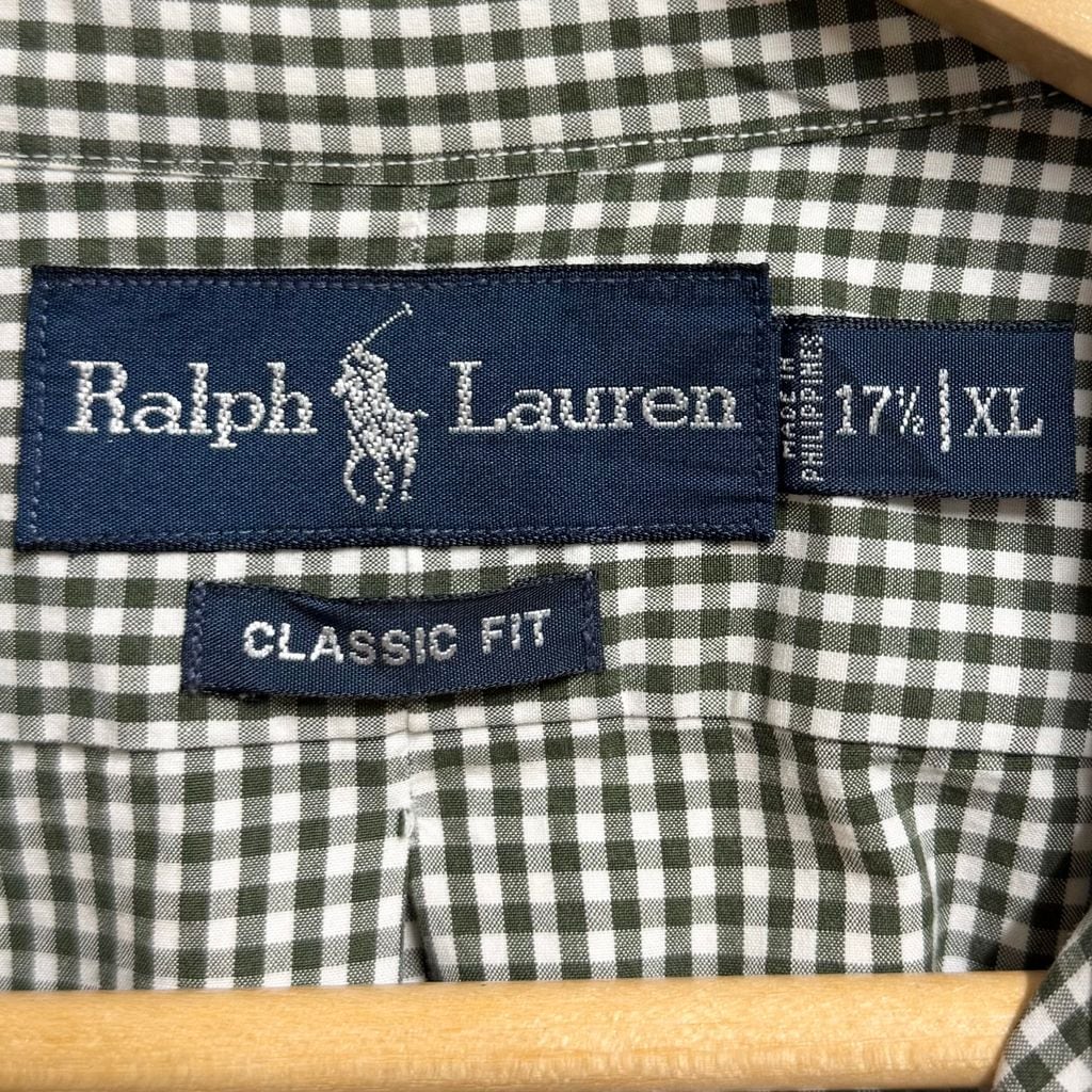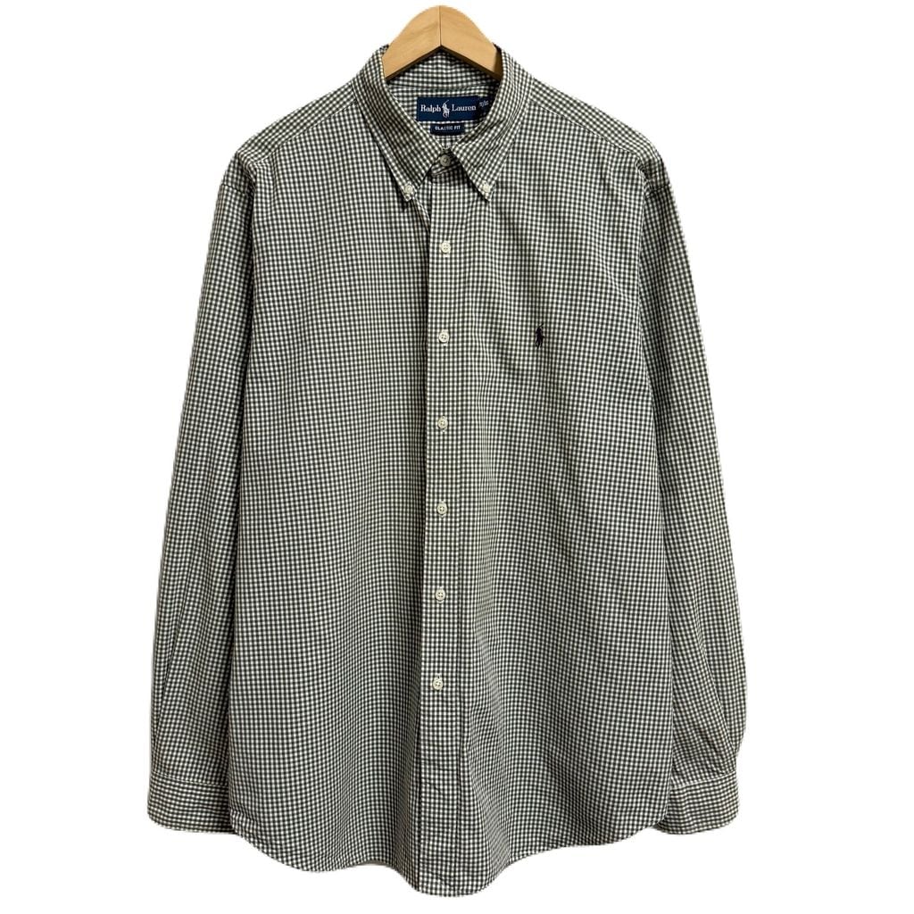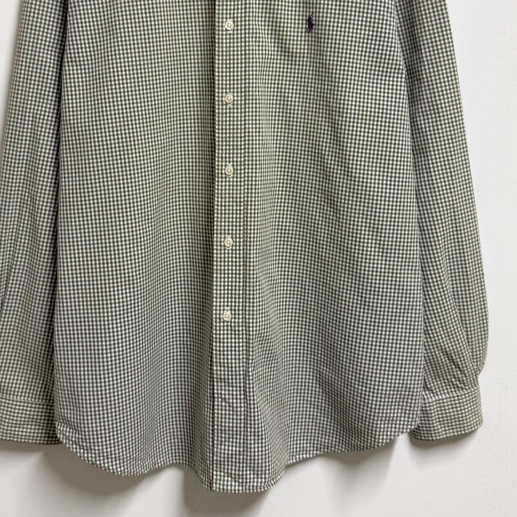 Ralph Lauren ラルフローレン CLASSIC FIT ボタンダウンシャツ コットンシャツ チェック柄 長袖シャツ ワンポイントロゴ 刺繍 カーキ×白 XLサイズ No.M139
