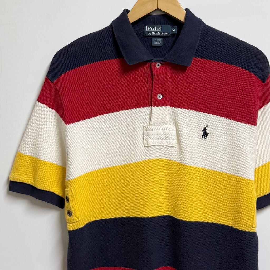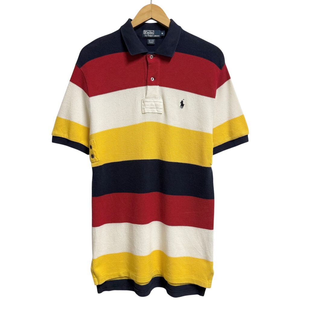 Polo Ralph Lauren ポロ ラルフローレン ポロシャツ 半袖 ボーダー ワンポイントロゴ 刺繍 紺×赤×白×黄色 Mサイズ No.M141