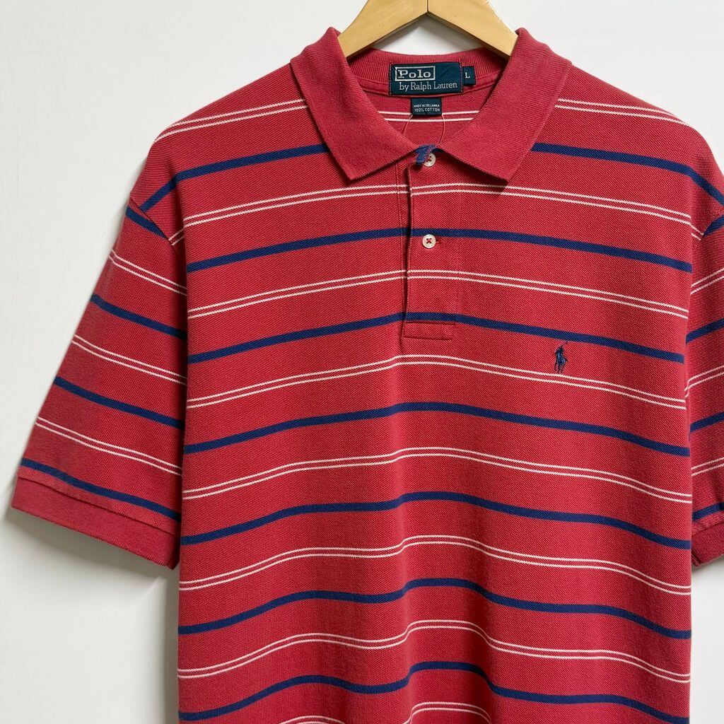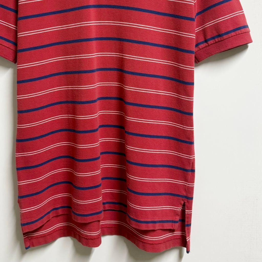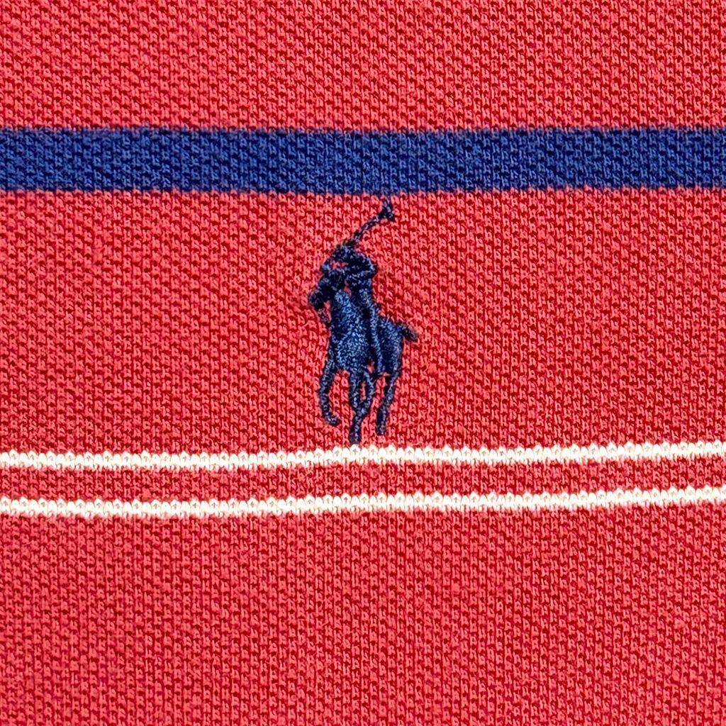 Polo Ralph Lauren ポロ ラルフローレン ポロシャツ 半袖 ボーダー ワンポイントロゴ 刺繍 赤×青×白 Lサイズ No.M144
