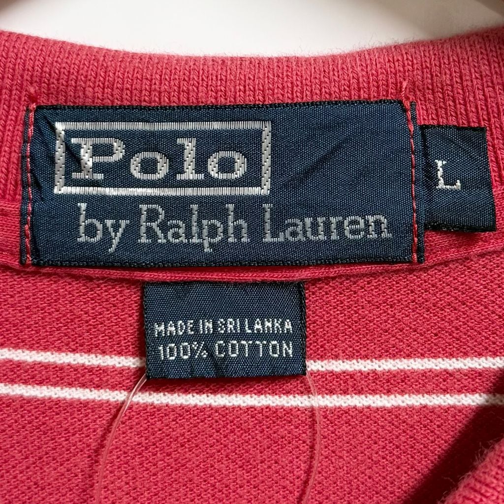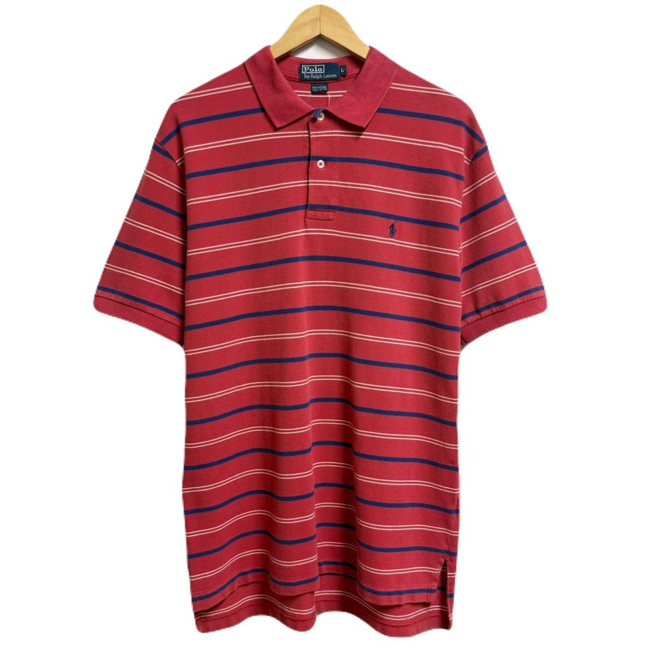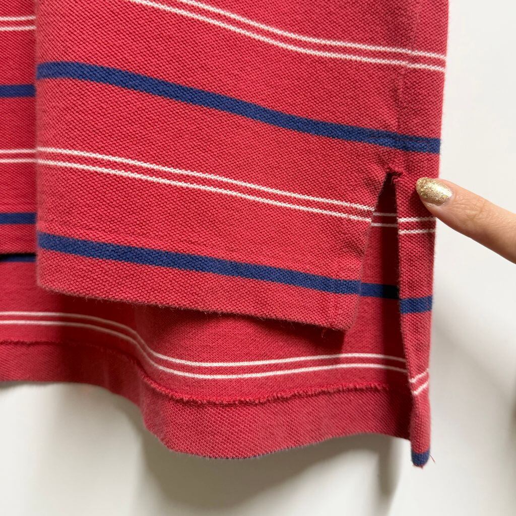 Polo Ralph Lauren ポロ ラルフローレン ポロシャツ 半袖 ボーダー ワンポイントロゴ 刺繍 赤×青×白 Lサイズ No.M144