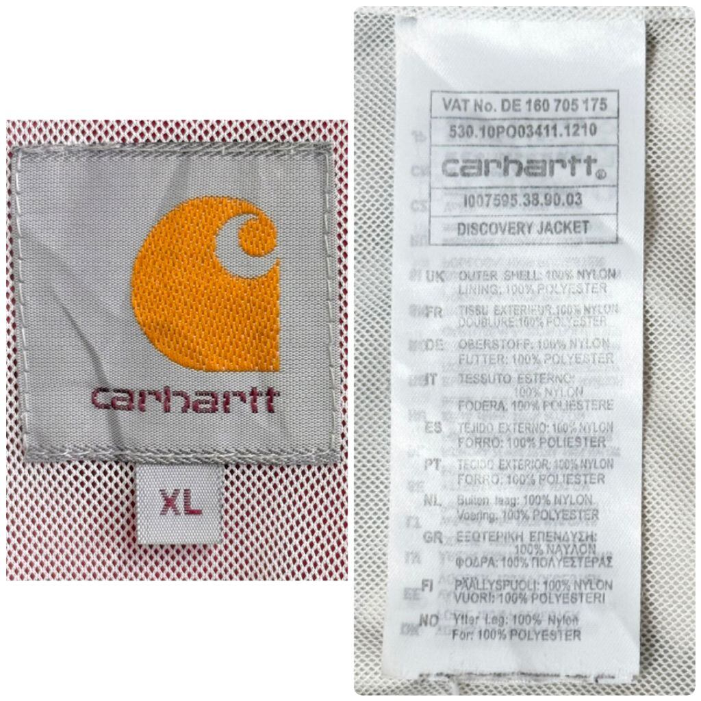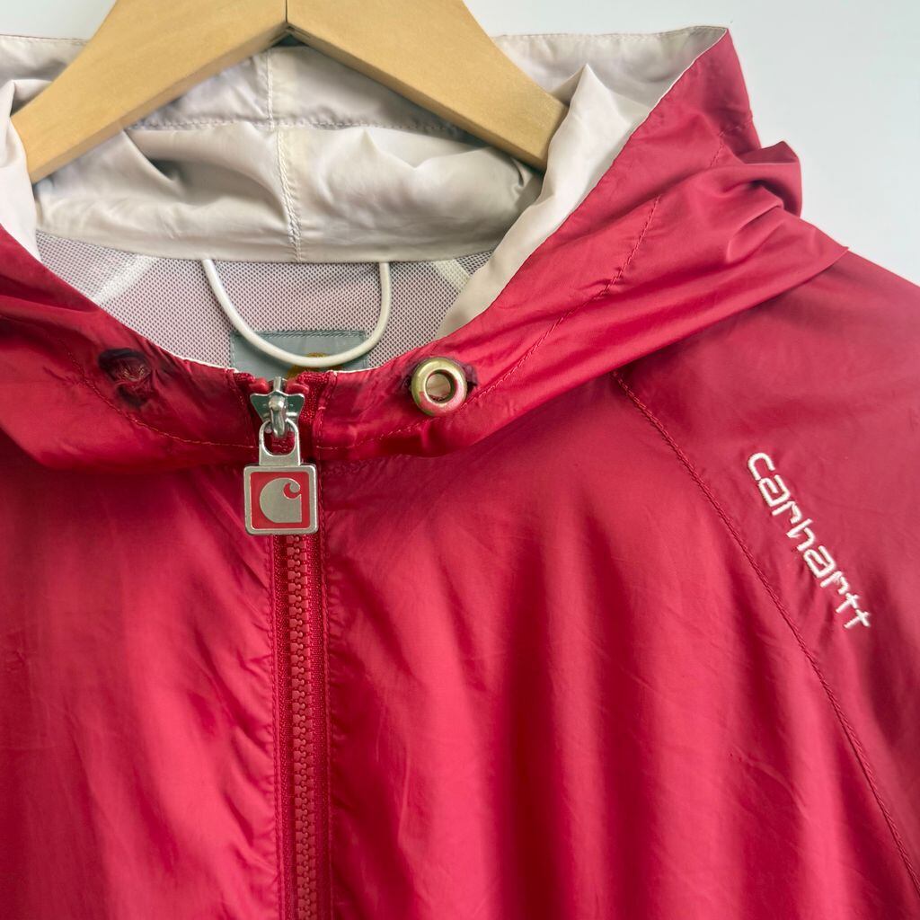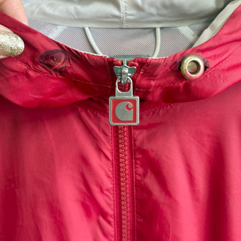 Carhartt カーハート ナイロンジャケット 裏地メッシュ ウィンドブレーカー フード付き ロゴ刺繍 バイカラー 赤×オフホワイト XLサイズ No.M154
