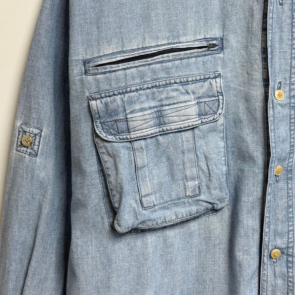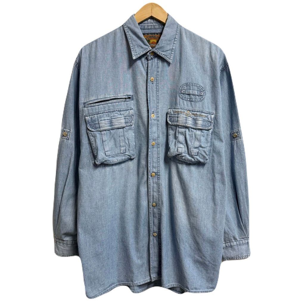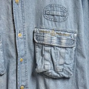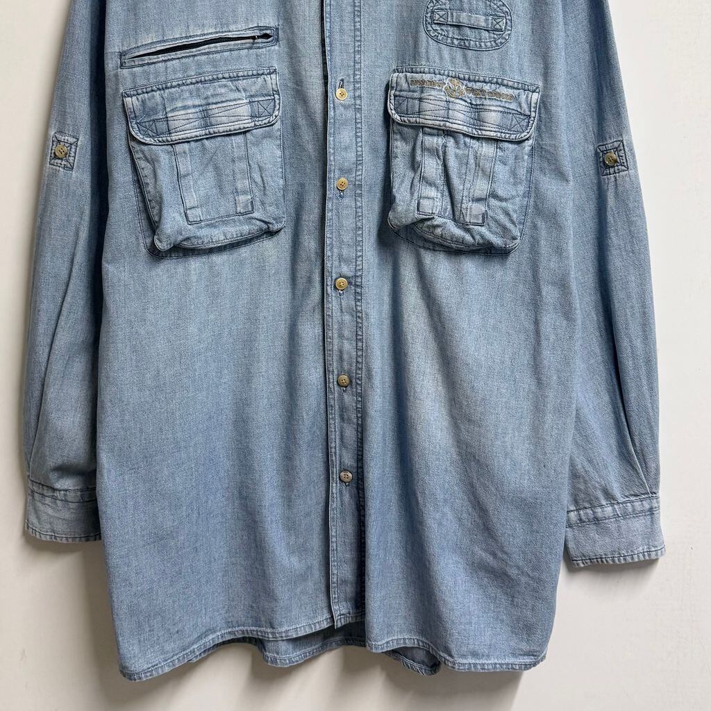 PUSSER'S WEST INDIES シャンブレーシャツ コットンシャツ ポケット付き 長袖シャツ ワンポイントロゴ 刺繍 ライトブルー 青 Lサイズ No.M165