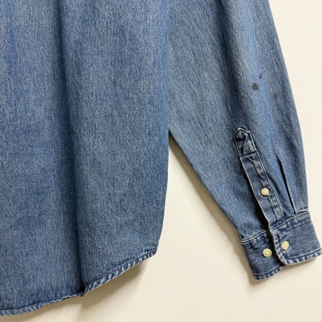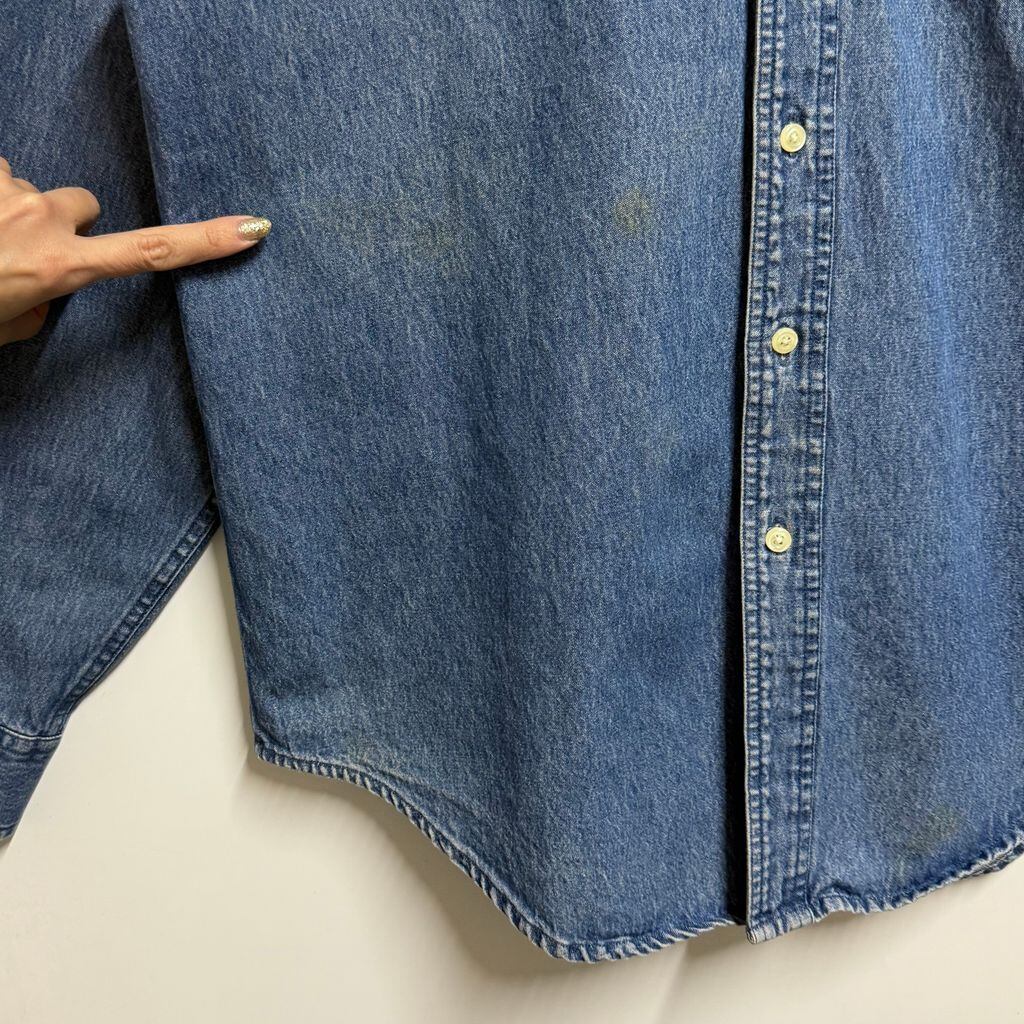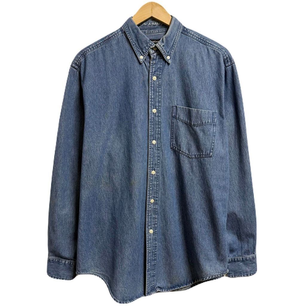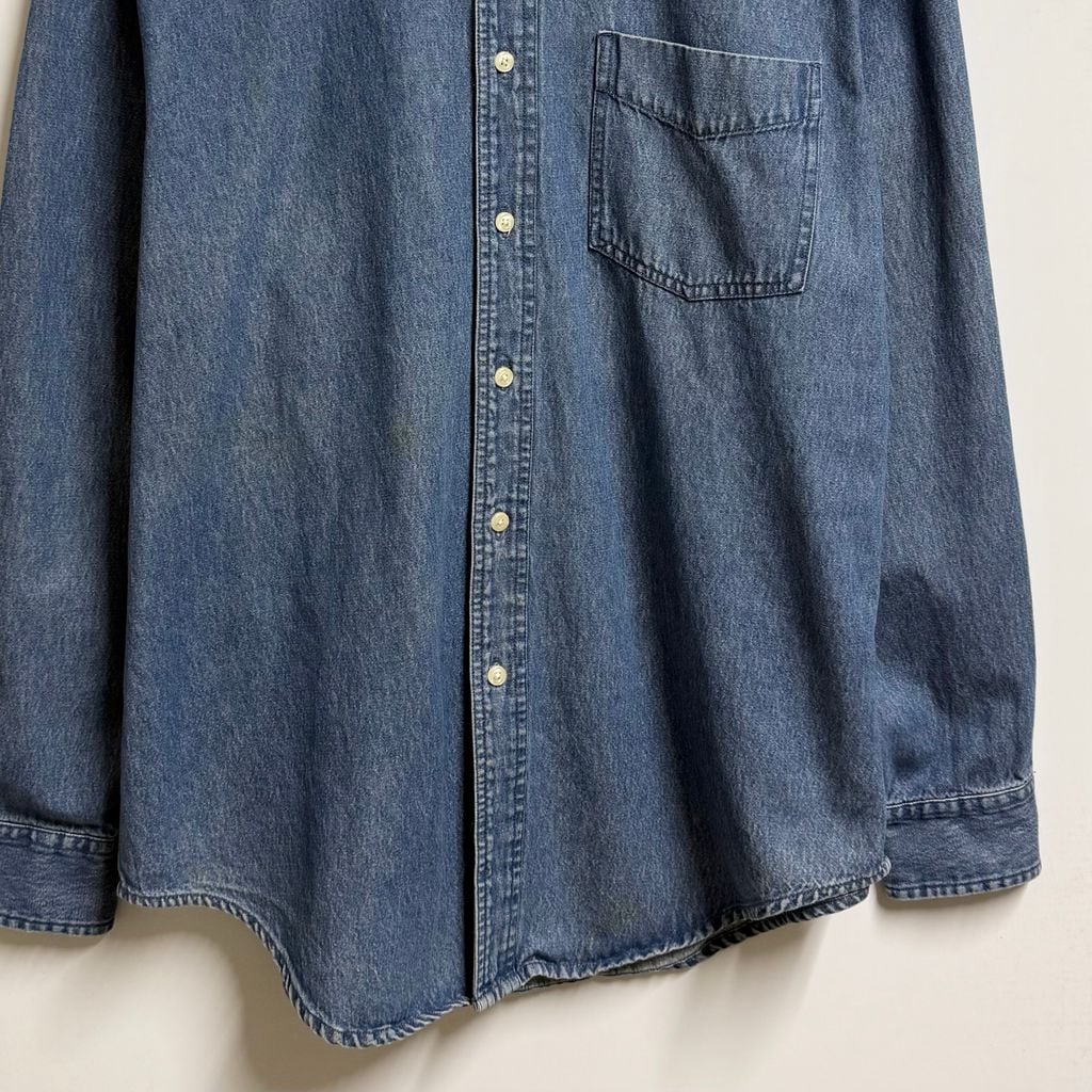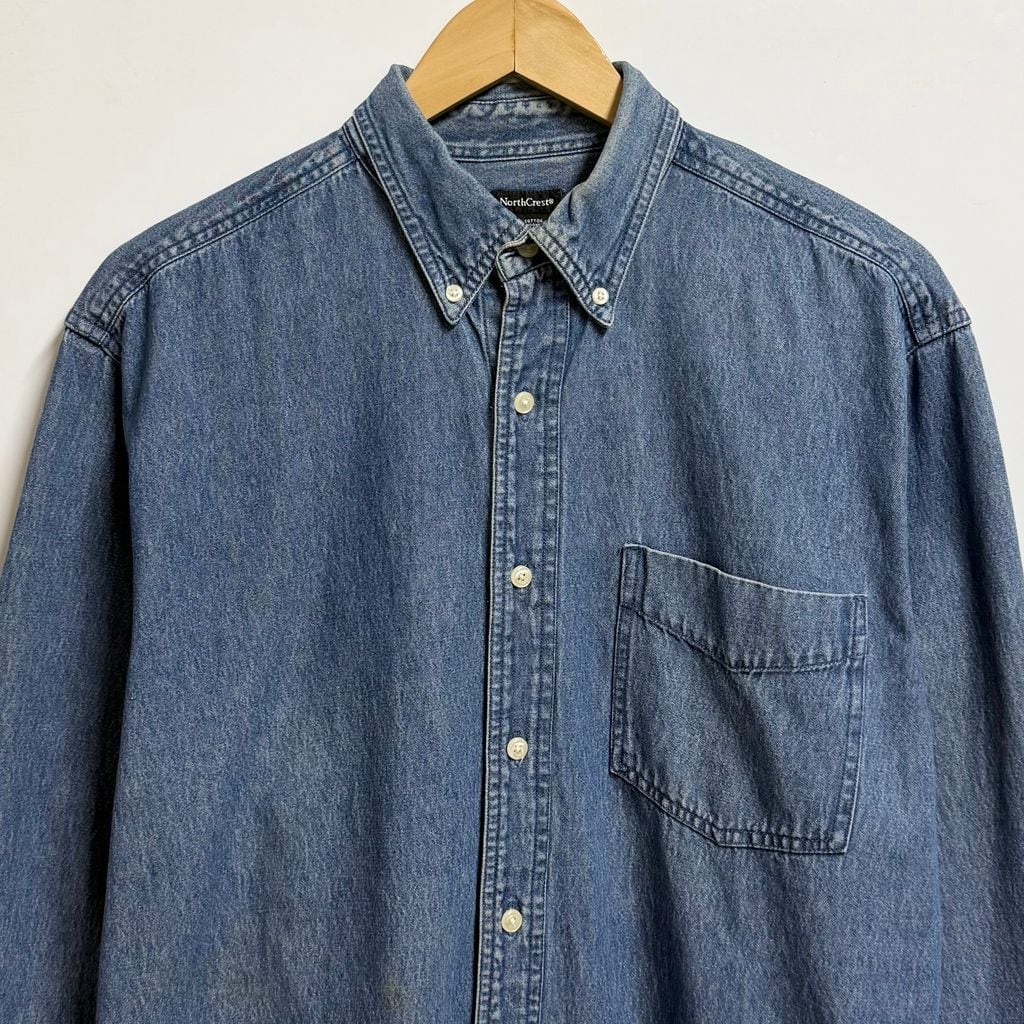 North Crest デニムシャツ ボタンダウンシャツ コットンシャツ 無地 ポケット付き 長袖シャツ 青 ブルー Mサイズ No.M166