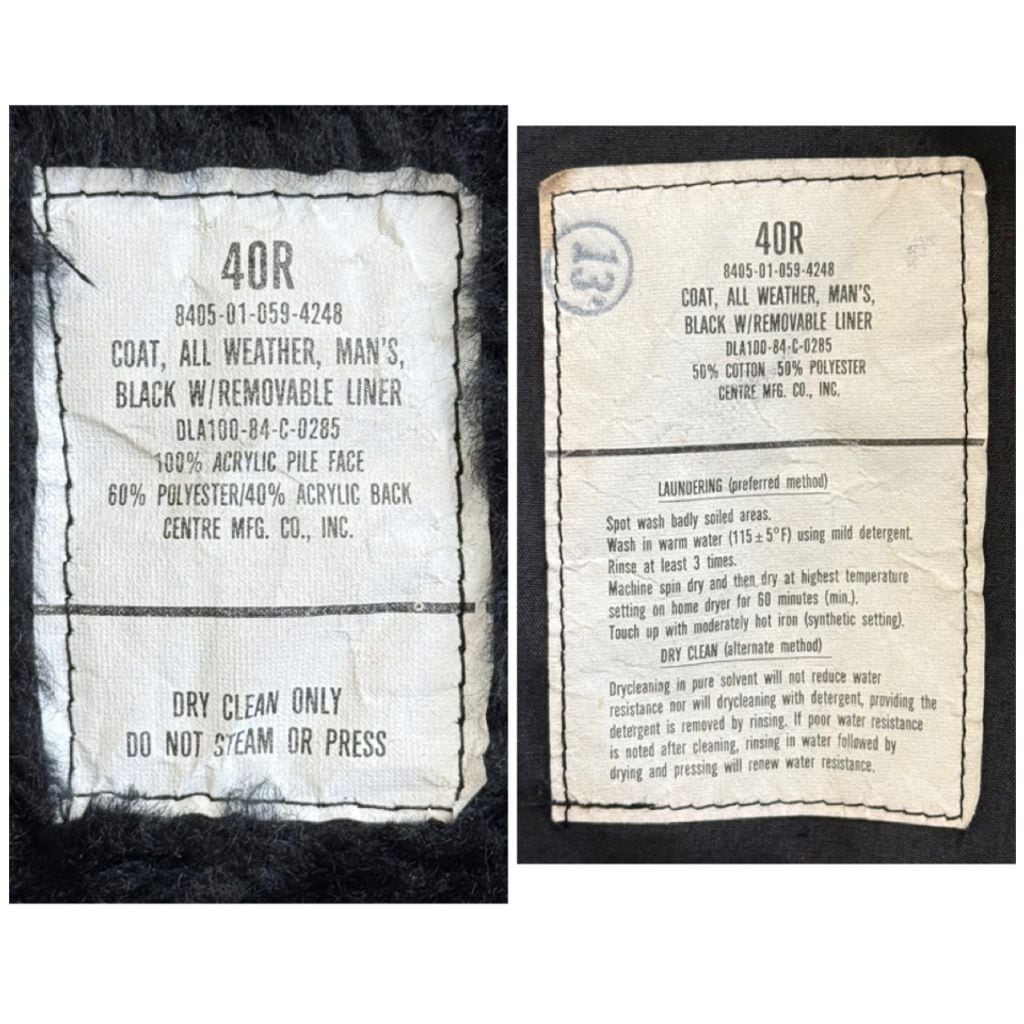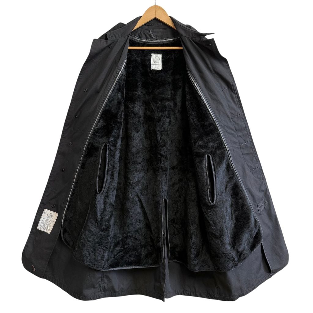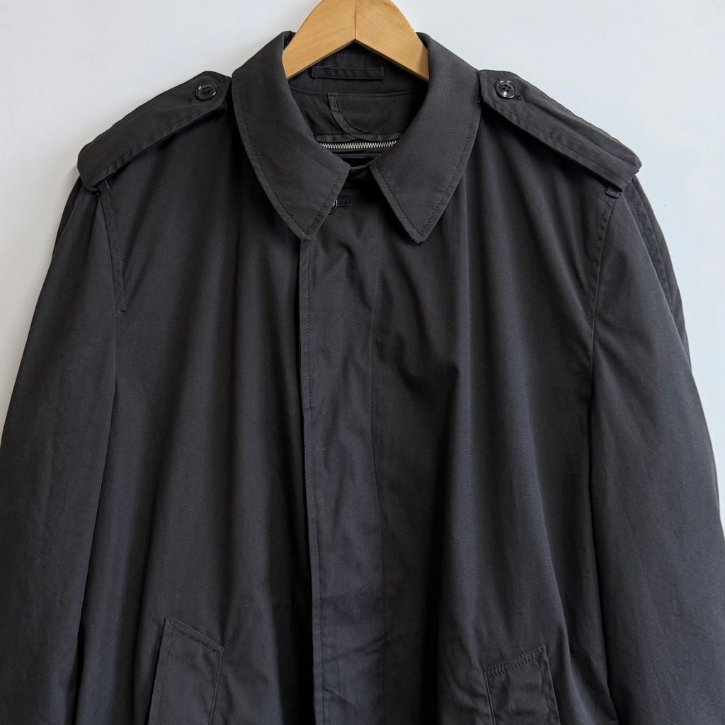 80's vintage ビンテージ USA製 米軍 ミリタリー オールウェザーコート ステンカラーコート ボアライナー付き エポレット 黒 40Rサイズ No.M173
