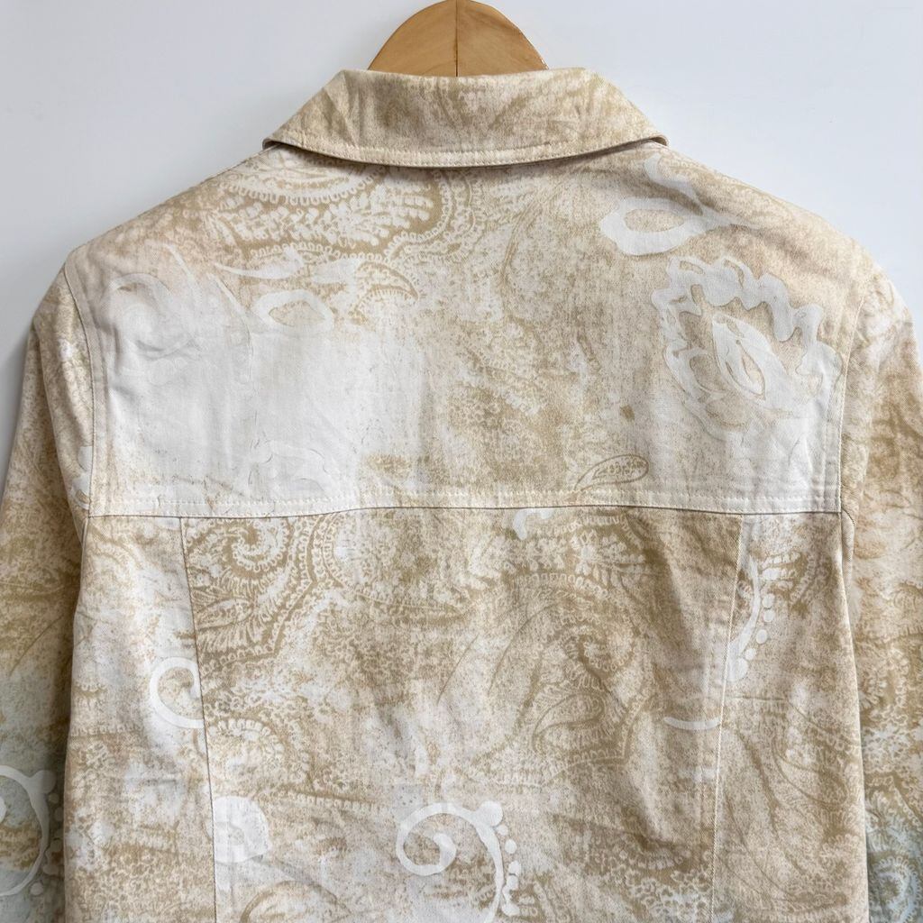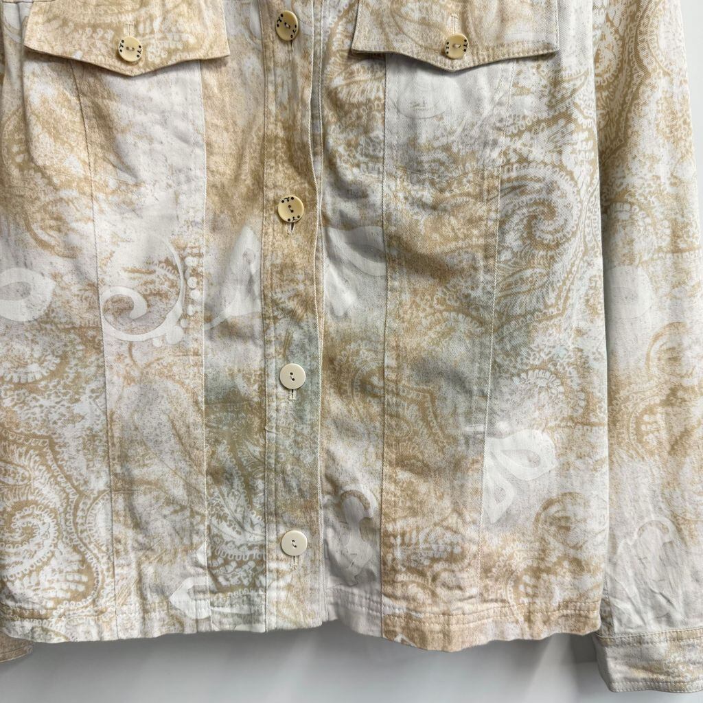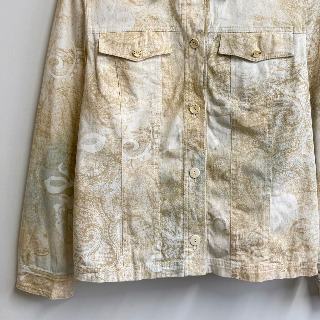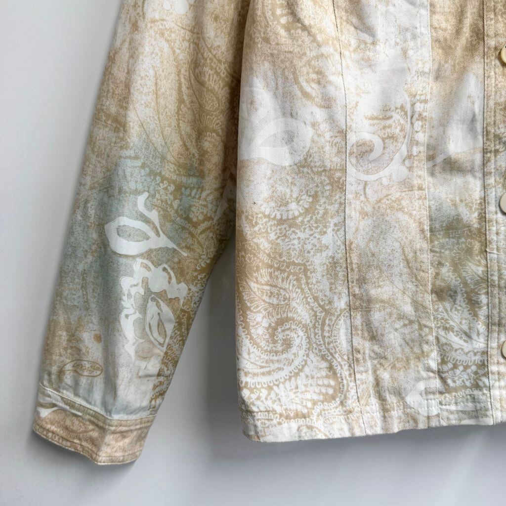 Gustano シャツジャケット ペイズリー柄 総柄 柄シャツ トラッカージャケット 白×ベージュ No.M185