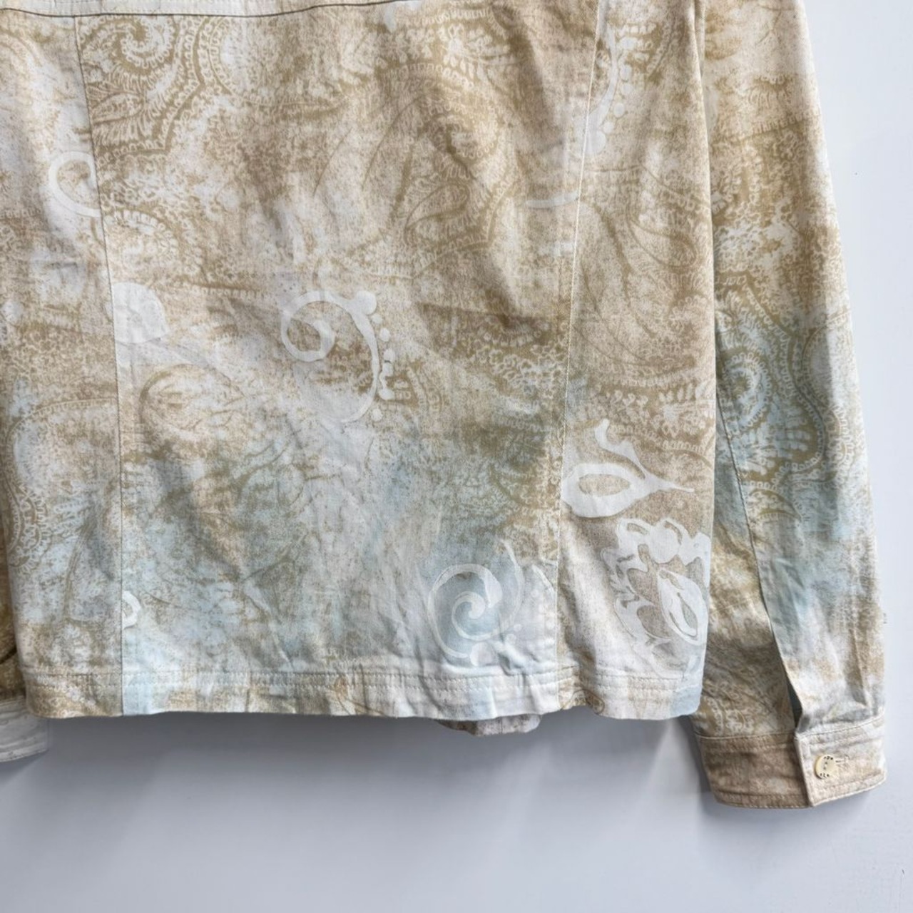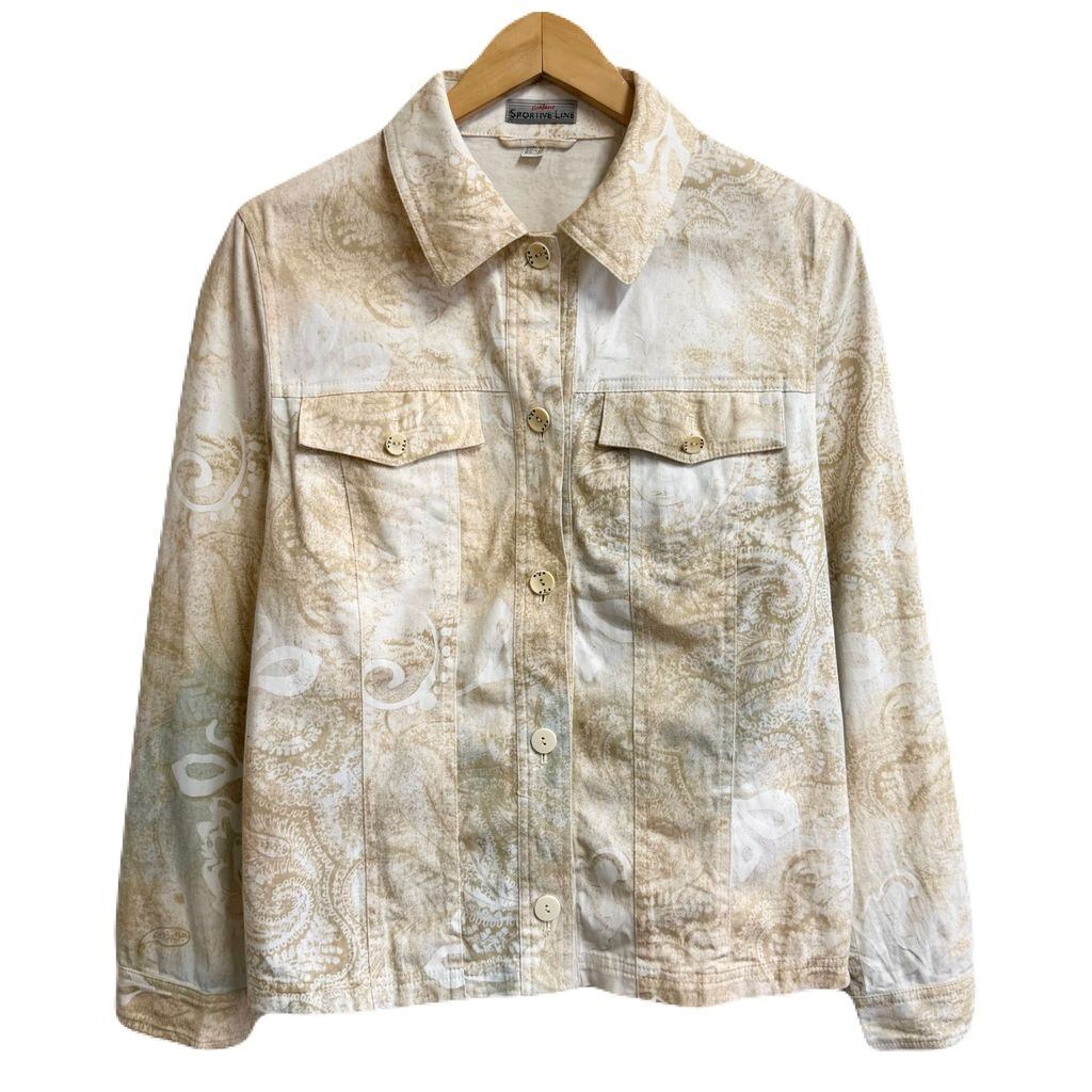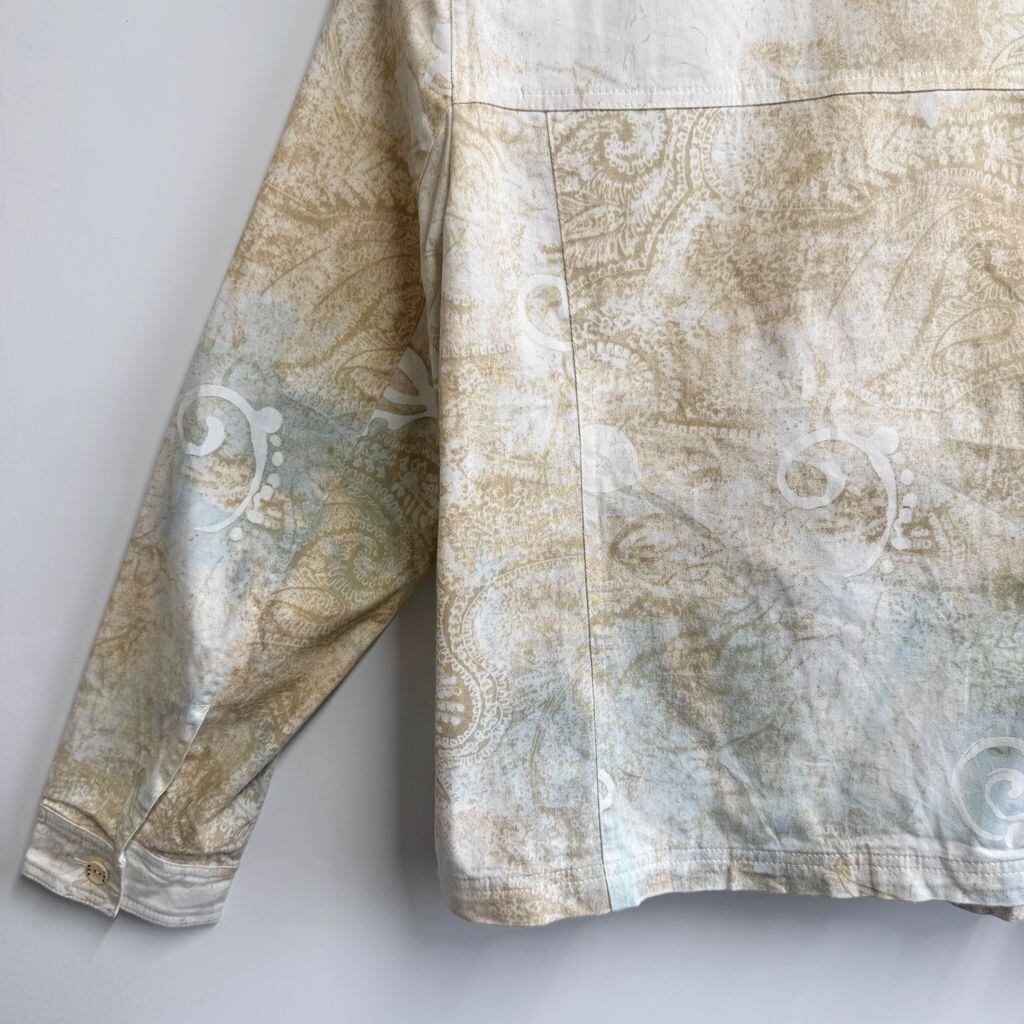 Gustano シャツジャケット ペイズリー柄 総柄 柄シャツ トラッカージャケット 白×ベージュ No.M185