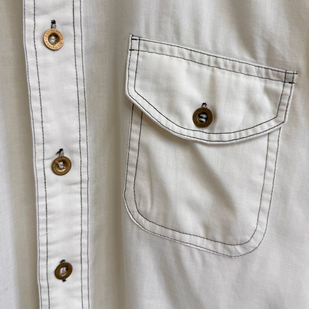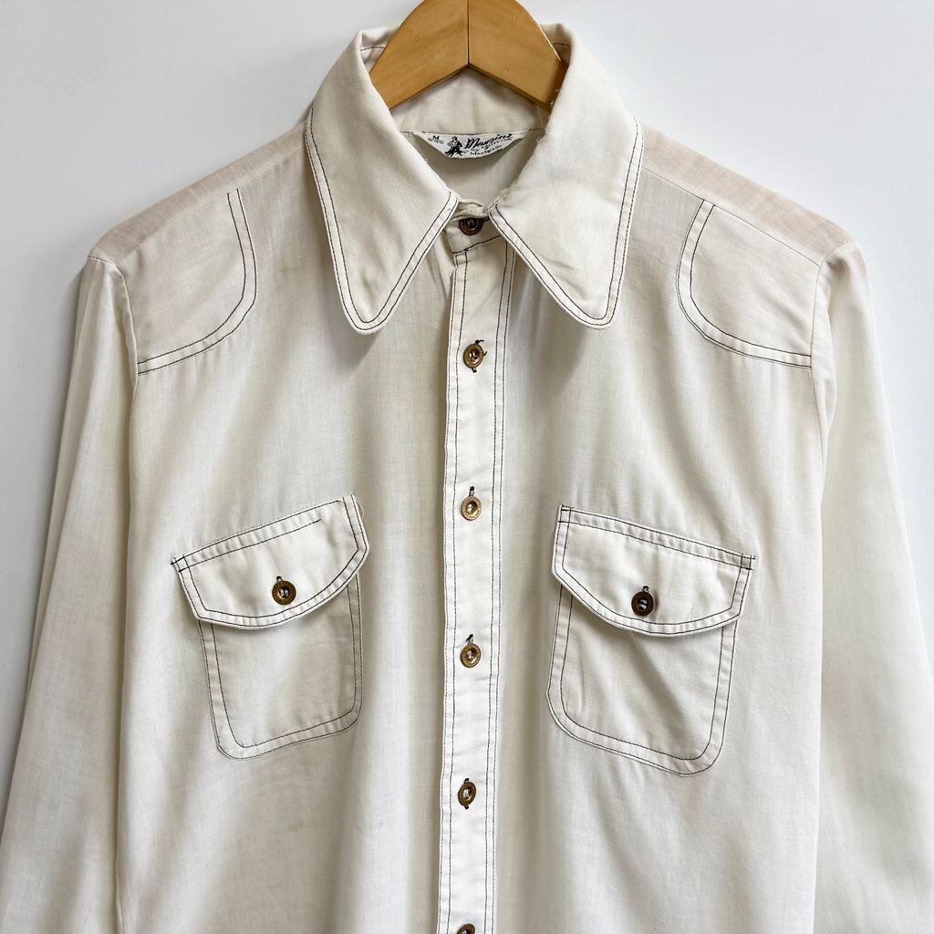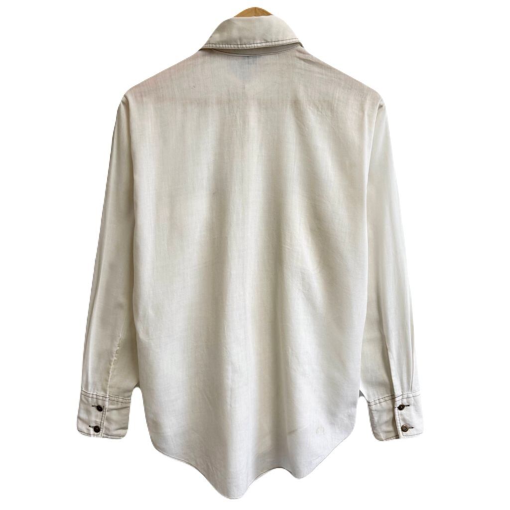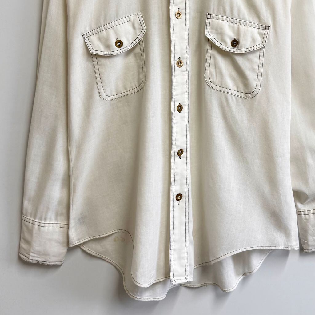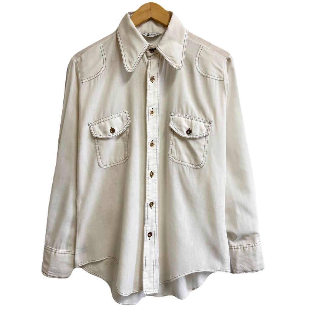 70's vintage ビンテージ Monzini ウエスタンシャツ風 パイピング 無地 ポケット付き 長袖シャツ 白 オフホワイト Mサイズ No.M187