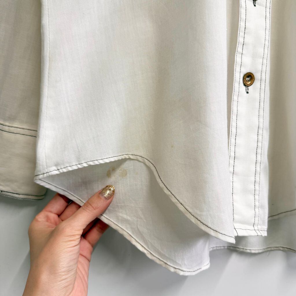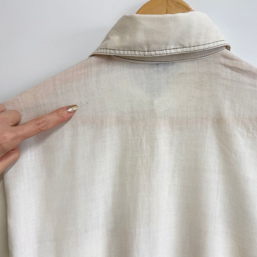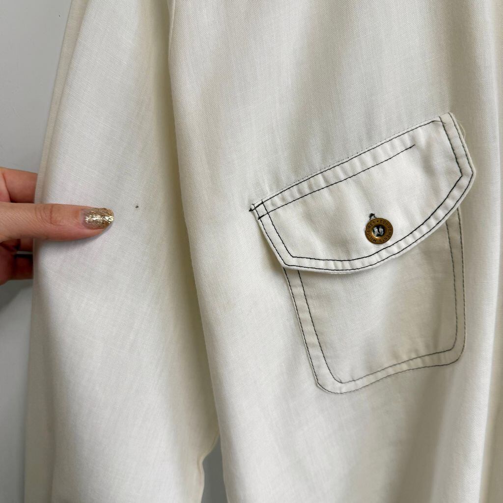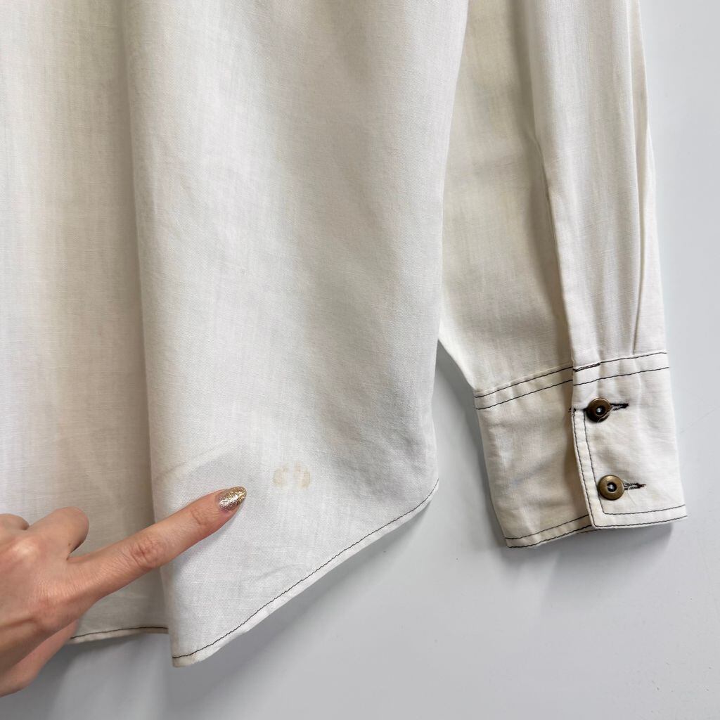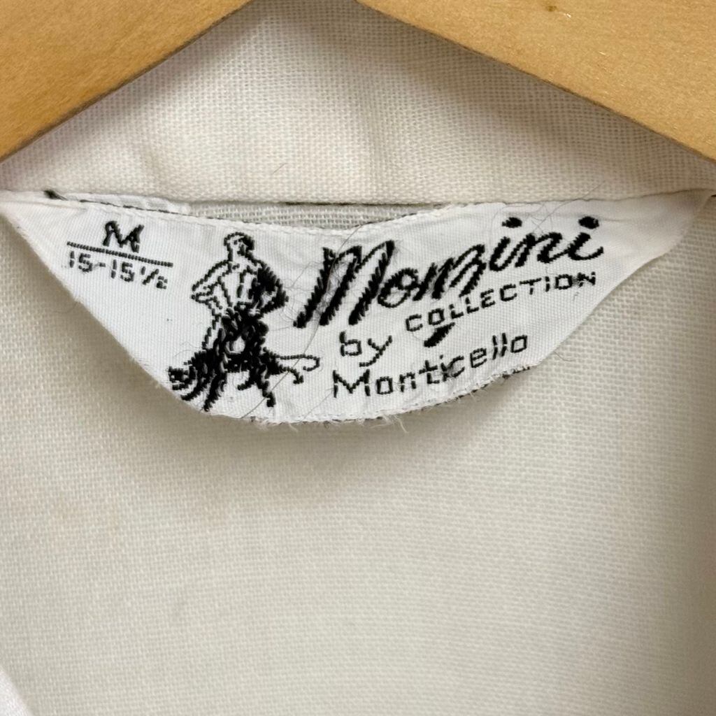 70's vintage ビンテージ Monzini ウエスタンシャツ風 パイピング 無地 ポケット付き 長袖シャツ 白 オフホワイト Mサイズ No.M187