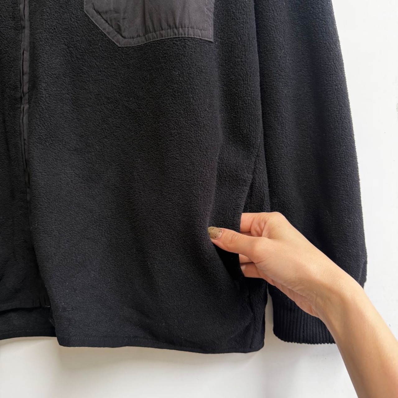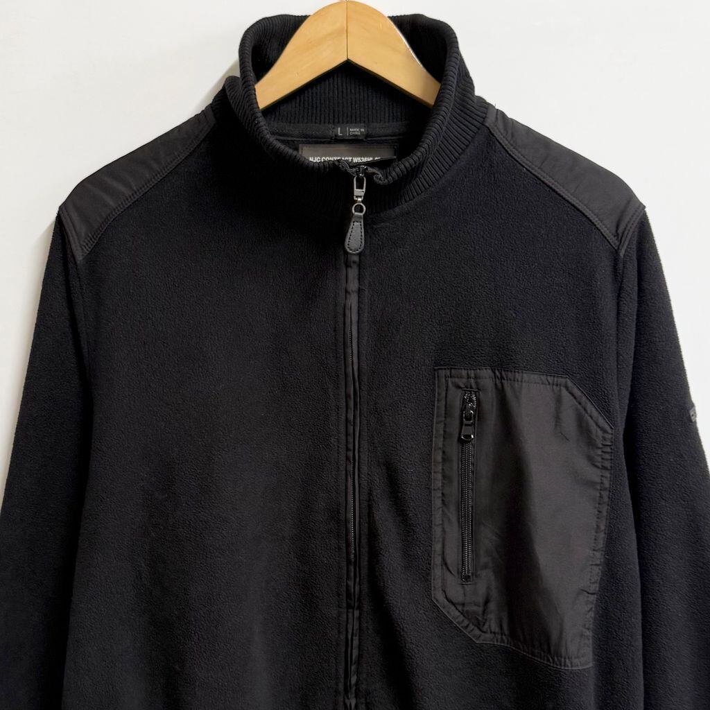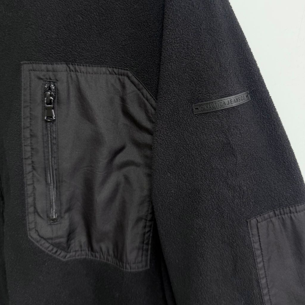 NAUTICA JEANS ノーティカジーンズ フリースジャケット 切り替えデザイン ハイネック フルジップ ポケット付き 黒 ブラック Lサイズ No.M192