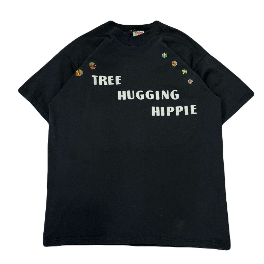 FRUIT OF THE LOOM TREEE HUGGING HIPPIE 両面 フェルトロゴ Tシャツ 黒 Lサイズ No.EA115