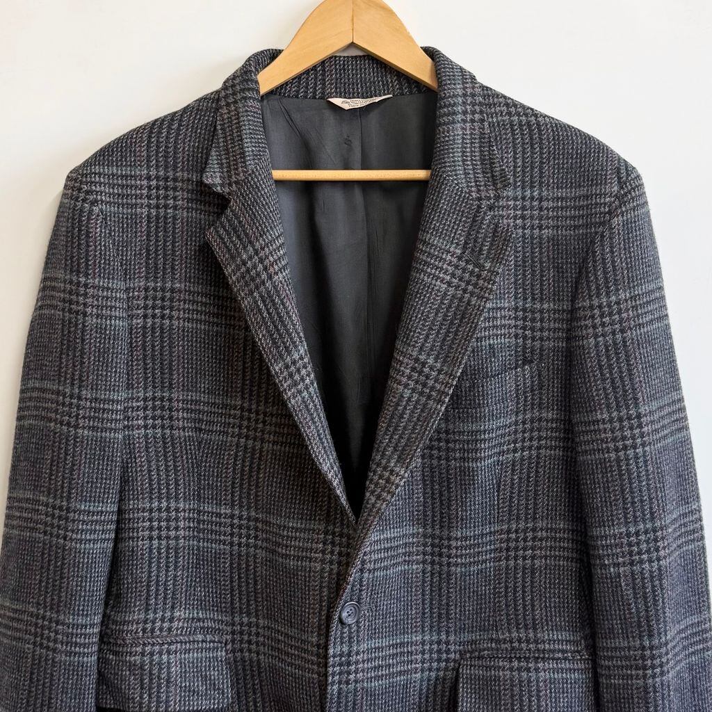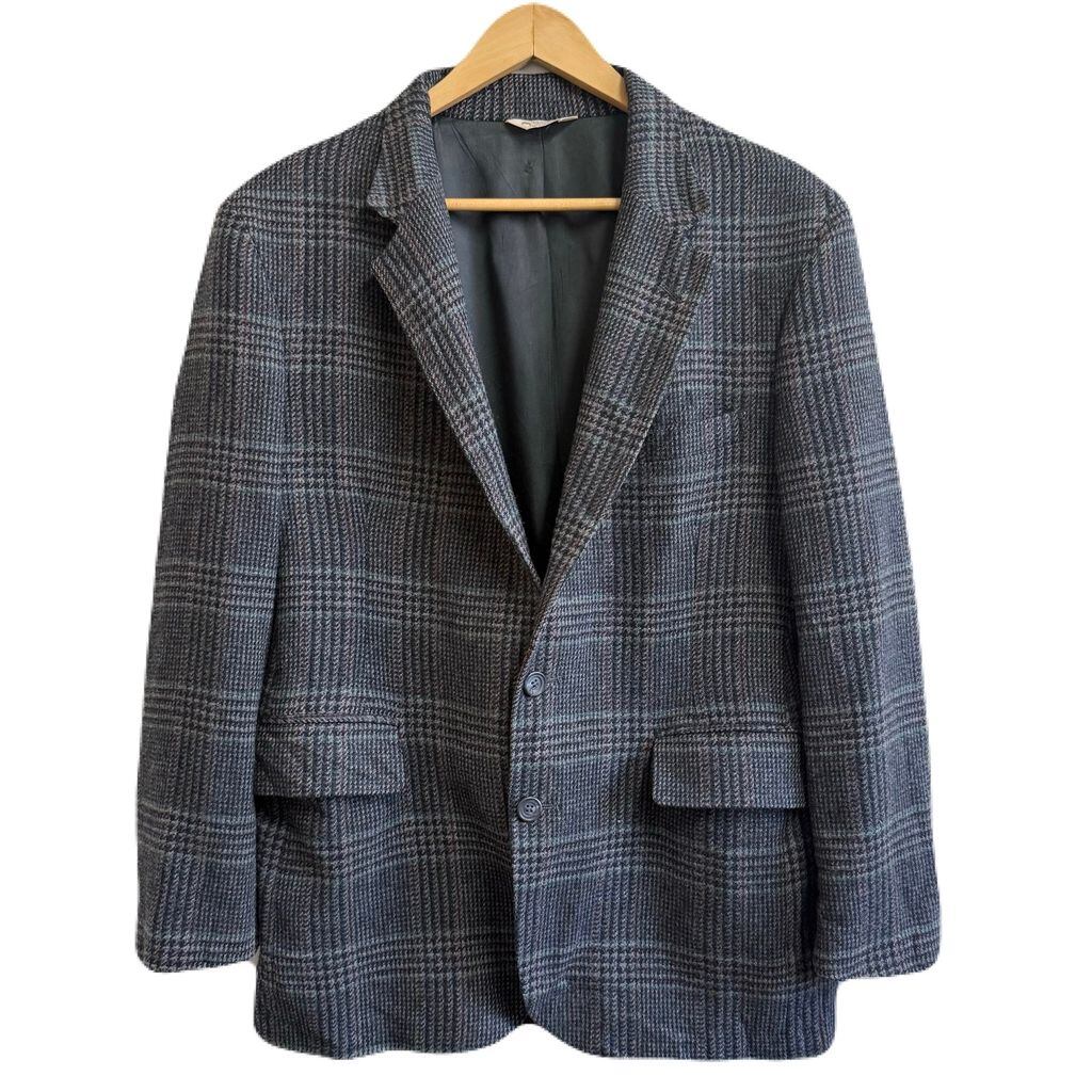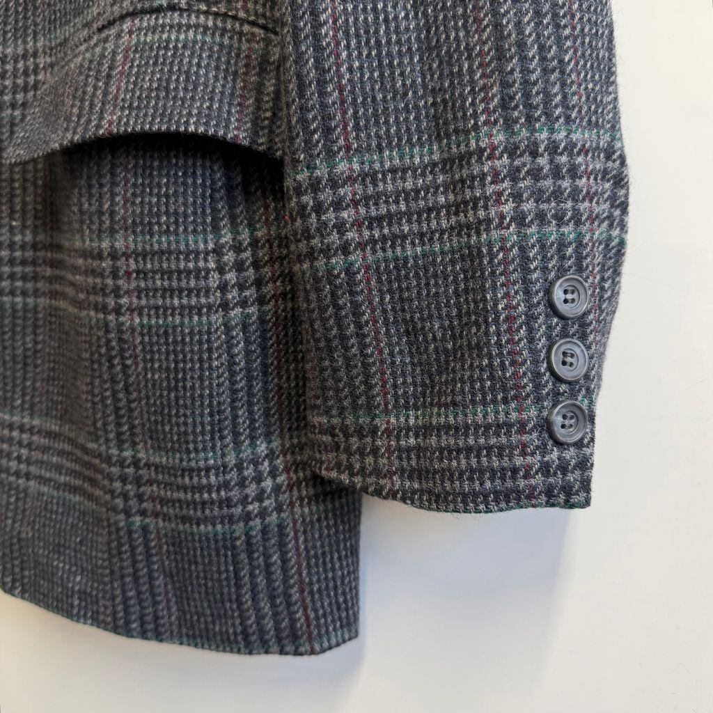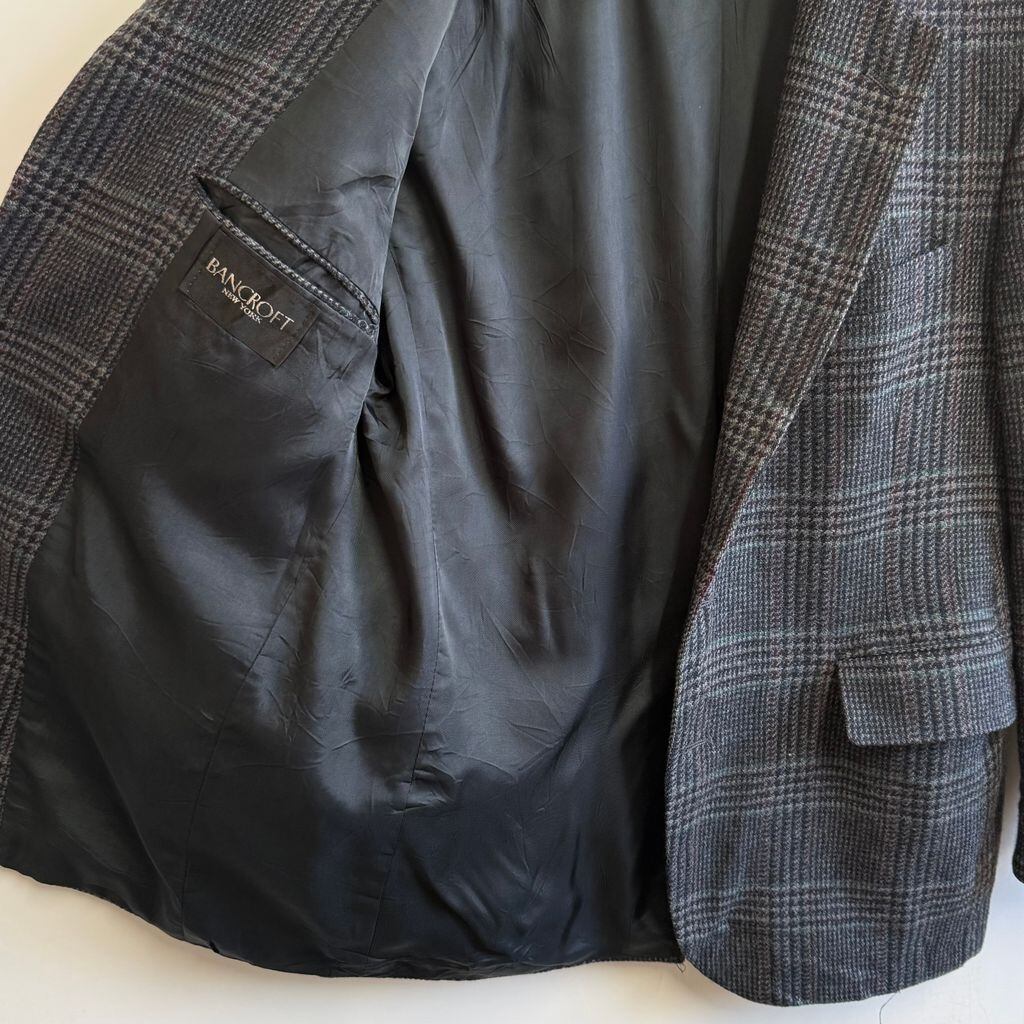 USA製 BANCROFT ウールジャケット テーラードジャケット チェック柄 センターベント 紺×多色 サイズ39 No.M203