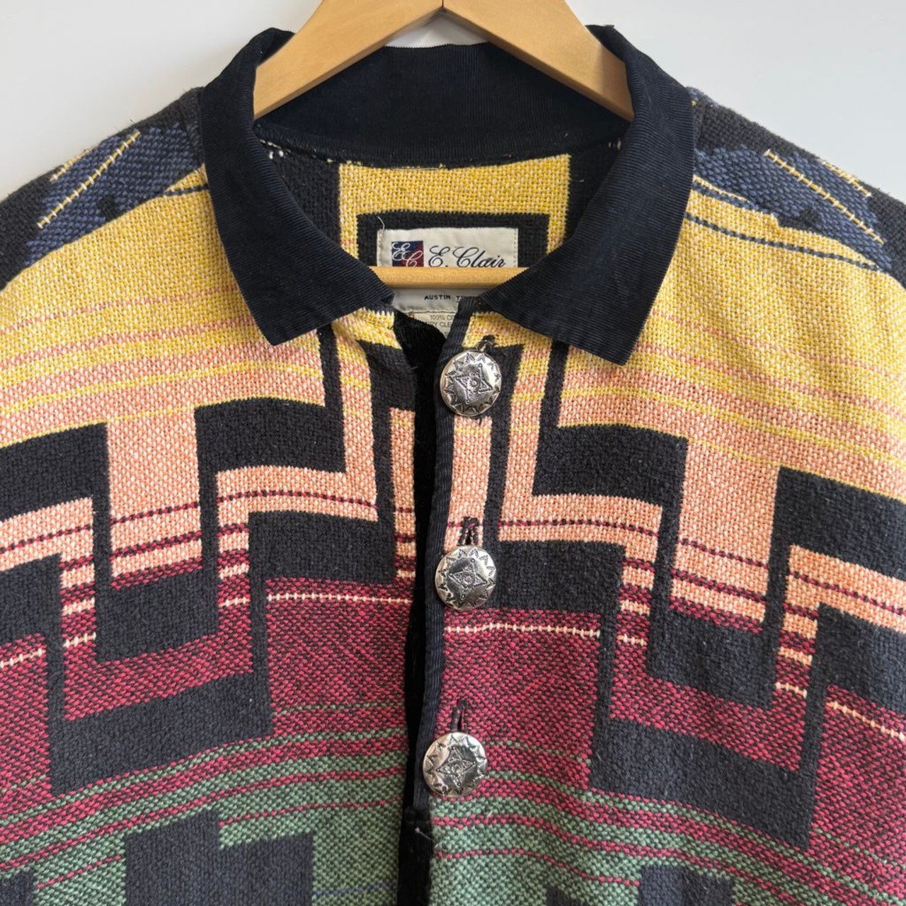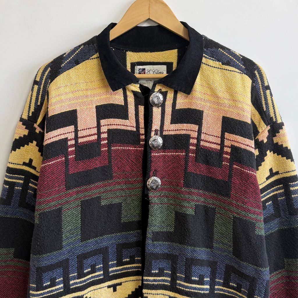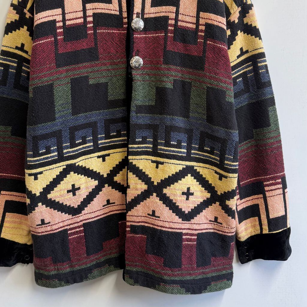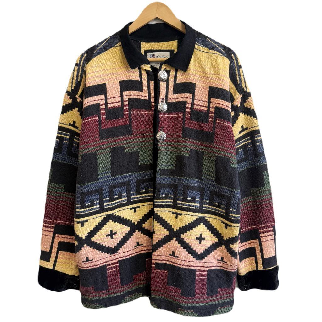 E.Clair DESIGNS サウスウエスタンジャケット ネイティブ柄 トライバル柄 アステカ柄 幾何学模様 黒×多色 カラフル ONE SIZE No.M204
