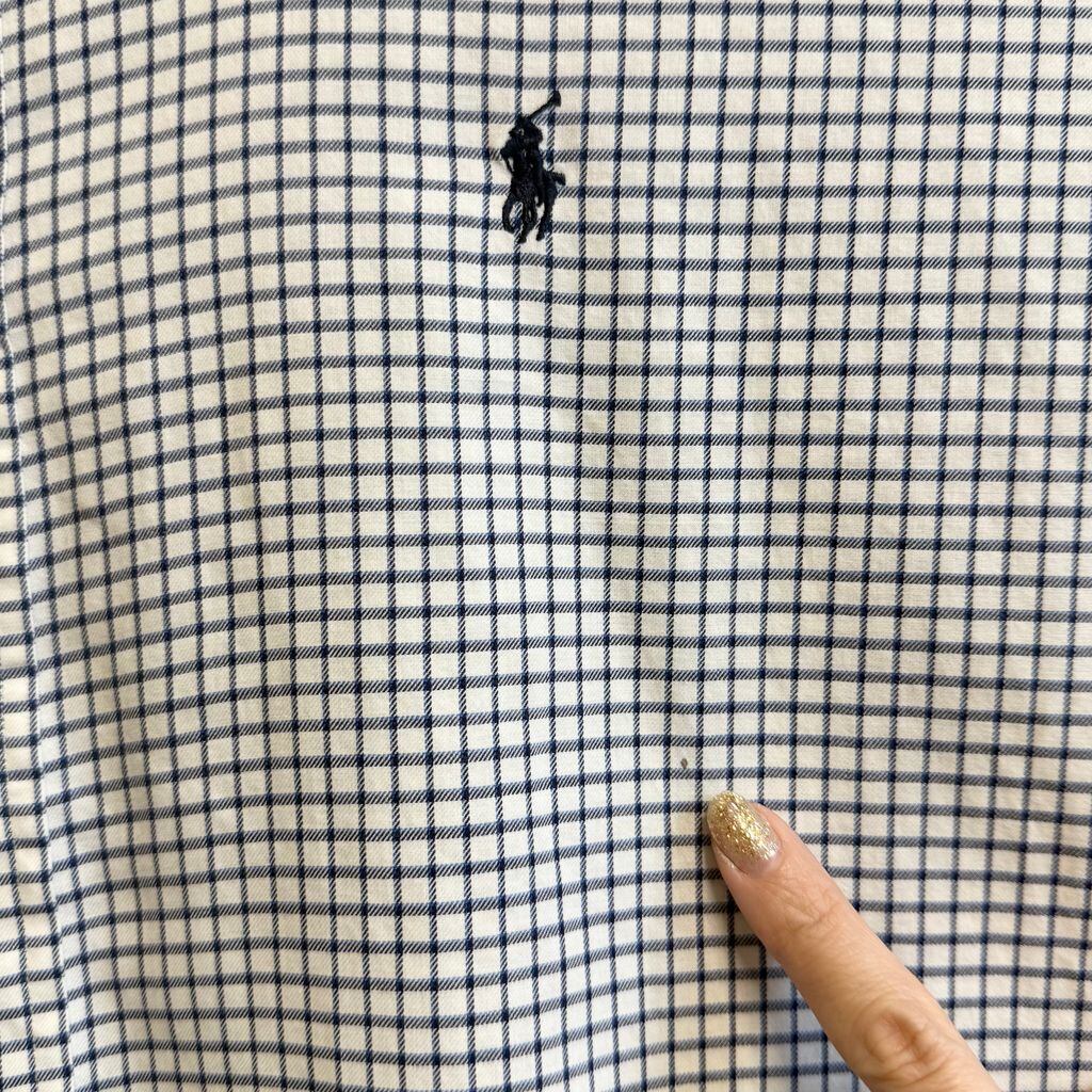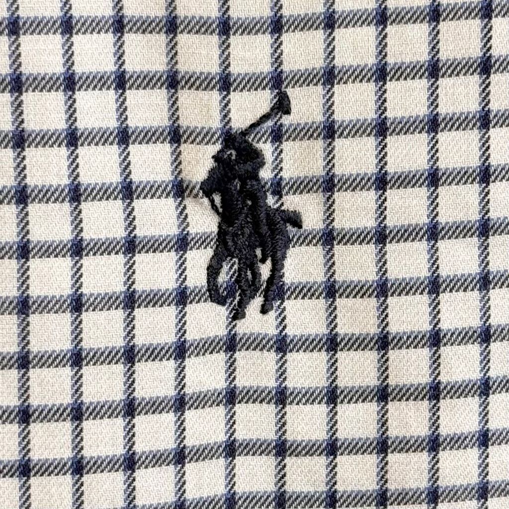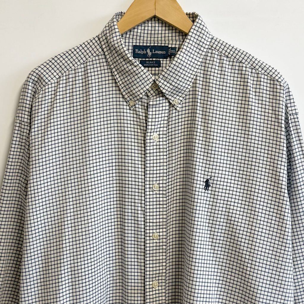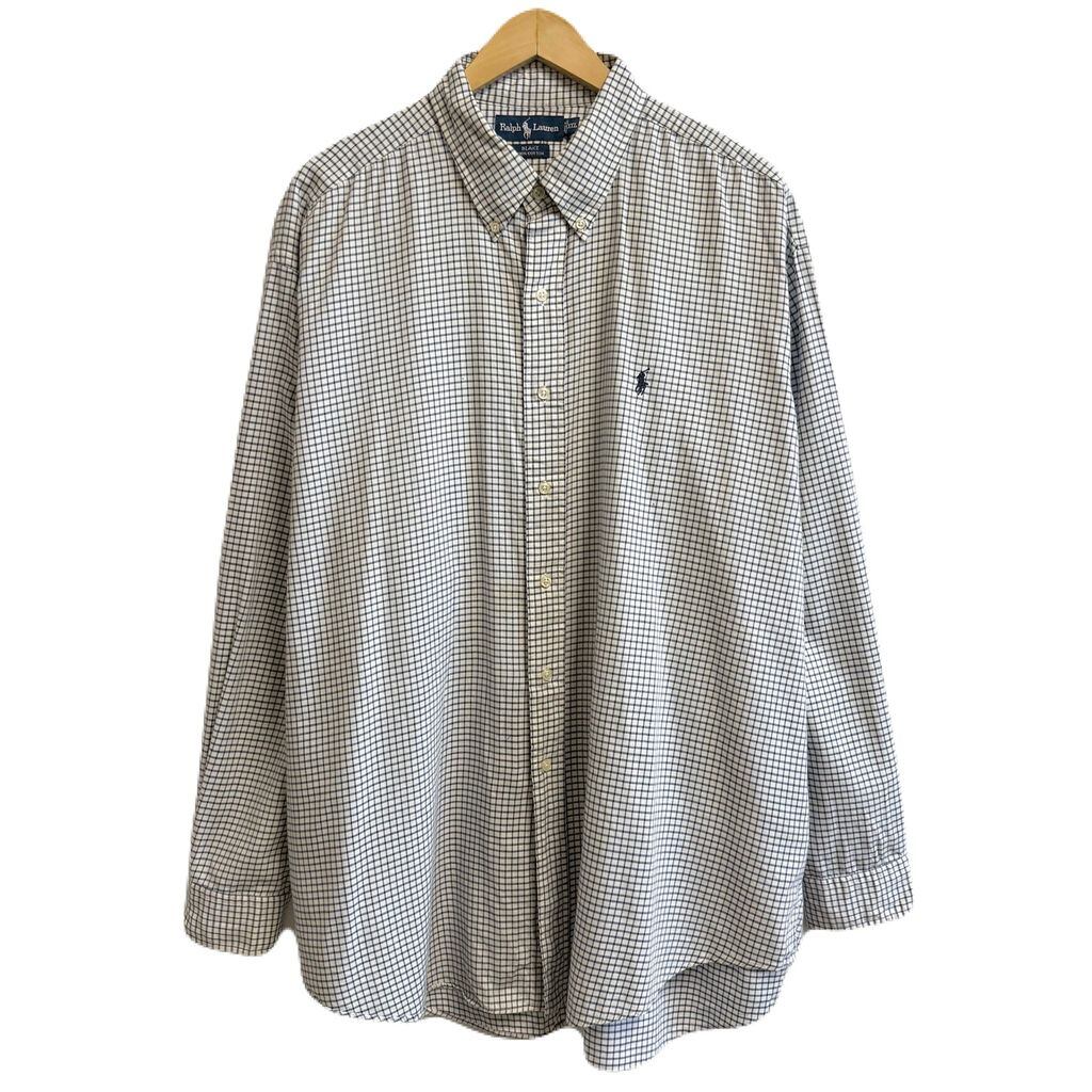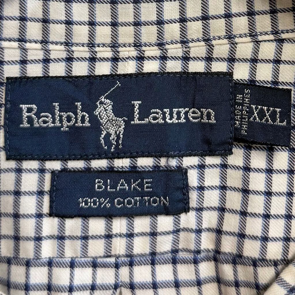 Ralph Lauren ラルフローレン BLAKE ボタンダウンシャツ コットンシャツ チェック柄 長袖シャツ ワンポイントロゴ 刺繍 白×紺×青 XXLサイズ No.M215
