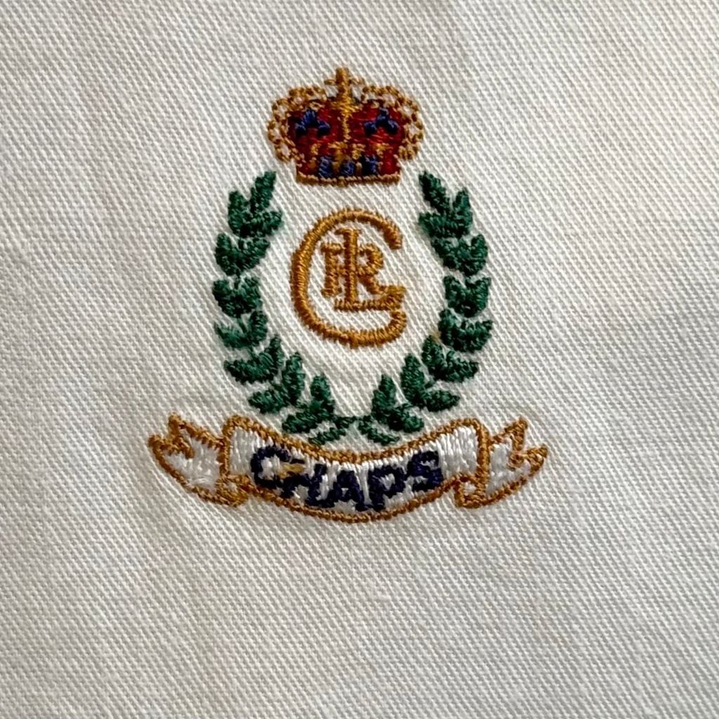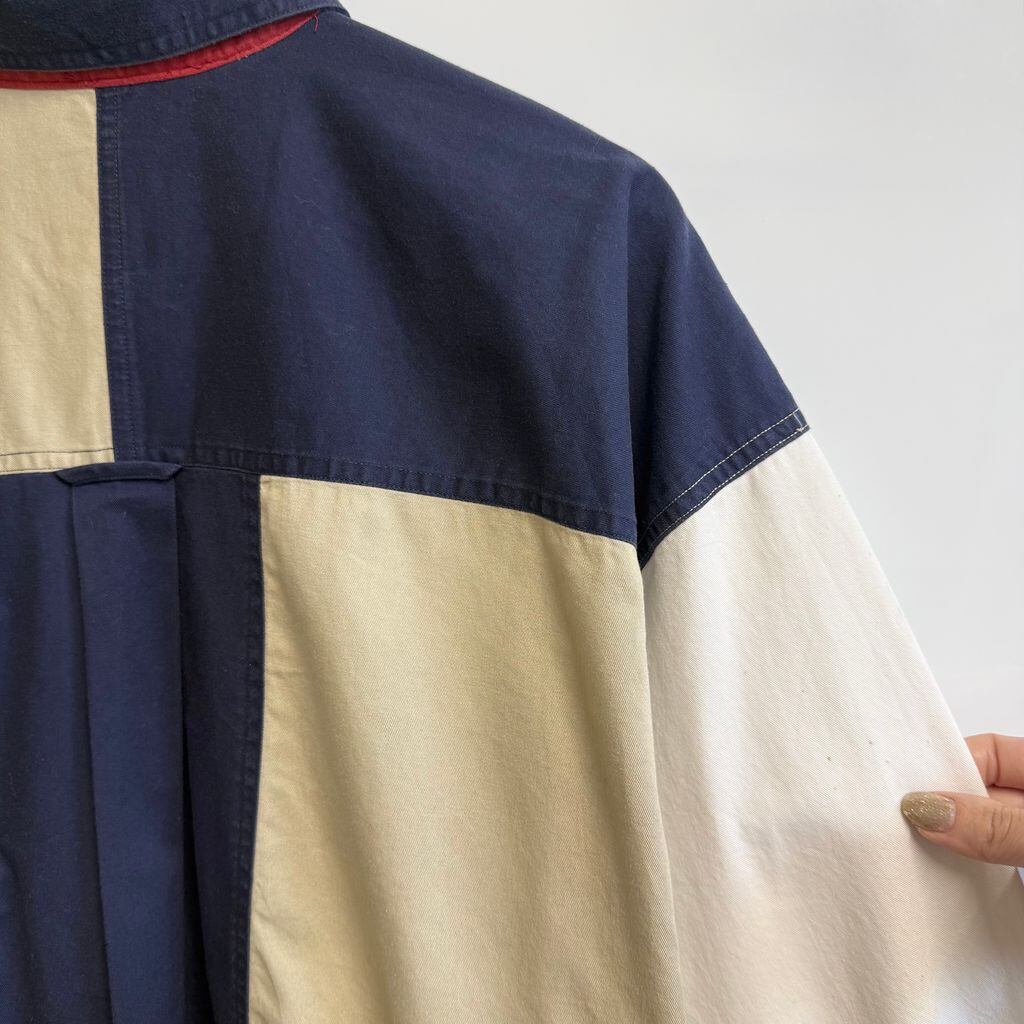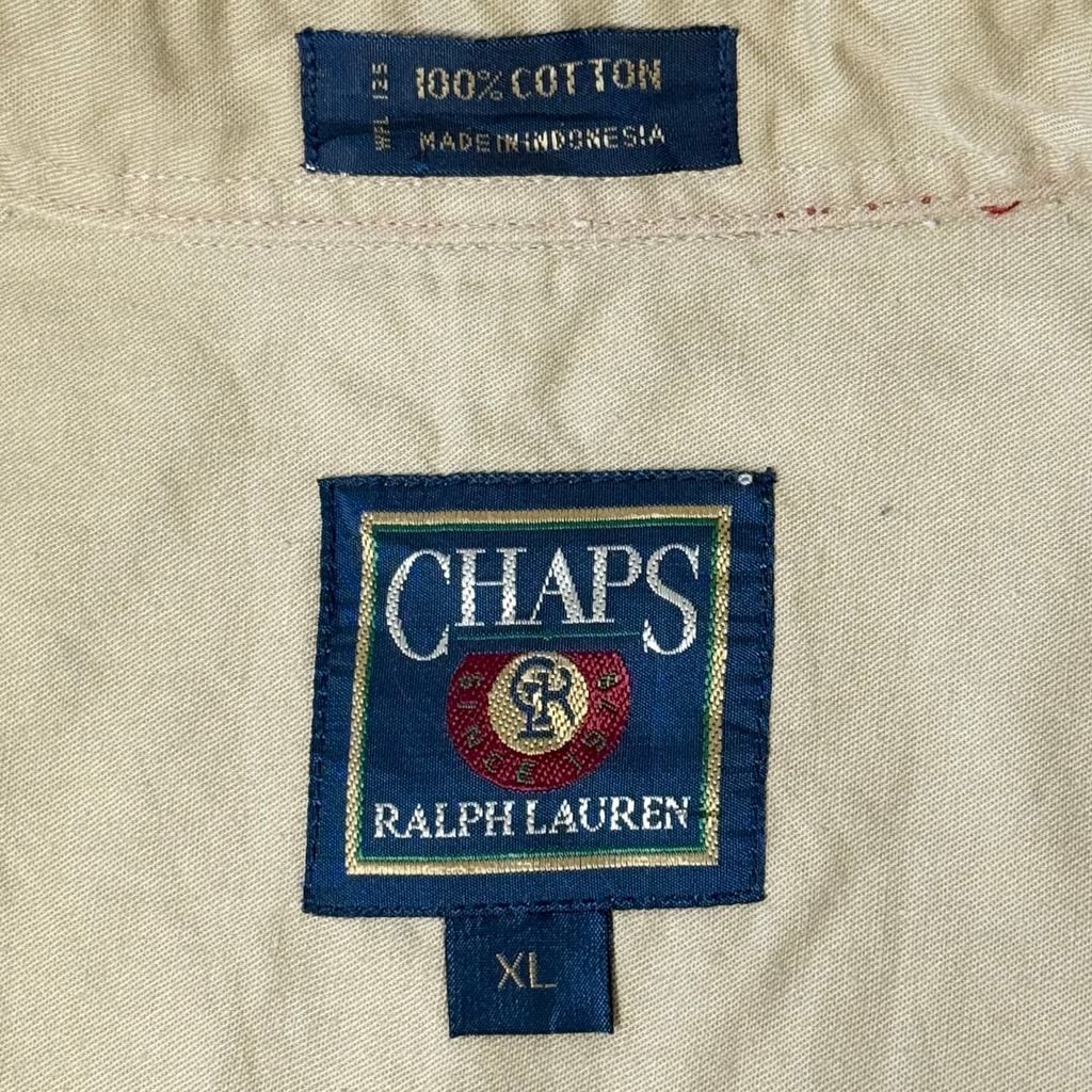 90's CHAPS チャップス RALPH LAUREN ラルフローレン ボタンダウンシャツ コットンシャツ 長袖シャツ ワンポイントロゴ 刺繍 カラーブロック マルチカラー 白×紺×ベージュ XLサイズ No.M216