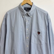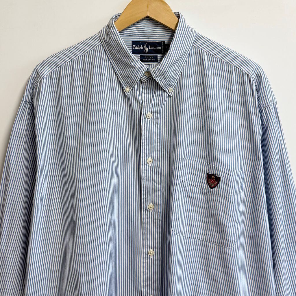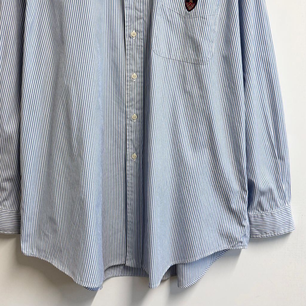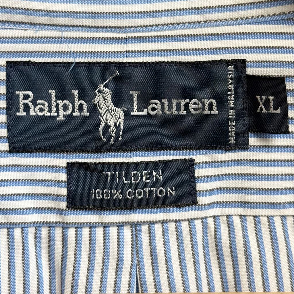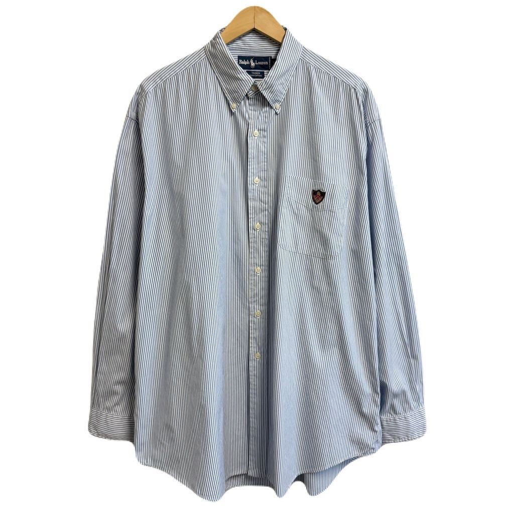 Ralph Lauren ラルフローレン TILDEN ボタンダウンシャツ コットンシャツ ストライプ ポケット付き 長袖シャツ ワンポイントロゴ 刺繍 白×水色×茶色 XLサイズ No.M218