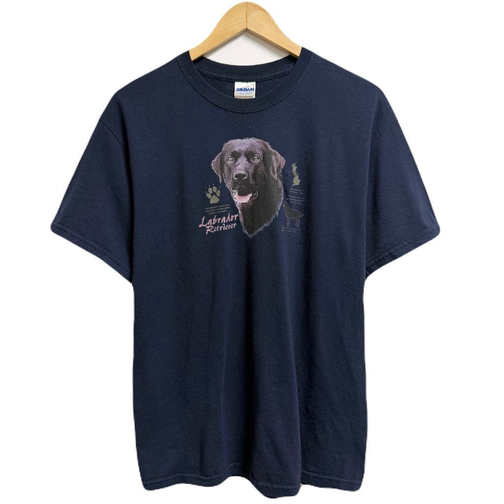 GILDAN ギルダン ラブラドールレトリバー 犬 dog アニマルプリント フォトプリント 半袖Tシャツ 紺 ネイビー Mサイズ No.M222