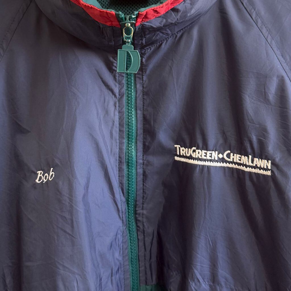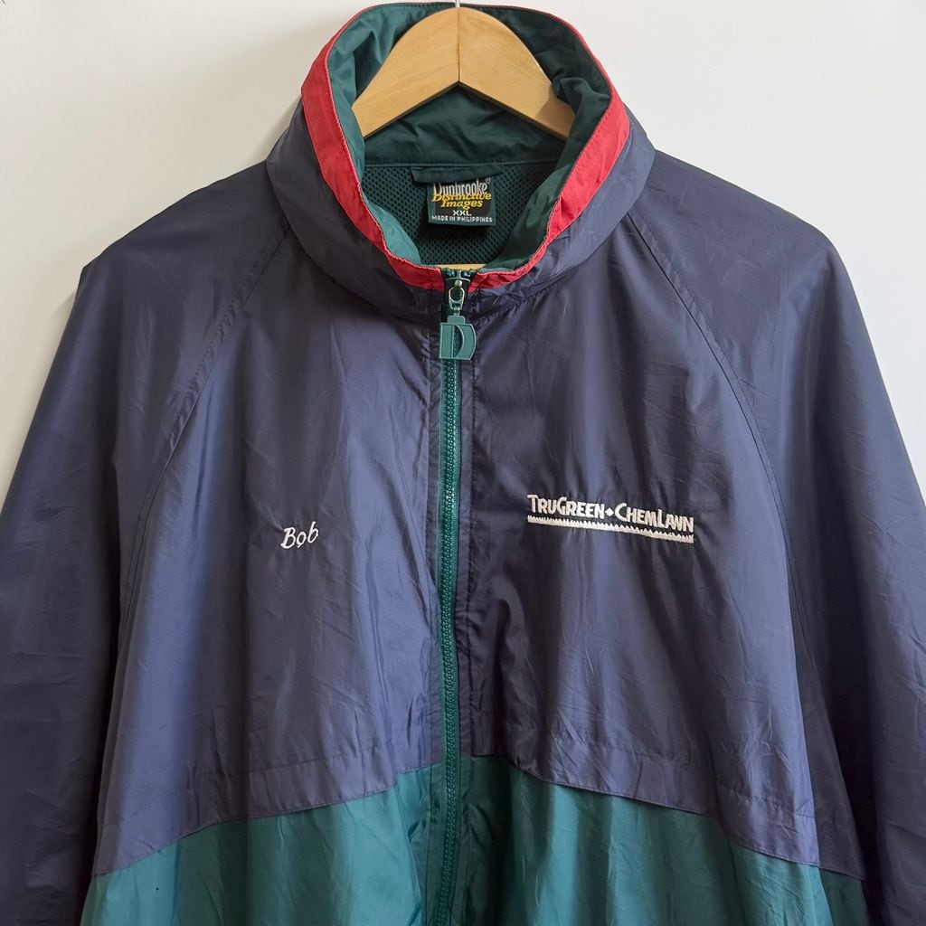Dunbrooke ダンブルック ナイロンジャケット フード付き 裏地メッシュ ウィンドブレーカー ネイビー×グリーン×レッド XXLサイズ No.M233