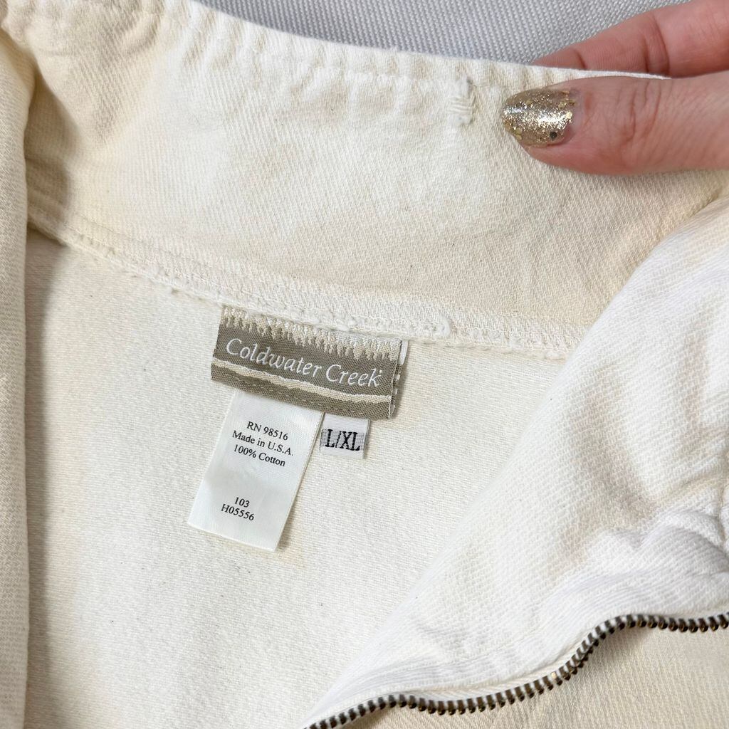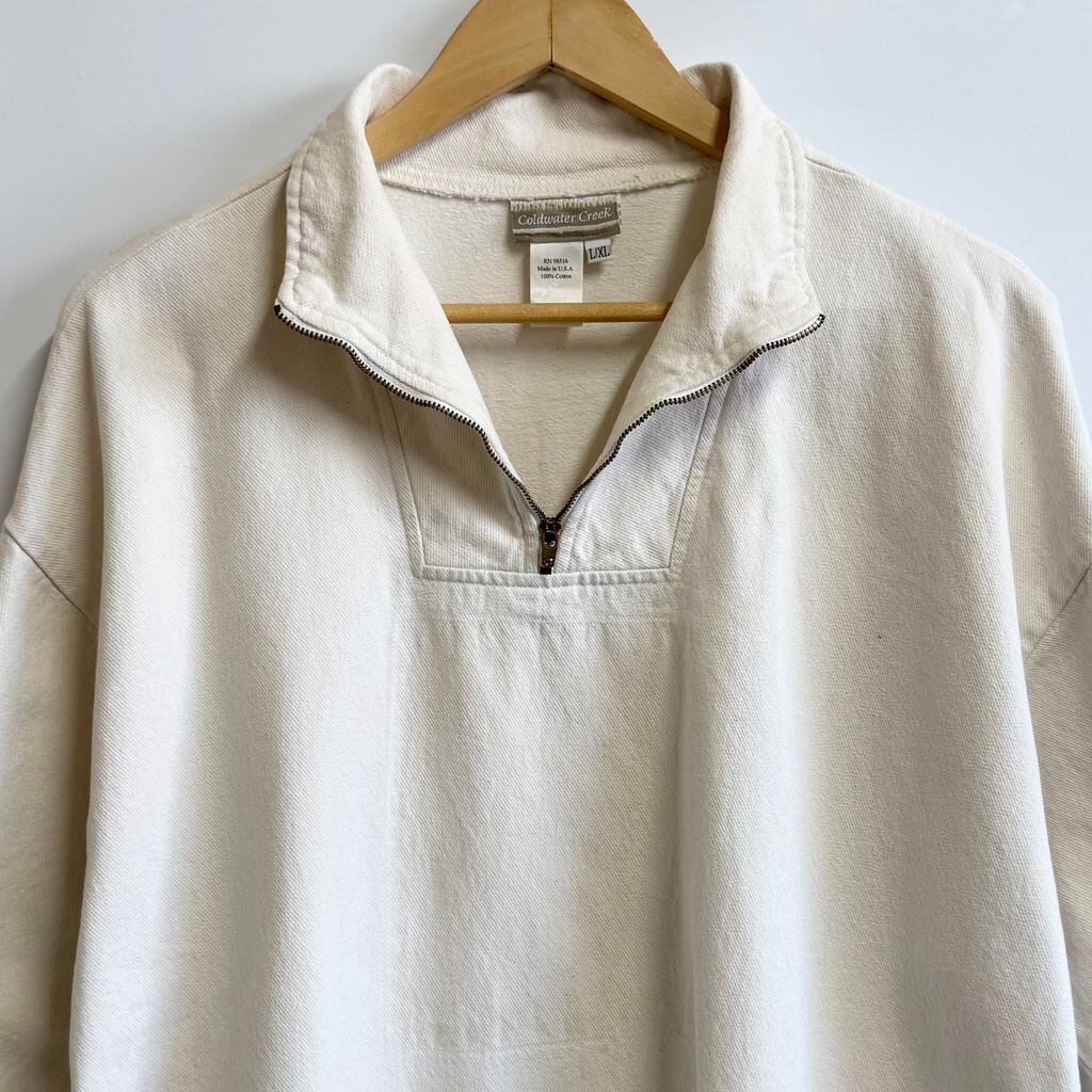 USA製 Coldwater Creek コールドウォータークリーク ハーフジッププルオーバー アイボリー キナリ L/XLサイズ No.M239