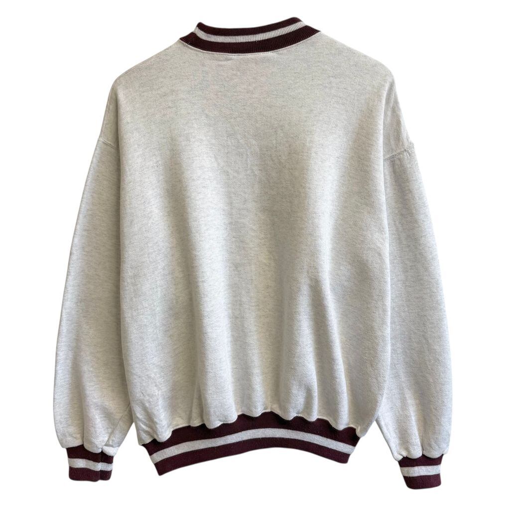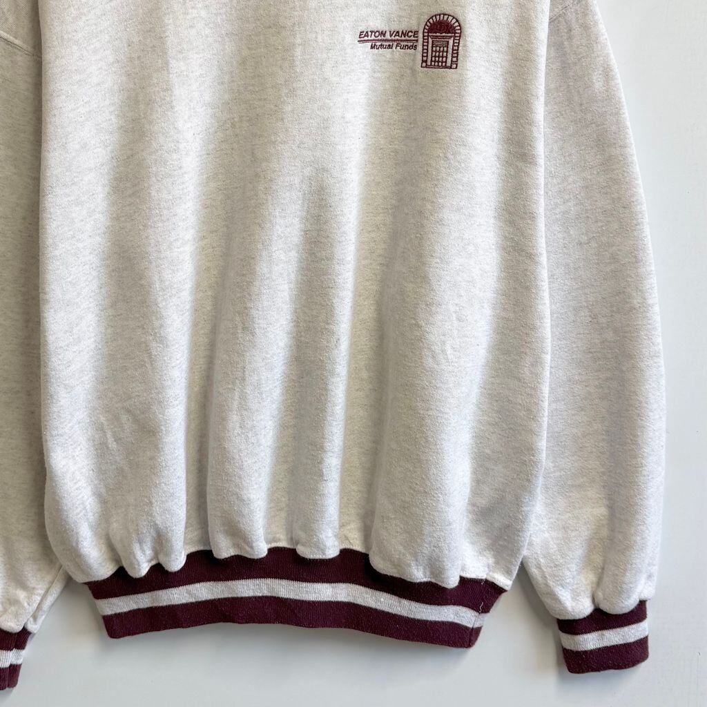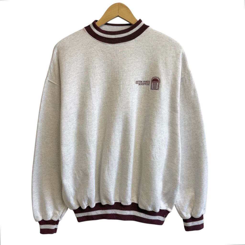 USA製 ULTRA CLUB 刺繍 EATON VANCE リブライン トレーナー スウェット 裏起毛 ライトグレー×バーガンディ Lサイズ No.M240