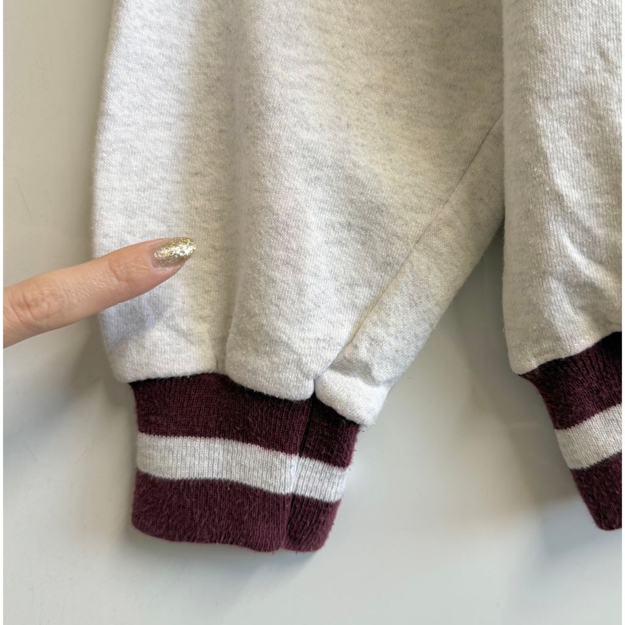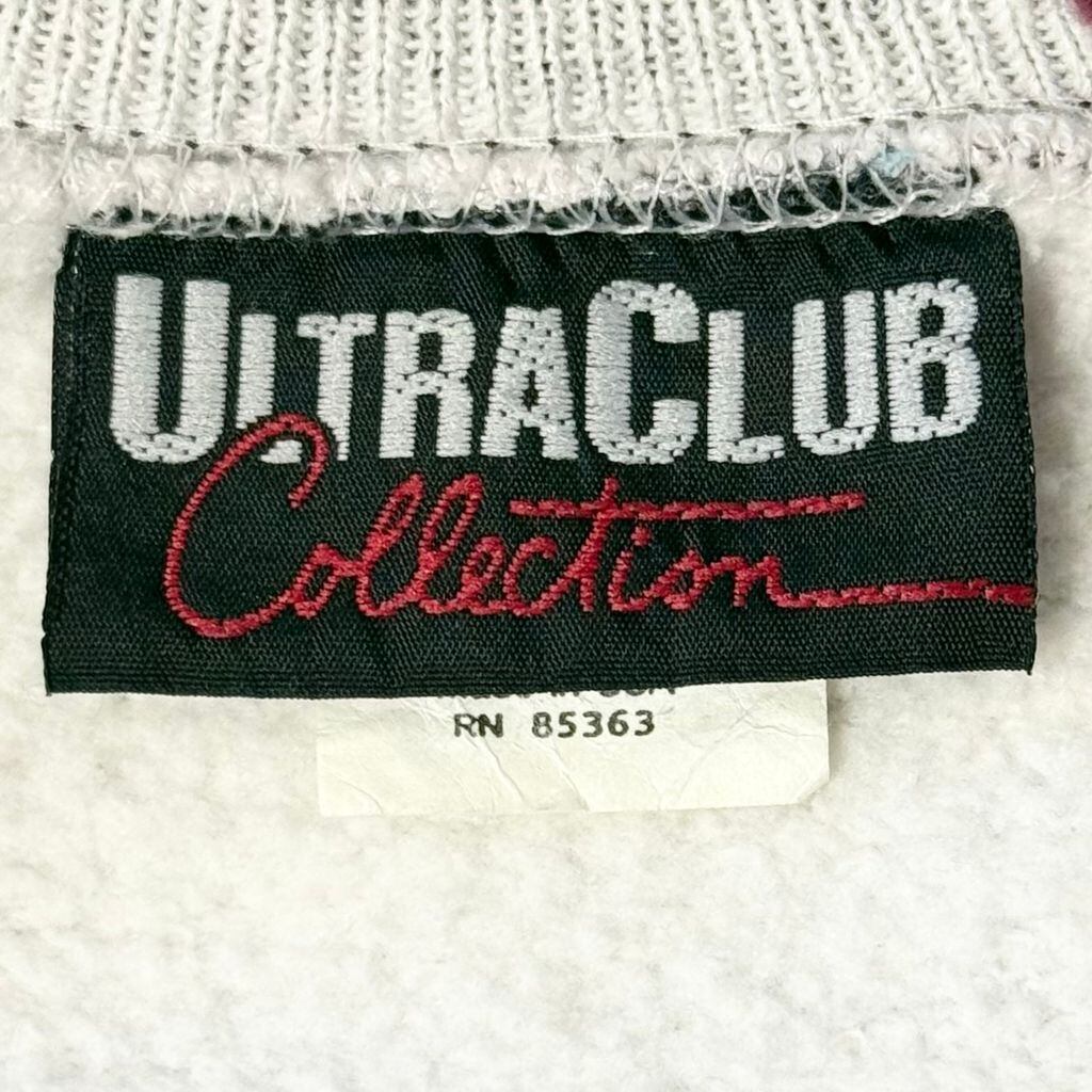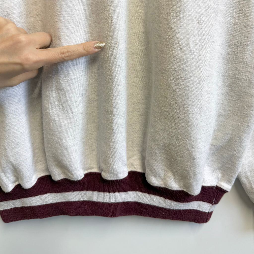 USA製 ULTRA CLUB 刺繍 EATON VANCE リブライン トレーナー スウェット 裏起毛 ライトグレー×バーガンディ Lサイズ No.M240