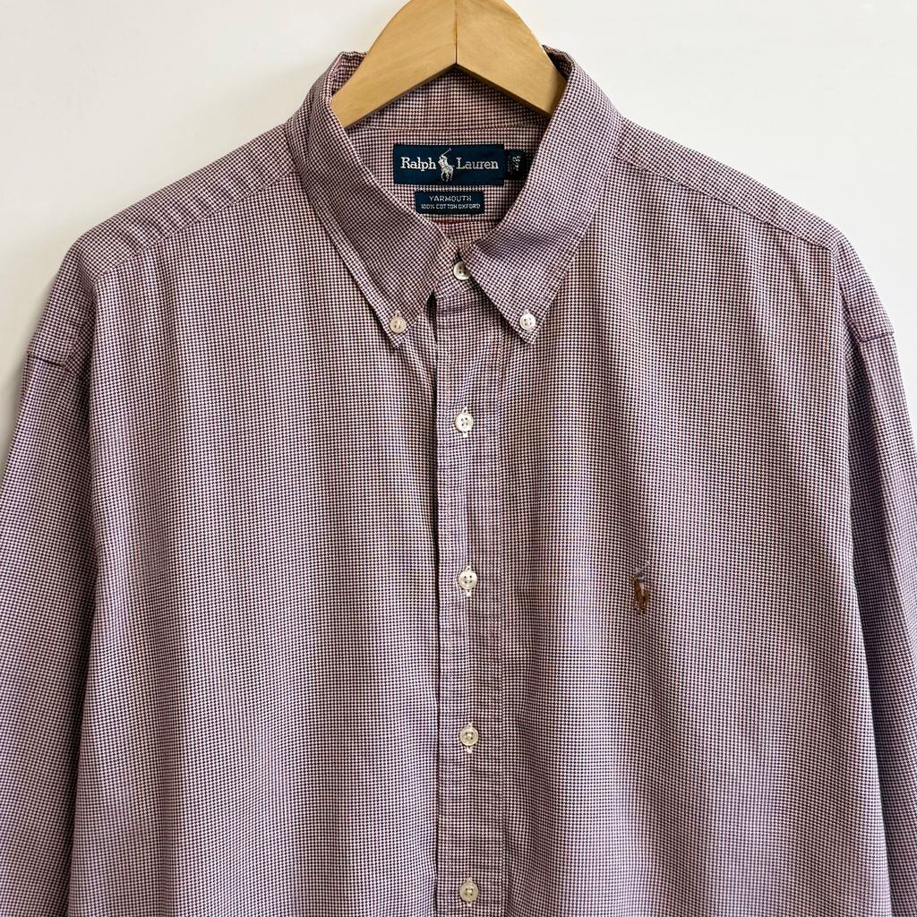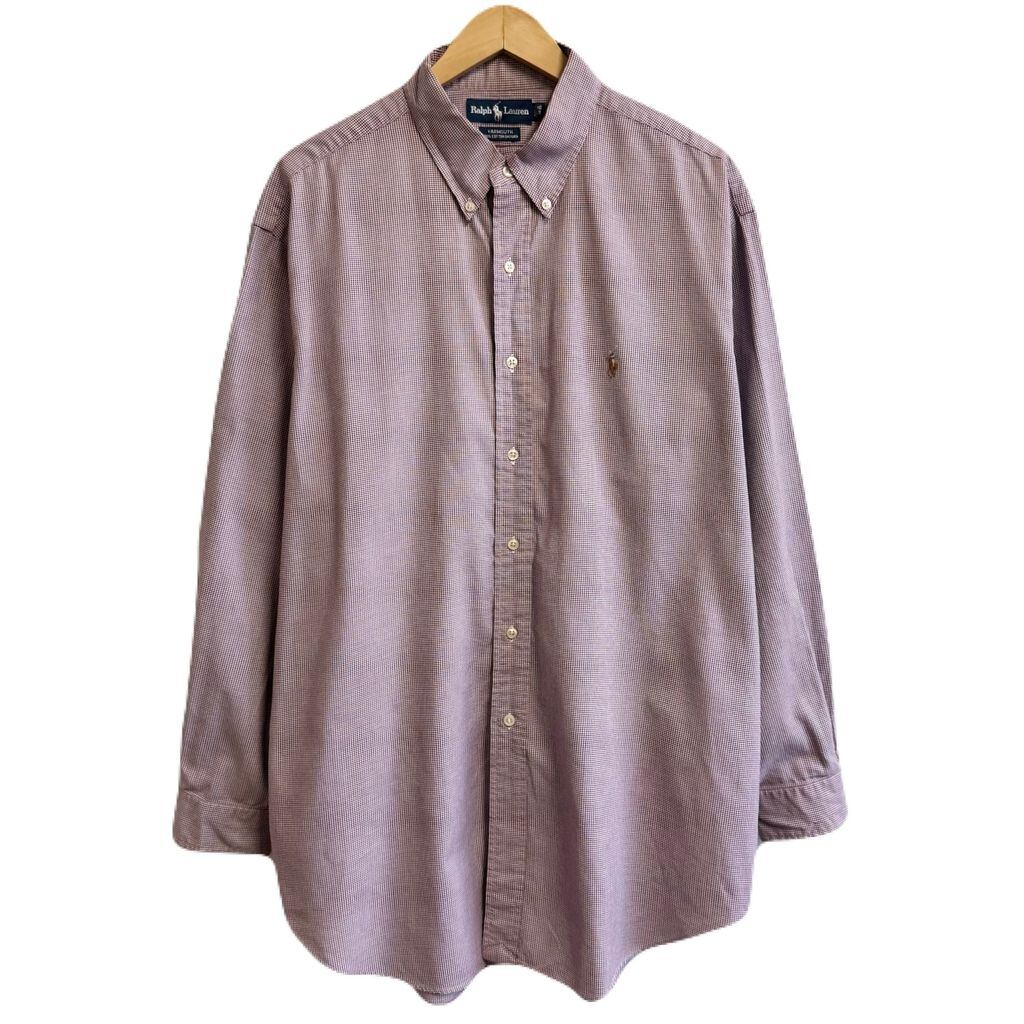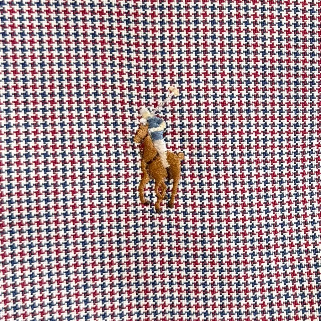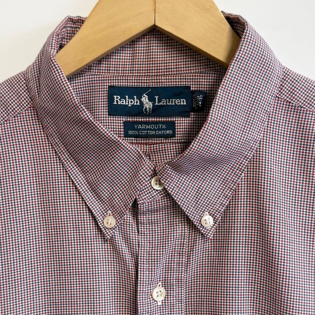 Ralph Lauren ラルフローレン YARMOUTH 千鳥格子柄 ボタンダウンシャツ コットンシャツ 長袖シャツ ワンポイントロゴ 刺繍 赤×青×白 No.M243