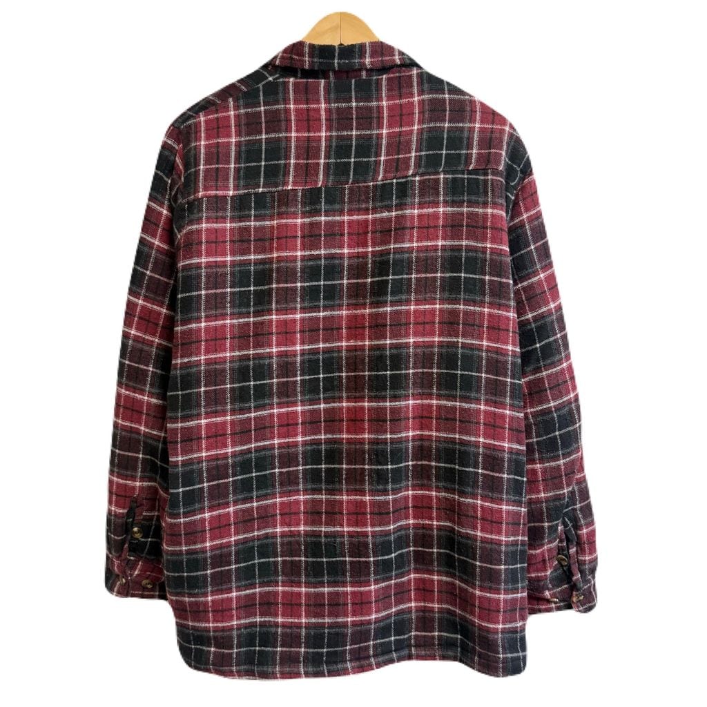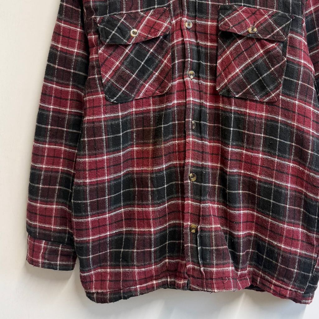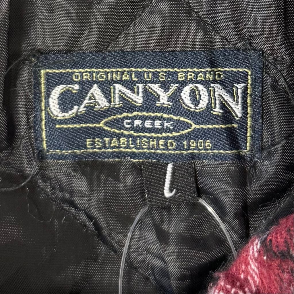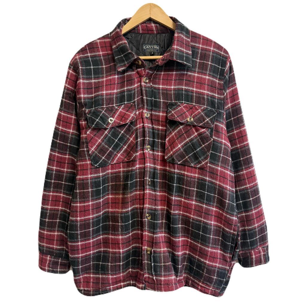 CANYON シャツジャケット キルティング裏地 コットンシャツ チェック柄 ポケット付き 厚手長袖シャツ ワインレッド×黒×多色 Lサイズ No.M245