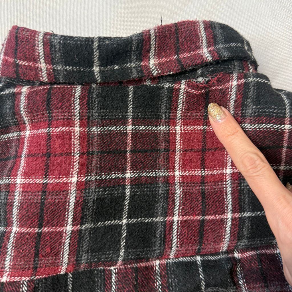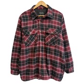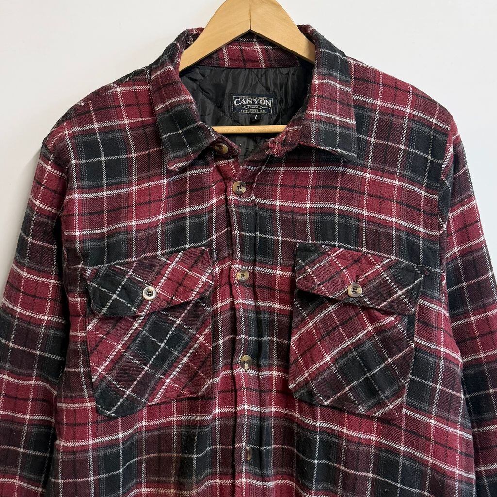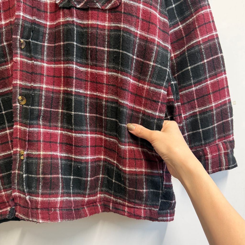 CANYON シャツジャケット キルティング裏地 コットンシャツ チェック柄 ポケット付き 厚手長袖シャツ ワインレッド×黒×多色 Lサイズ No.M245