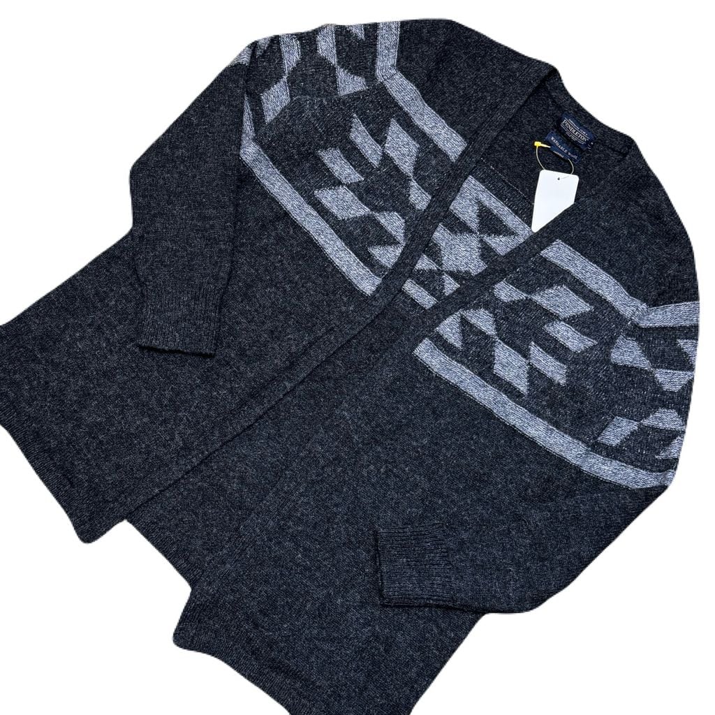 PENDLETON ペンドルトン ネイティブ柄 ウール カーディガン ブラック×グレー Sサイズ No.EA134