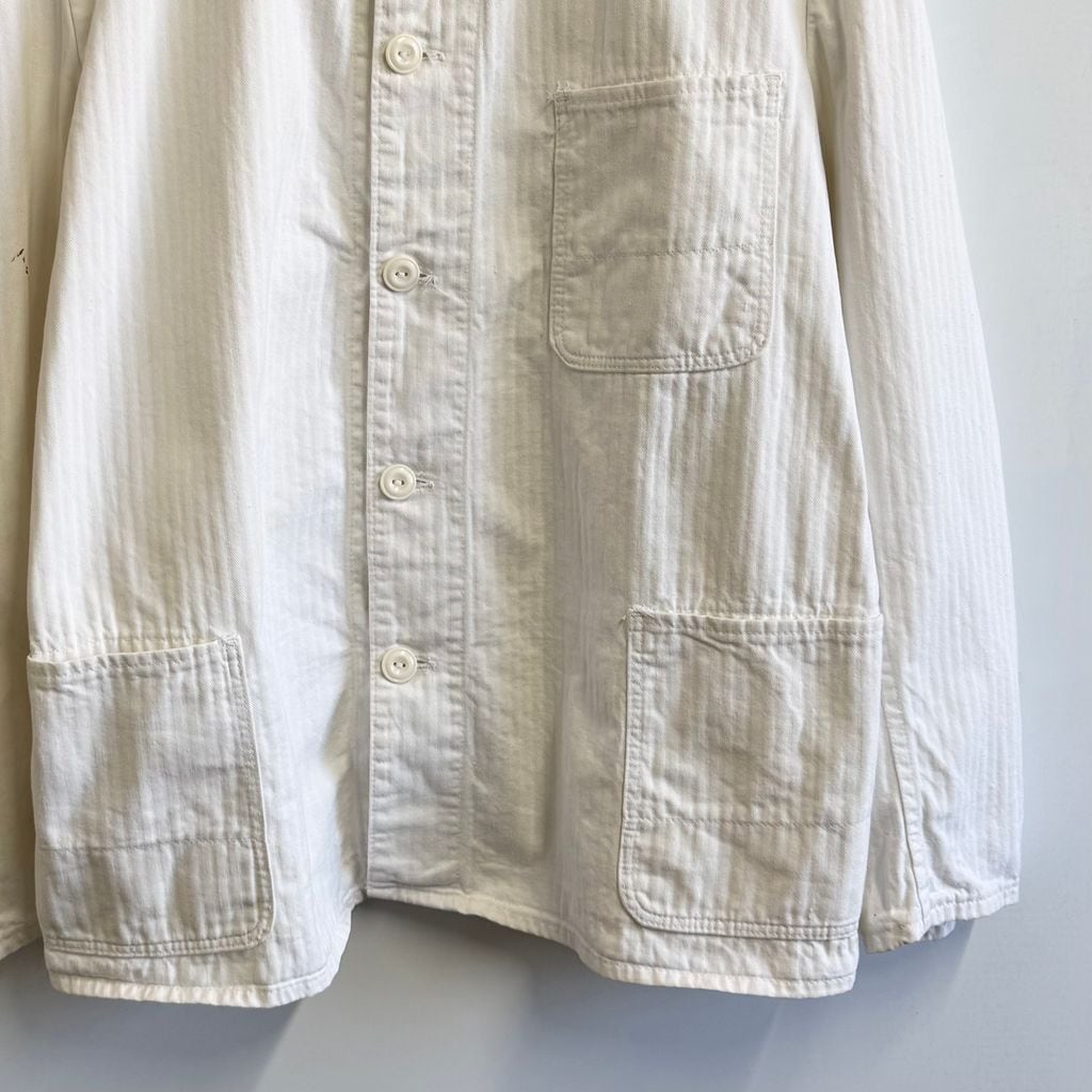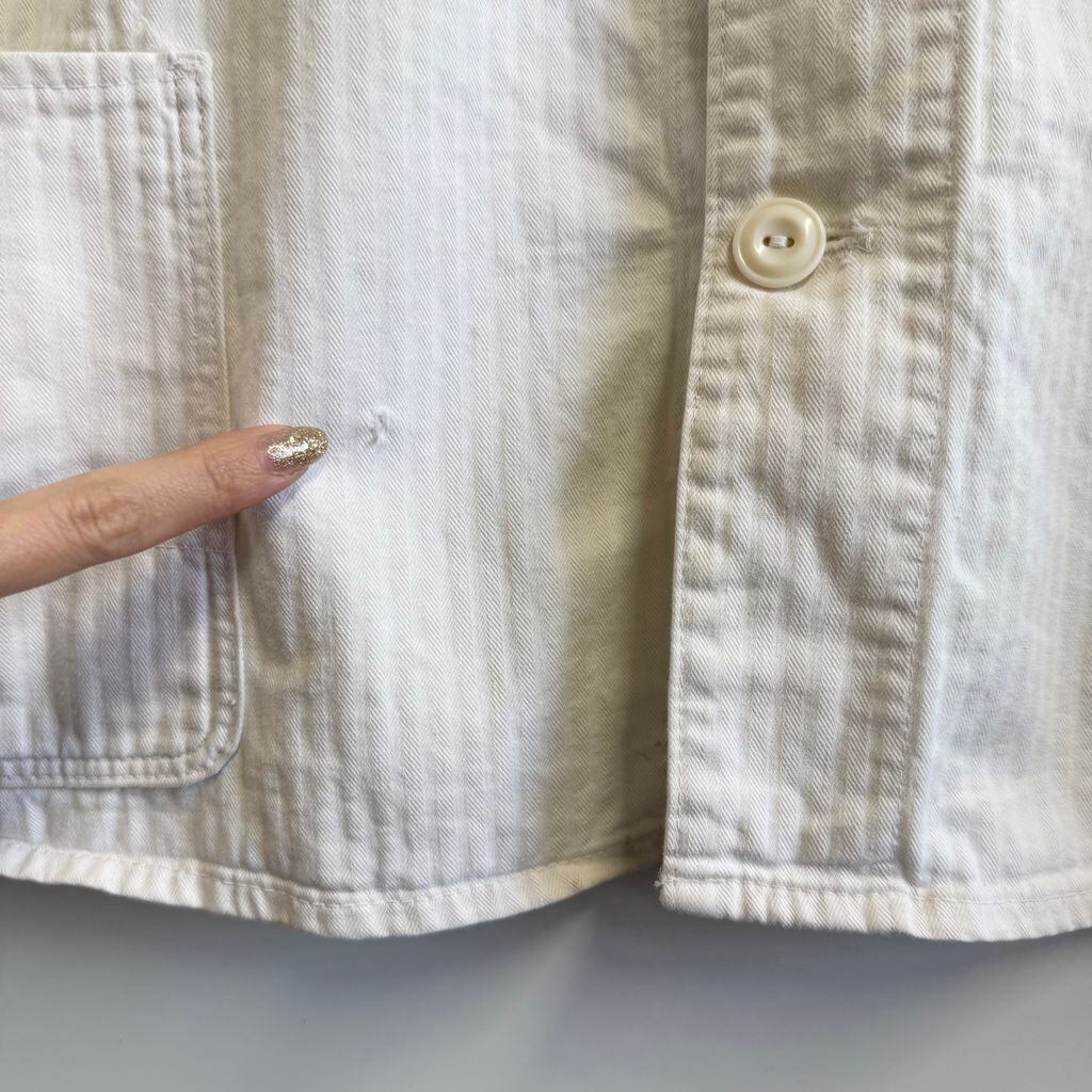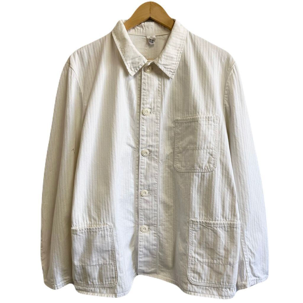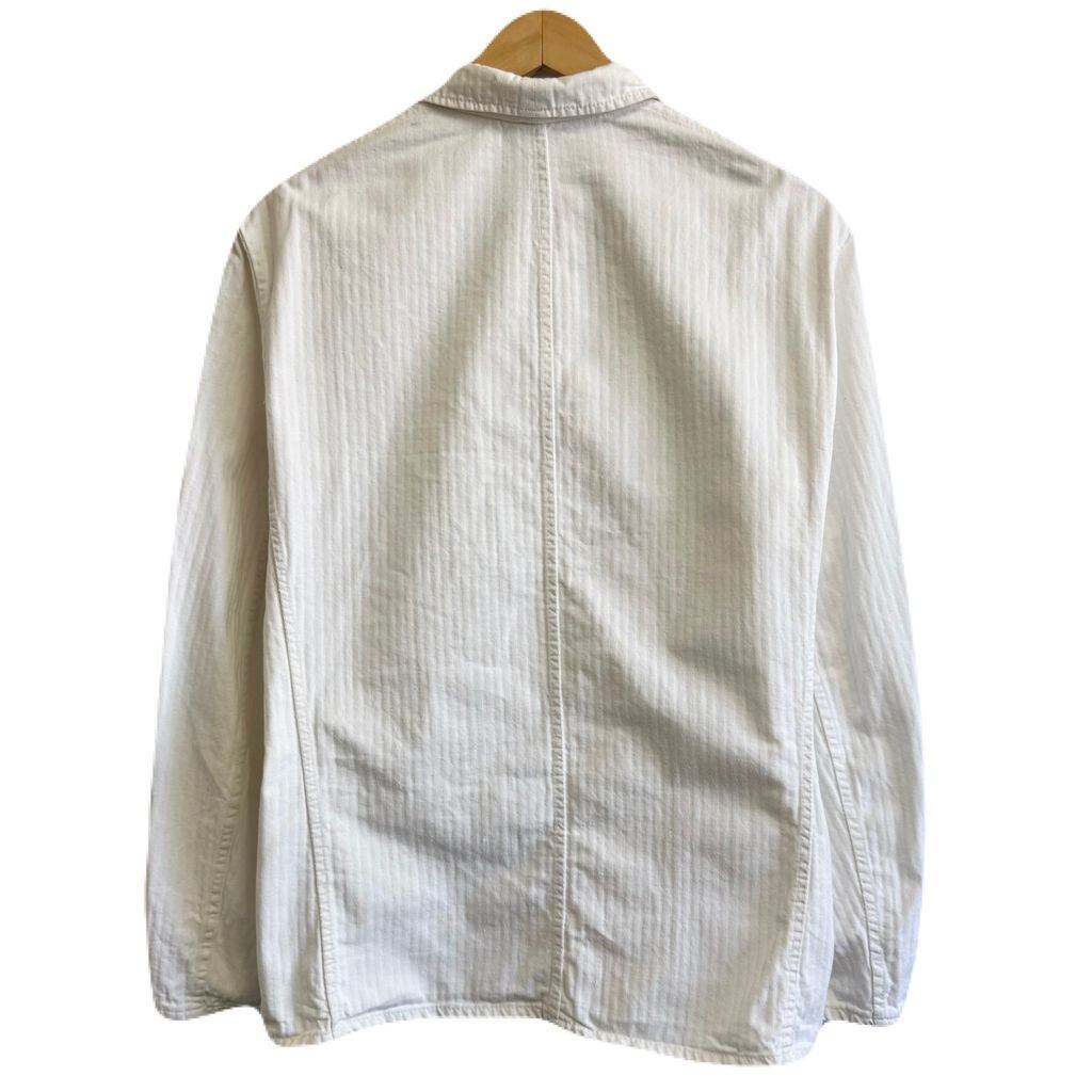 フレンチワークジャケット ストライプ ヘリンボーン フロントボタン 白 ホワイト サイズ52 No.M253