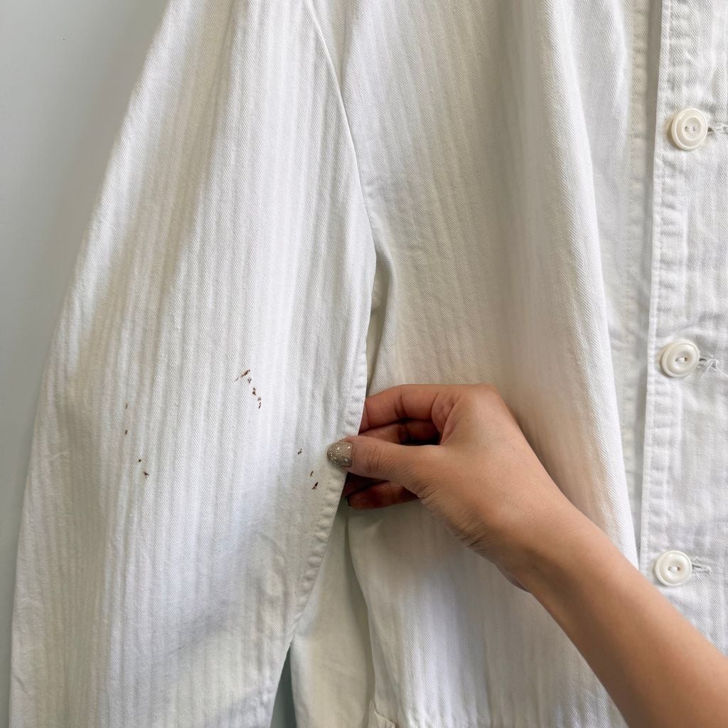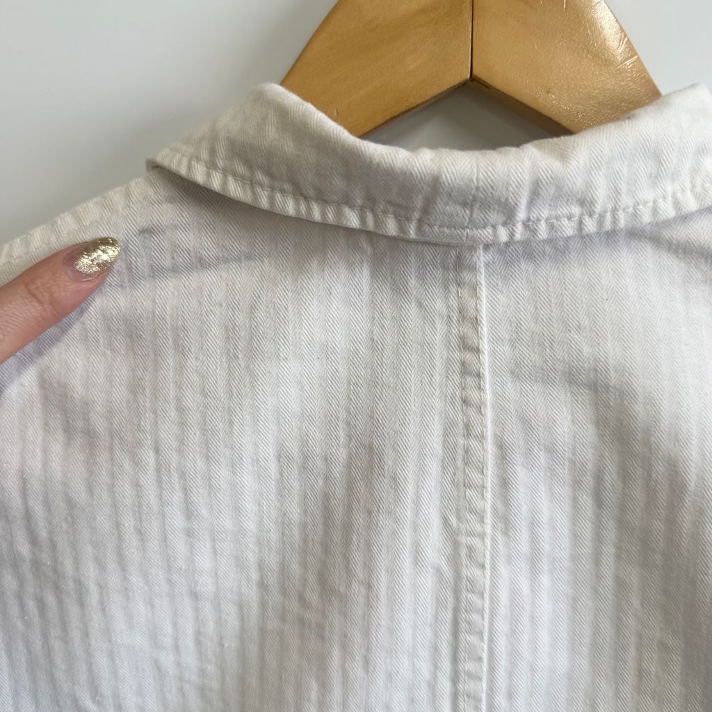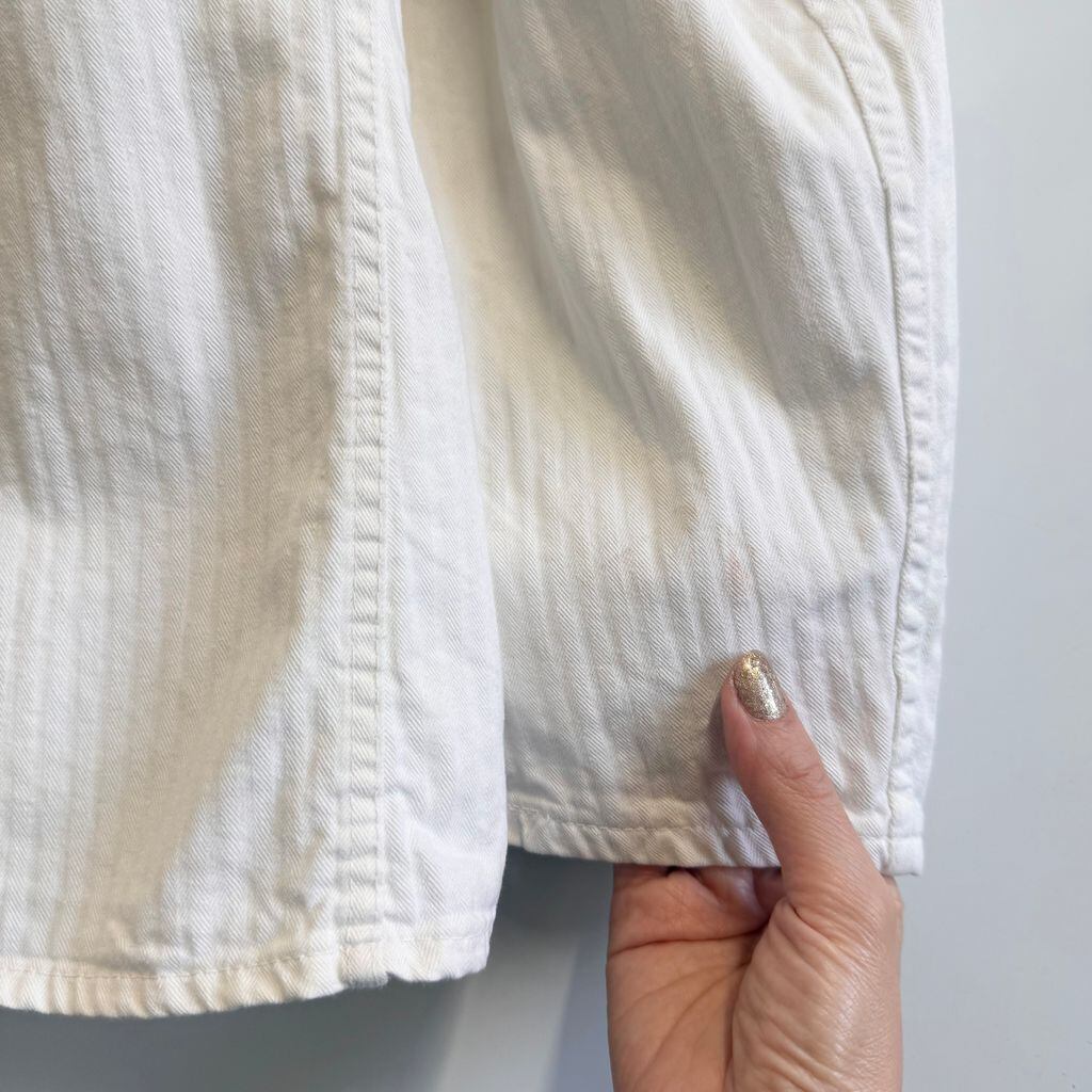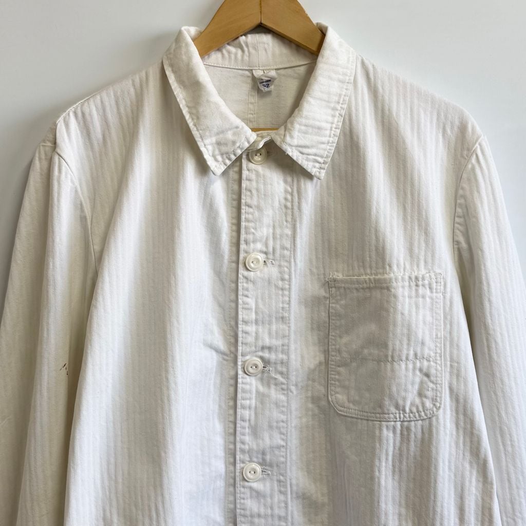 フレンチワークジャケット ストライプ ヘリンボーン フロントボタン 白 ホワイト サイズ52 No.M253
