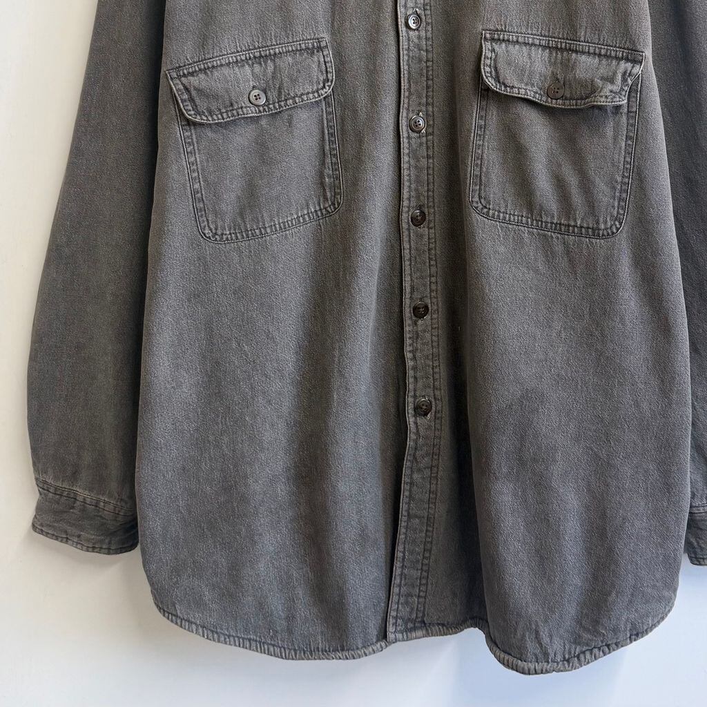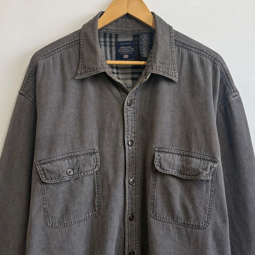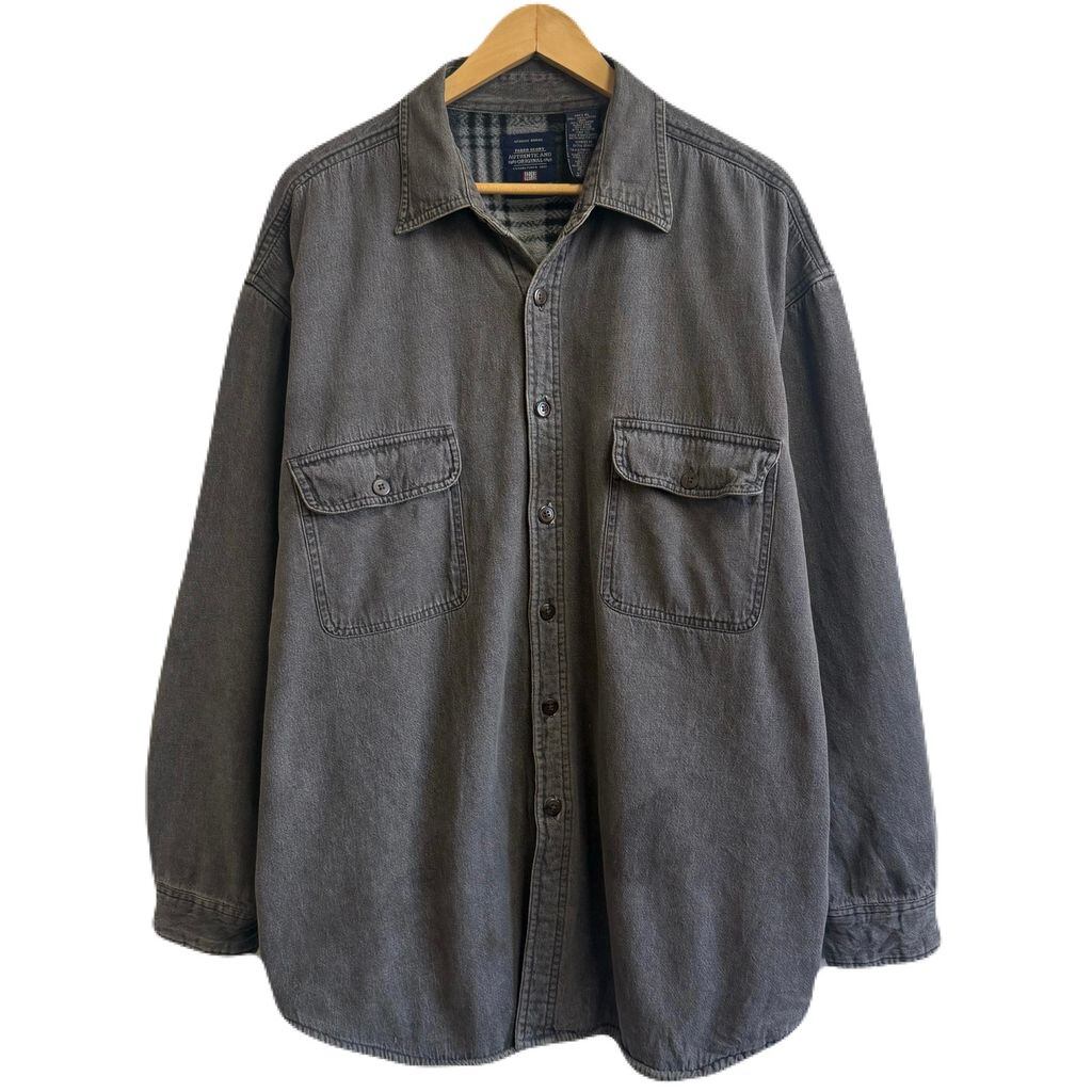 FADED GLORY シャツジャケット 裏起毛 裏地チェック柄 コットンシャツ 無地 ポケット付き 厚手長袖シャツ チャコールグレー XLサイズ No.M255
