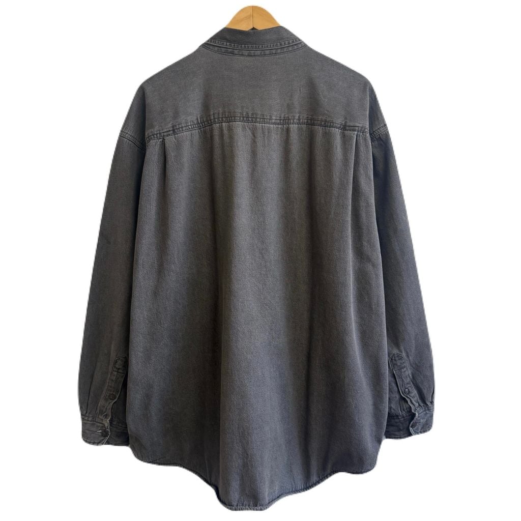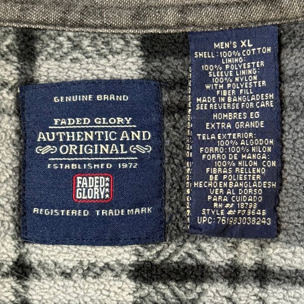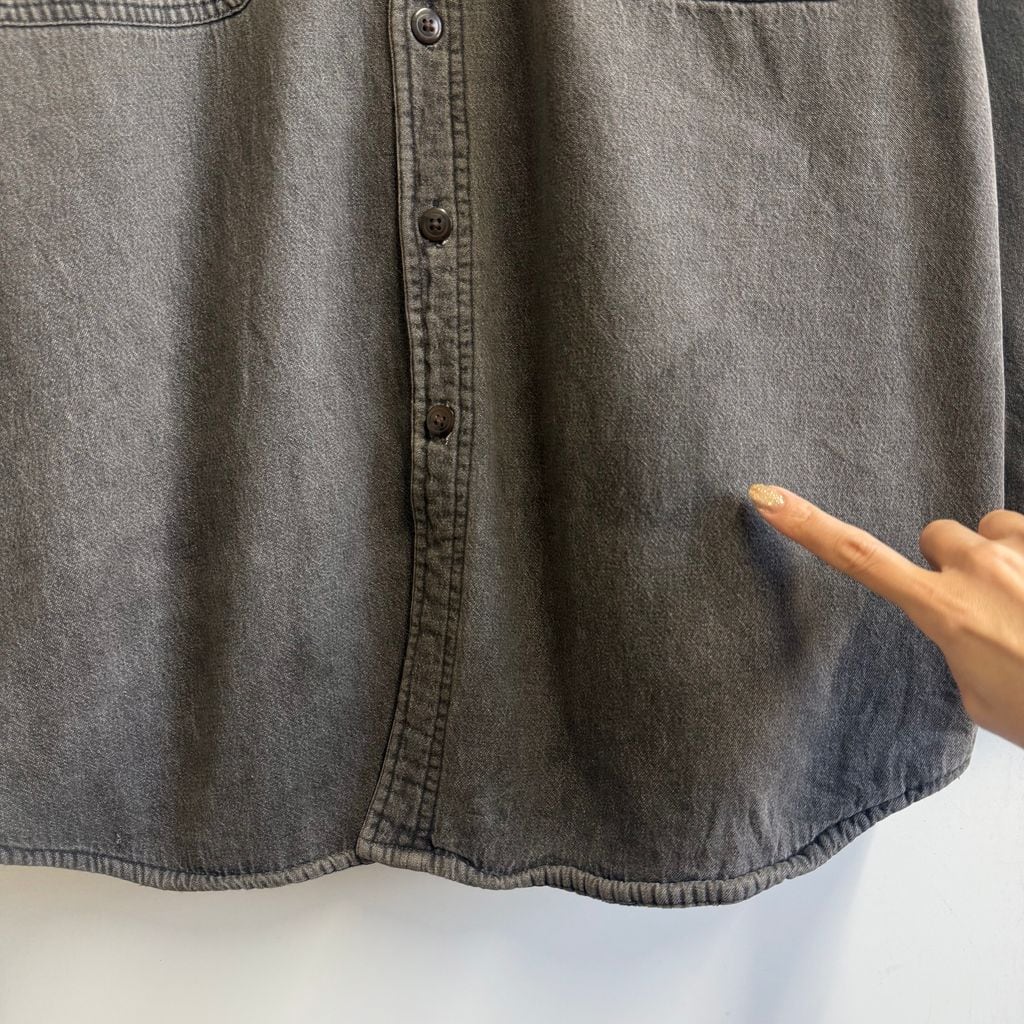 FADED GLORY シャツジャケット 裏起毛 裏地チェック柄 コットンシャツ 無地 ポケット付き 厚手長袖シャツ チャコールグレー XLサイズ No.M255